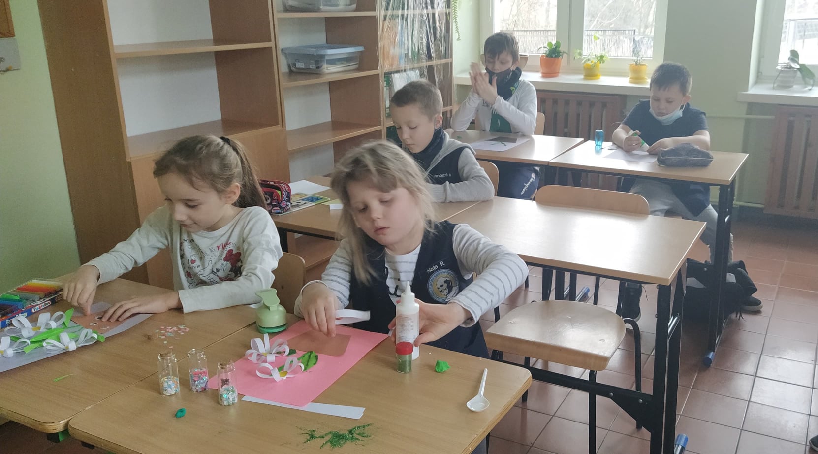 Dodatkowo uczniowie uczęszczający na świetlicę wykonali piękne prace plastyczne, którymi udekorowano szkolny korytarz.