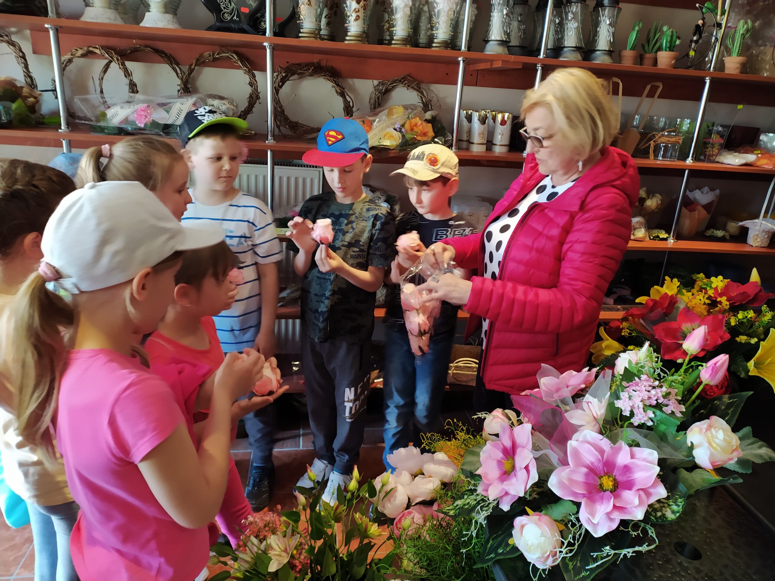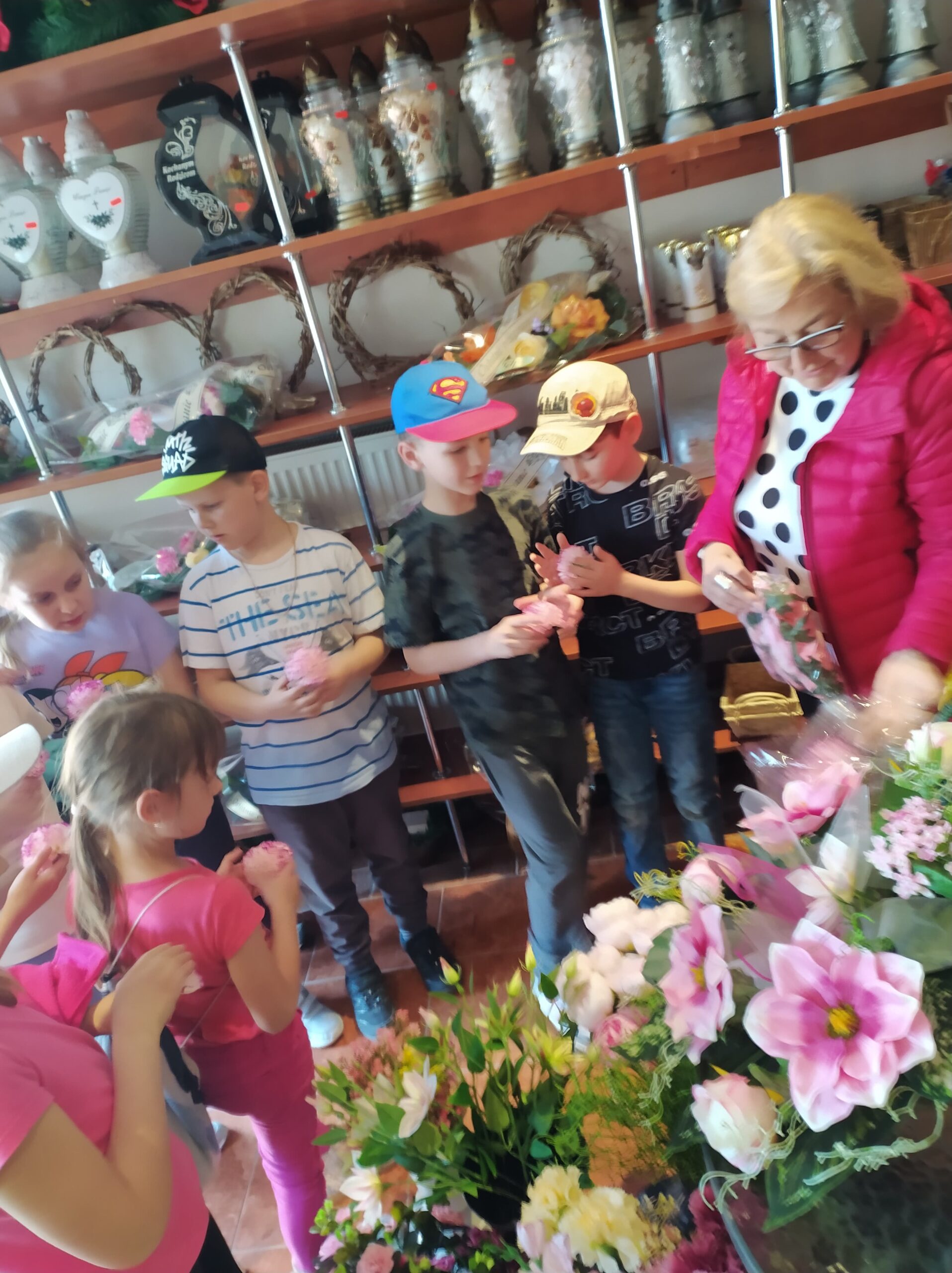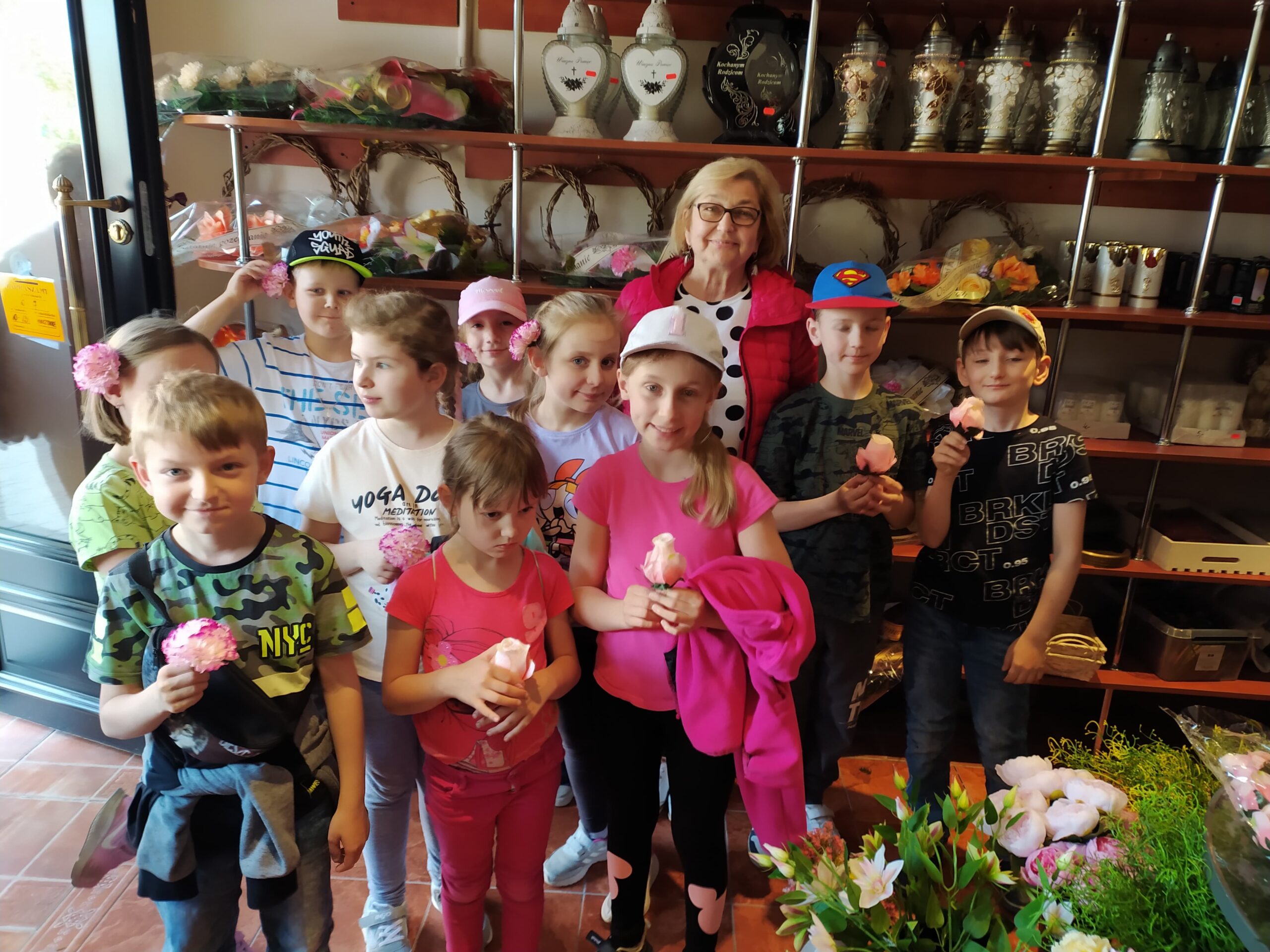 W ramach lekcji związanych z bukieciarstwem, florystyką i rozpoznawaniem zmysłów klasa II odwiedziła kwiaciarnię w Tarnobrzegu. Właścicielka kwiaciarni przywitała dzieci i opowiedziała o pracy ogrodnika oraz florystki, a także pokazała, jak się układa bukiet. Dzieci miały możliwość podziwiania pięknych dekoracji z kwiatów żywych oraz sztucznych.