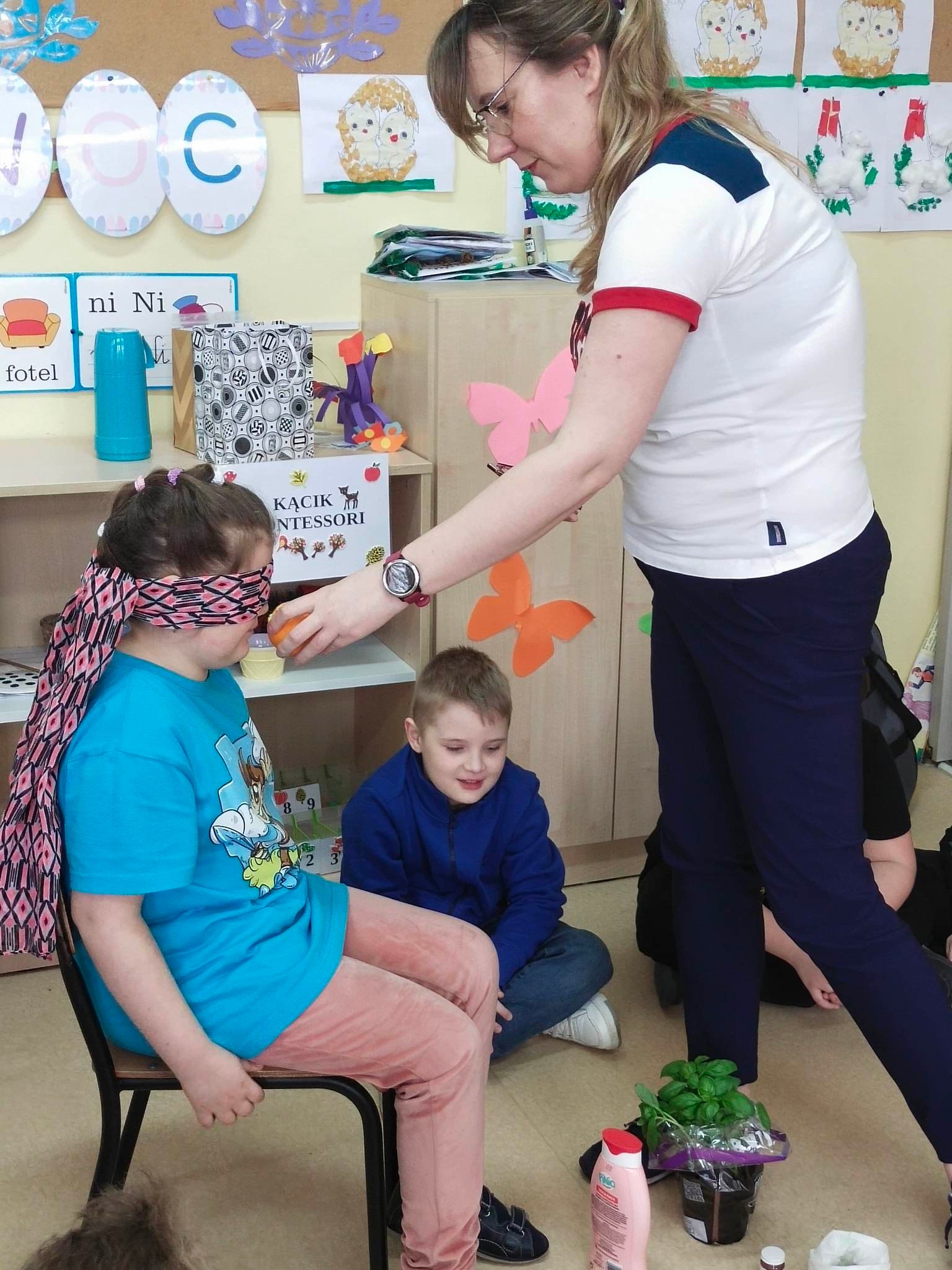 Podczas zajęć „ Nasze zmysły ” w klasie I dzieci dowiedziały się jak odkrywać otaczający świat przez świadome wykorzystywanie zmysłów: wzroku, słuchu, dotyku, smaku, a przede wszystkim węchu.