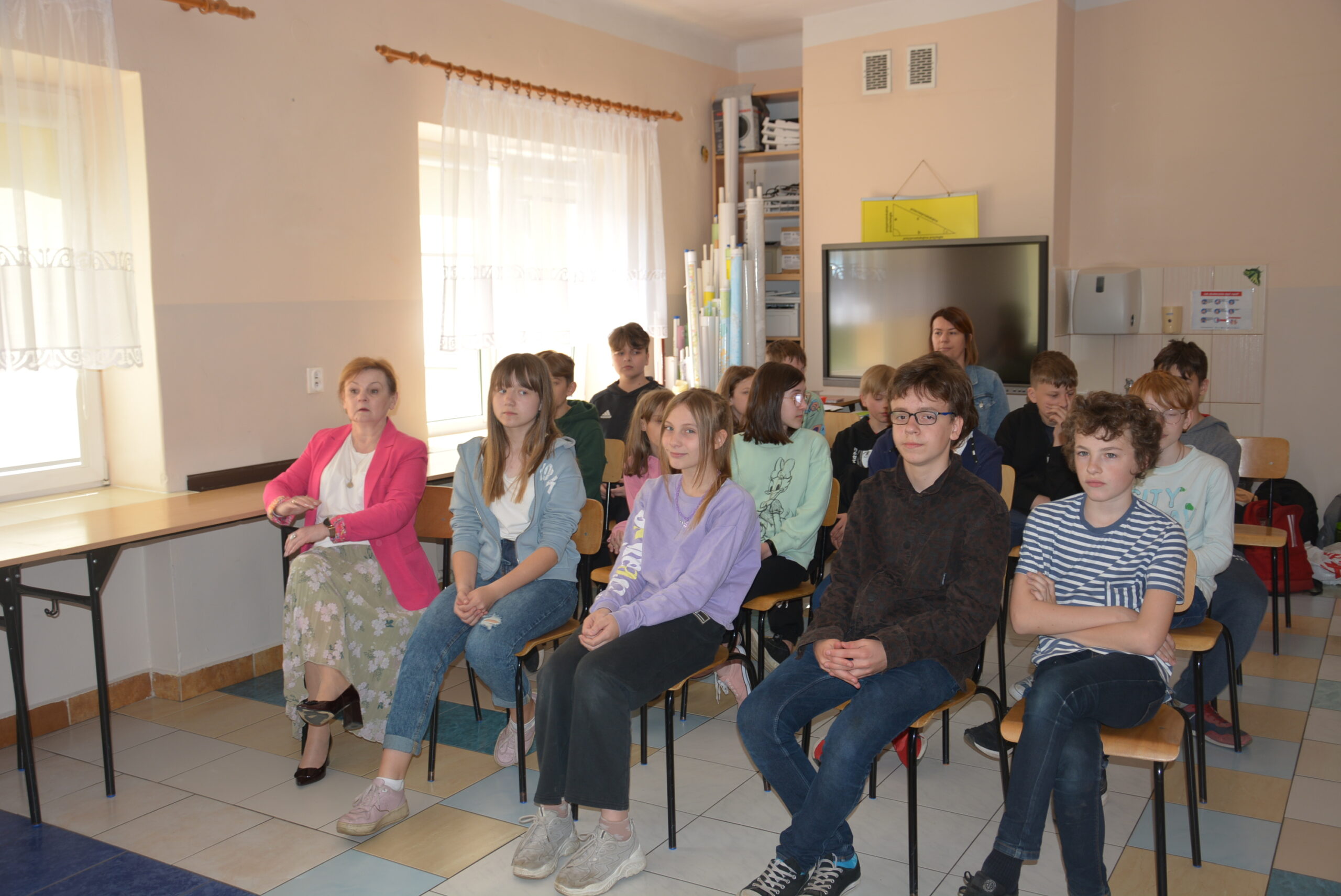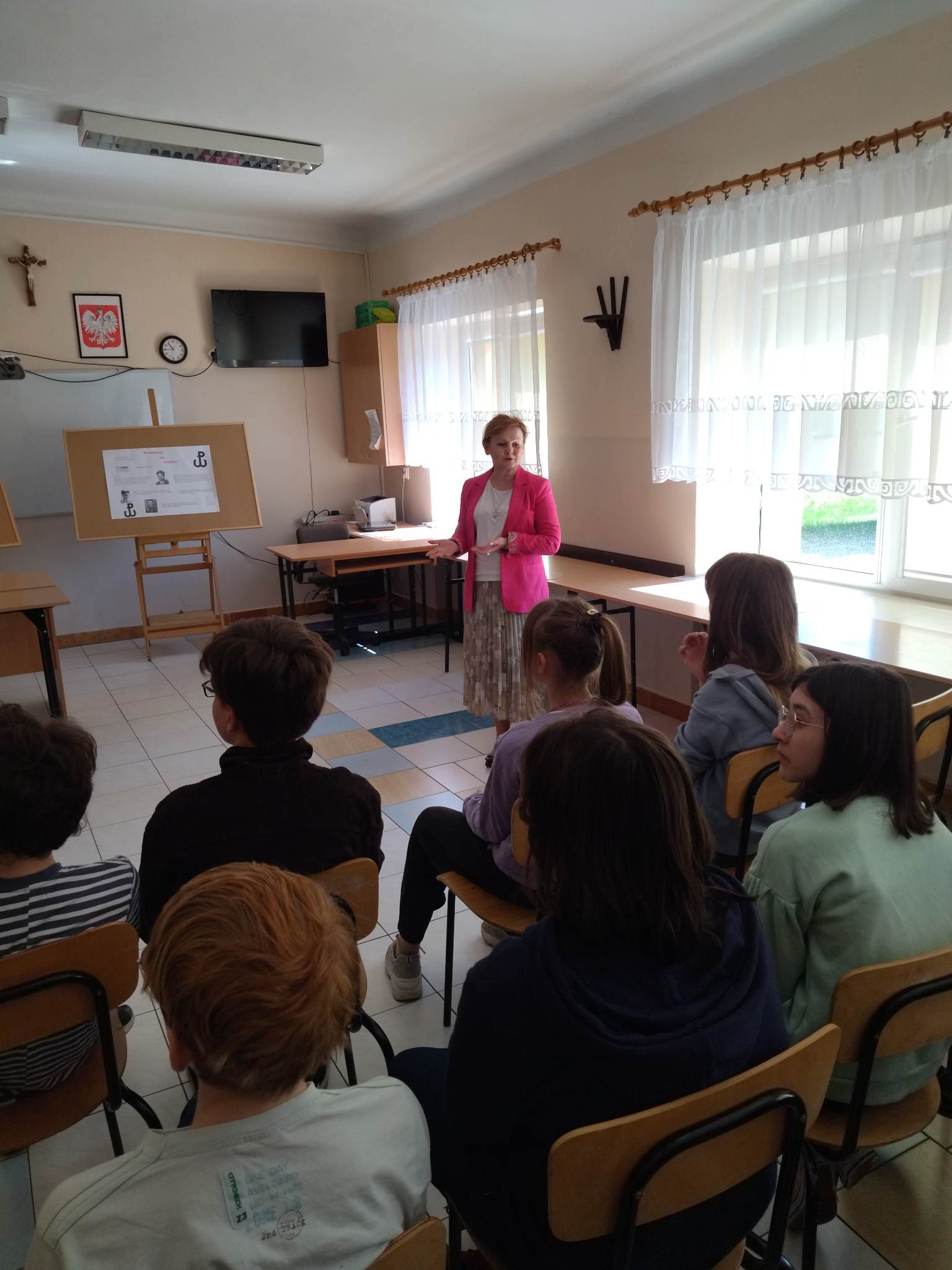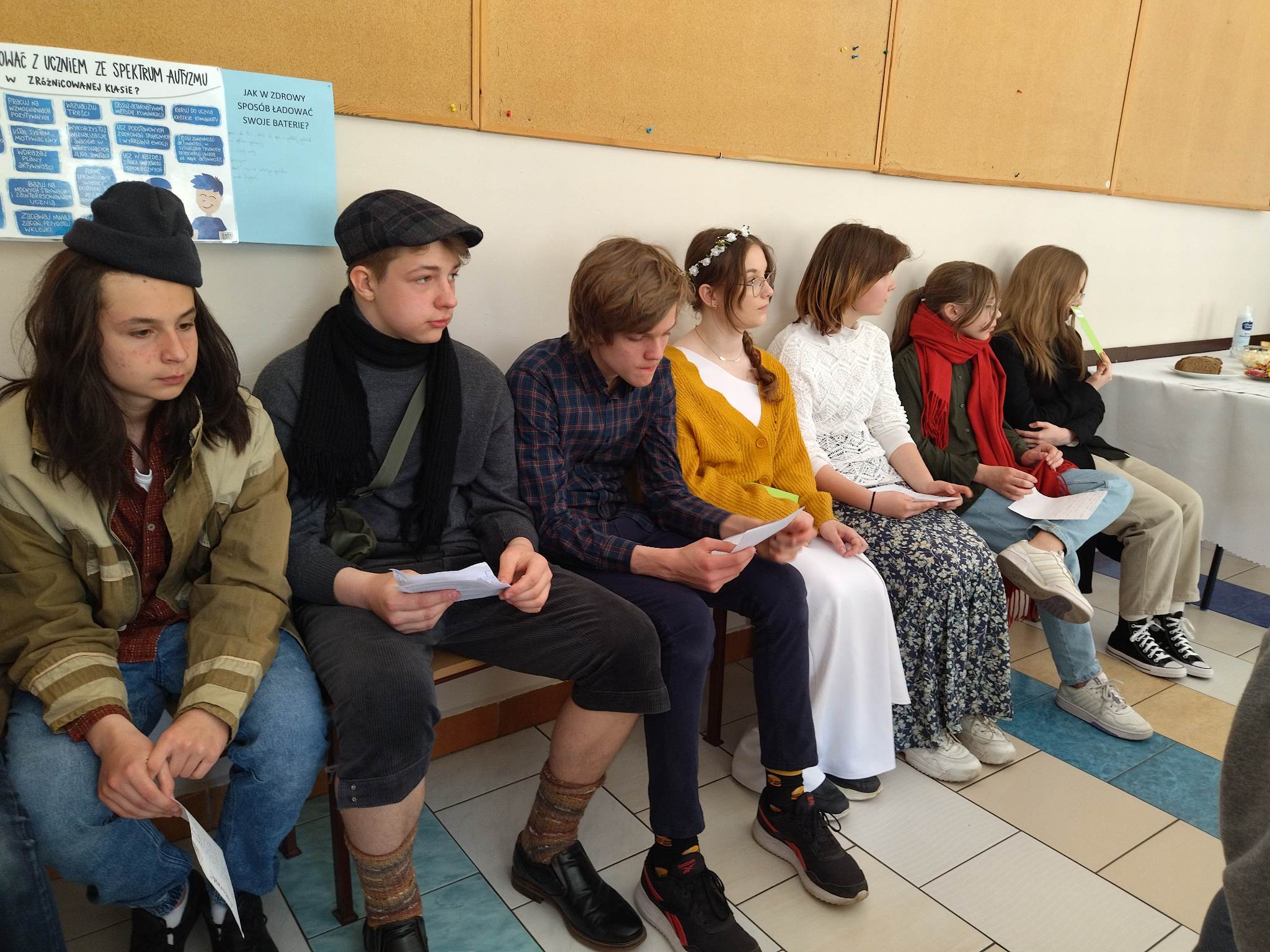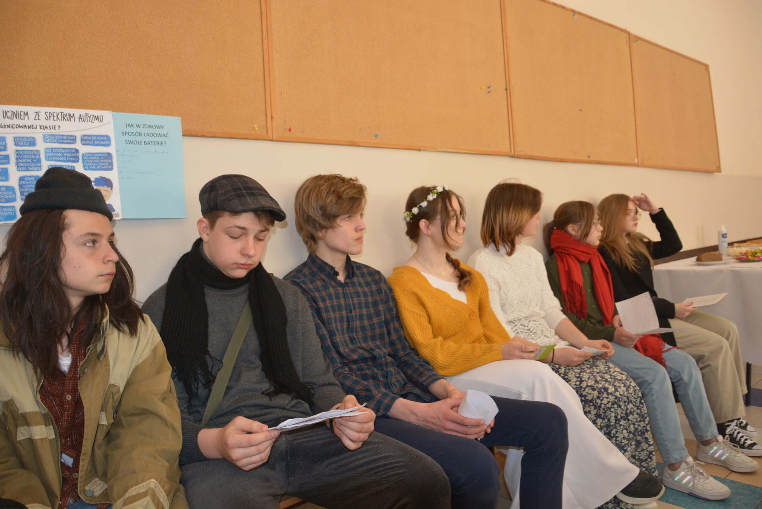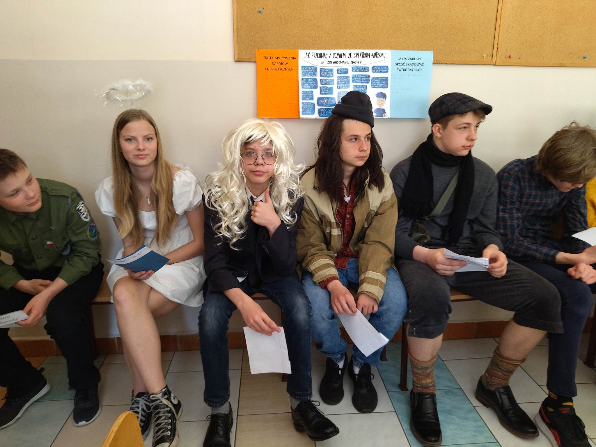 W ramach przygotowania do egzaminu ósmoklasisty uczniowie klasy ósmej zrealizowali w II semestrze projekt edukacyjny: „Lektury obowiązkowe”. W każdym tygodniu jeden z uczniów przypominał najważniejsze informacje dotyczące jednej z lektur, następnie wszyscy redagowali formy wypowiedzi, rozwiązywali krzyżówki, testy i wykonywali szereg innych zadań utrwalających wiedzę i doskonalących praktyczne umiejętności. Dzisiaj, na zakończenie projektu każdy z uczniów wcielił się w jednego z bohaterów.