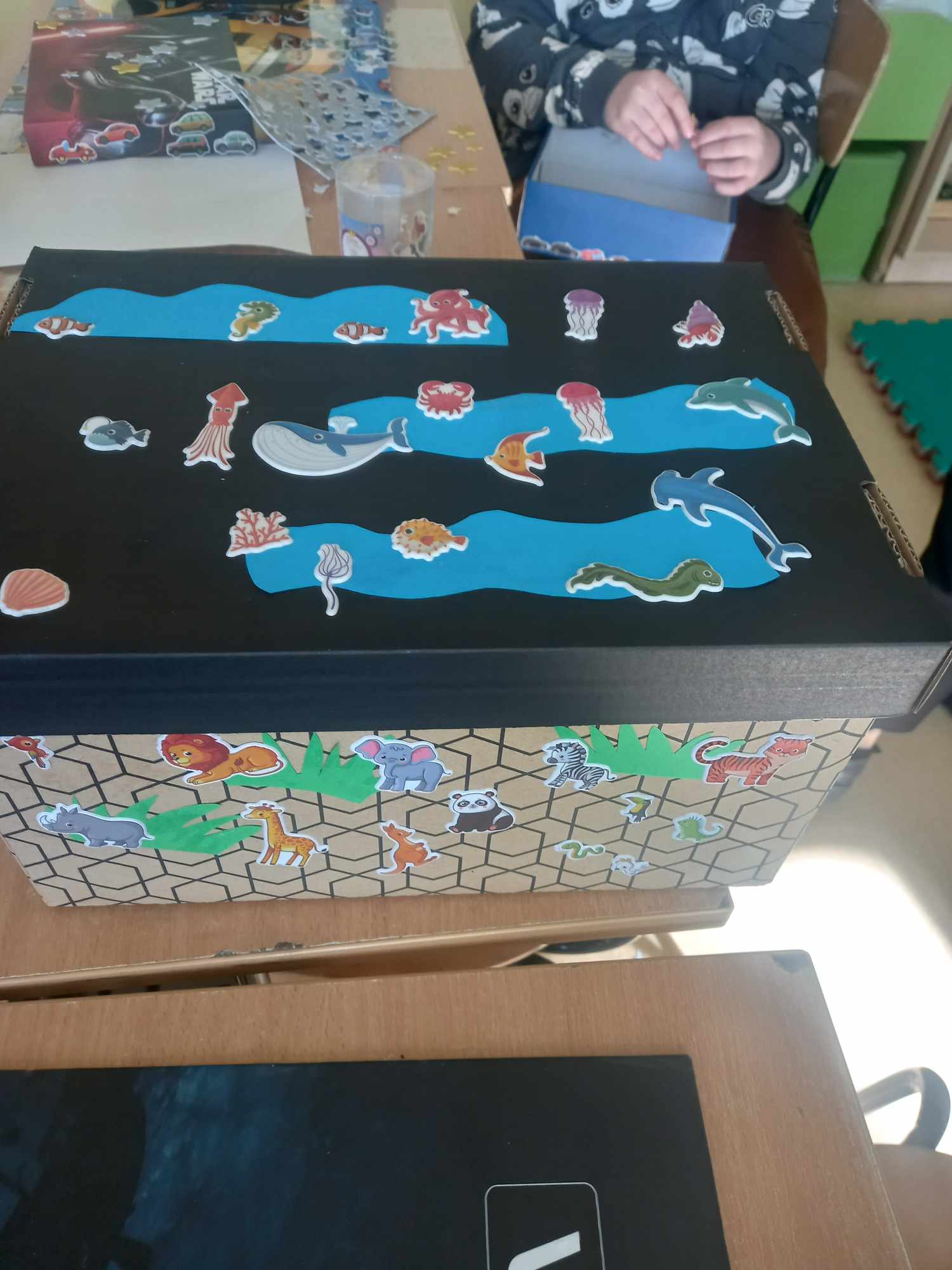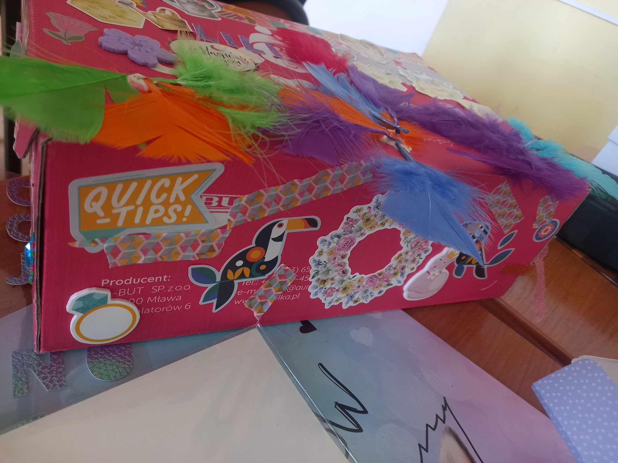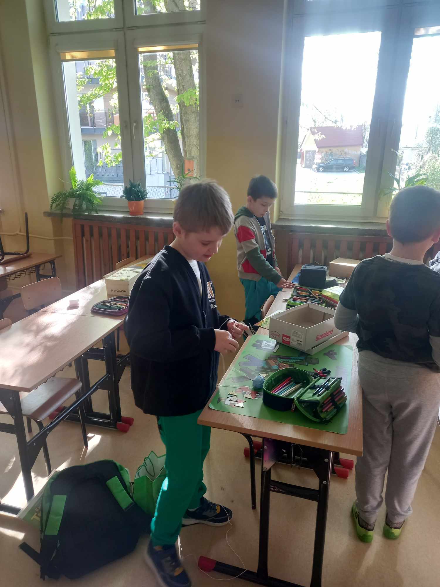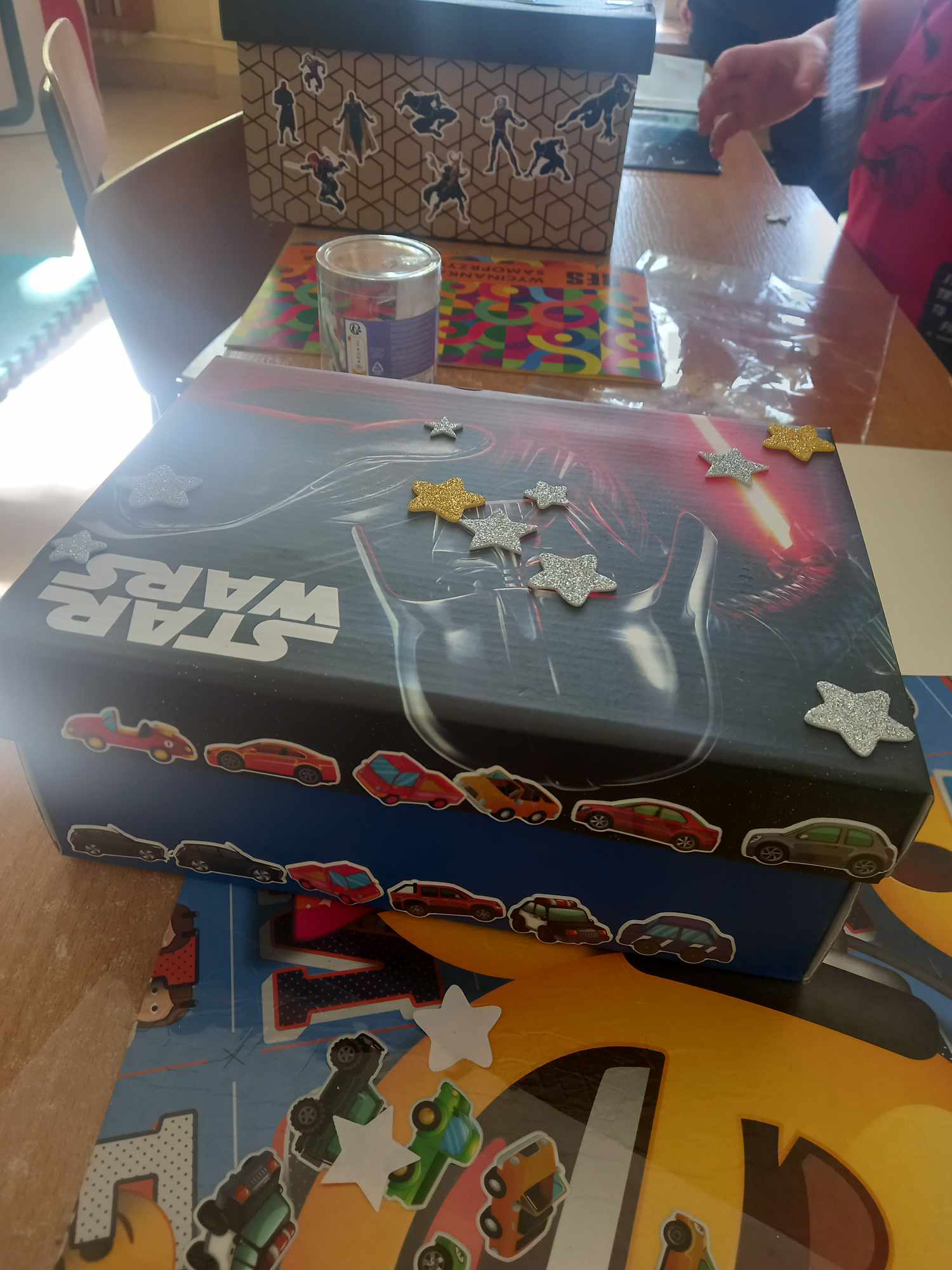 Na dzisiejszych zajęciach dzieci samodzielnie wykonywały swoją apteczkę skarbów, ozdabiały pudełka według swoich pomysłów, do których stopniowo będą wkładały rozmaite rzeczy, jakie będą im pomocne, by złagodzić stres, ból, przykrość czy zranienia emocjonalne oraz będą wzmacniały i utrwalały to, co w nich i w ich życiu jest skarbem.