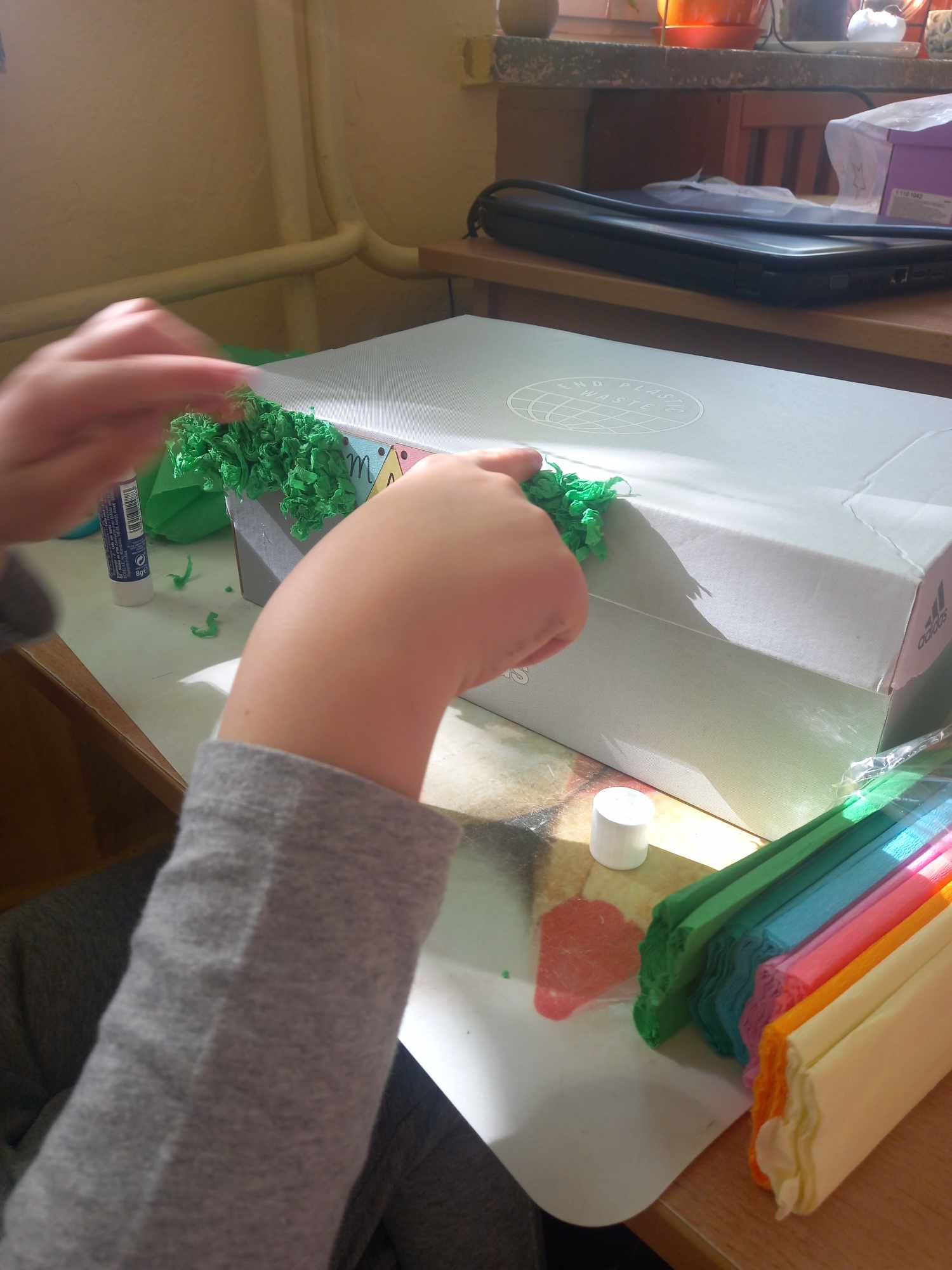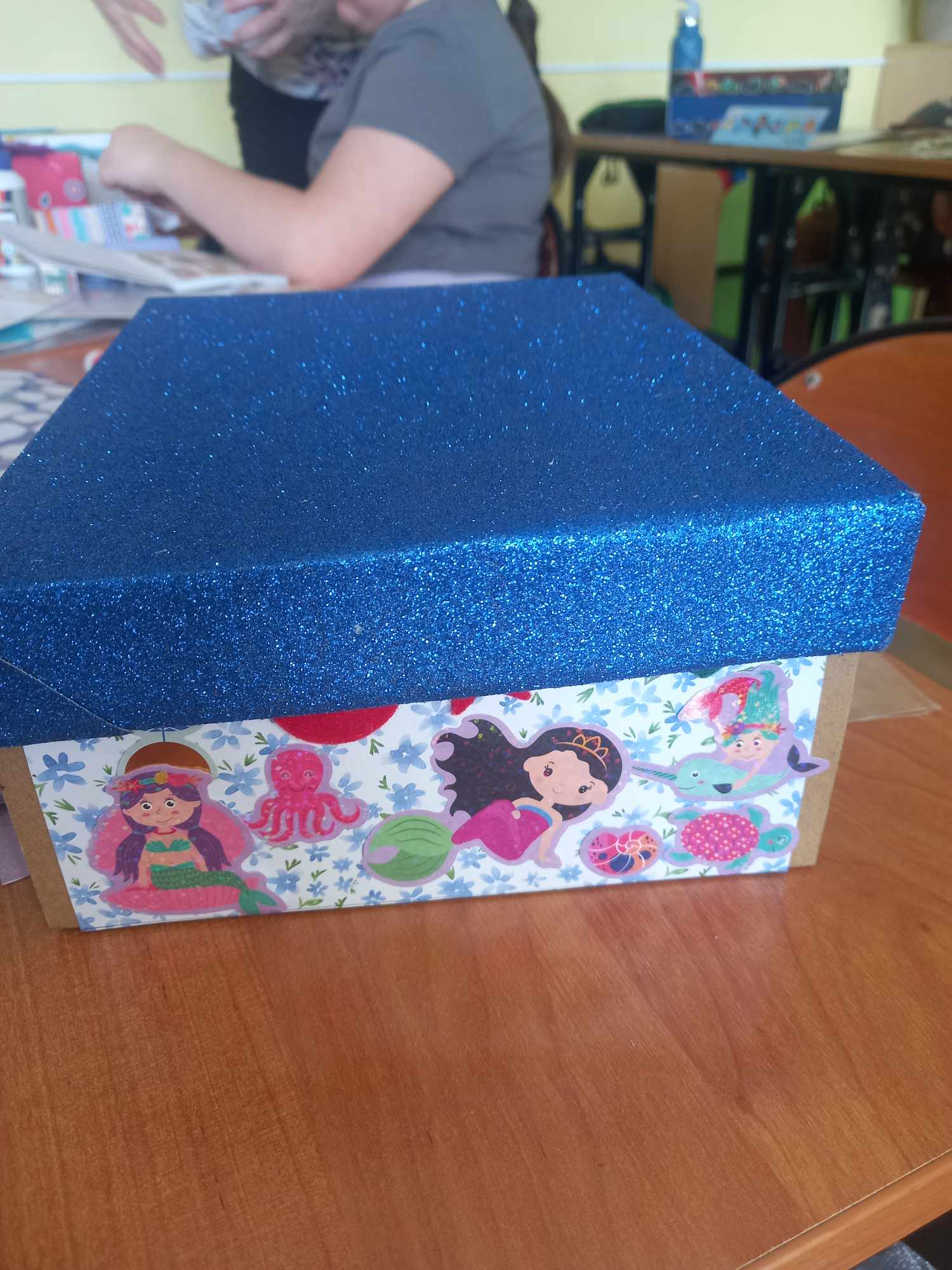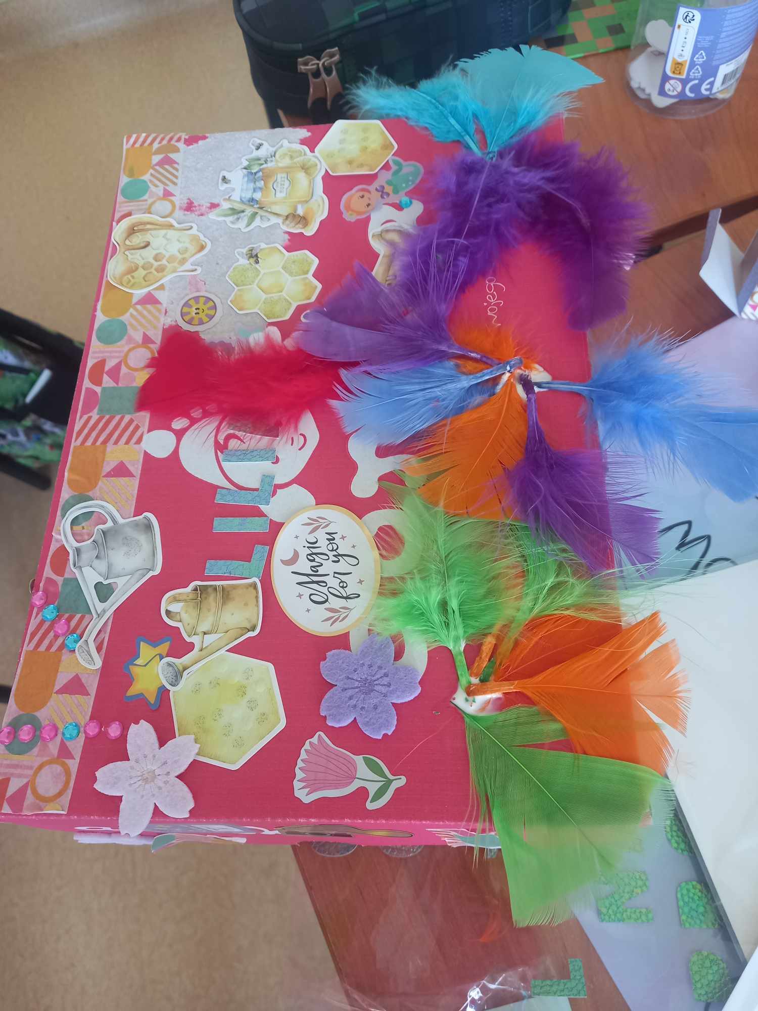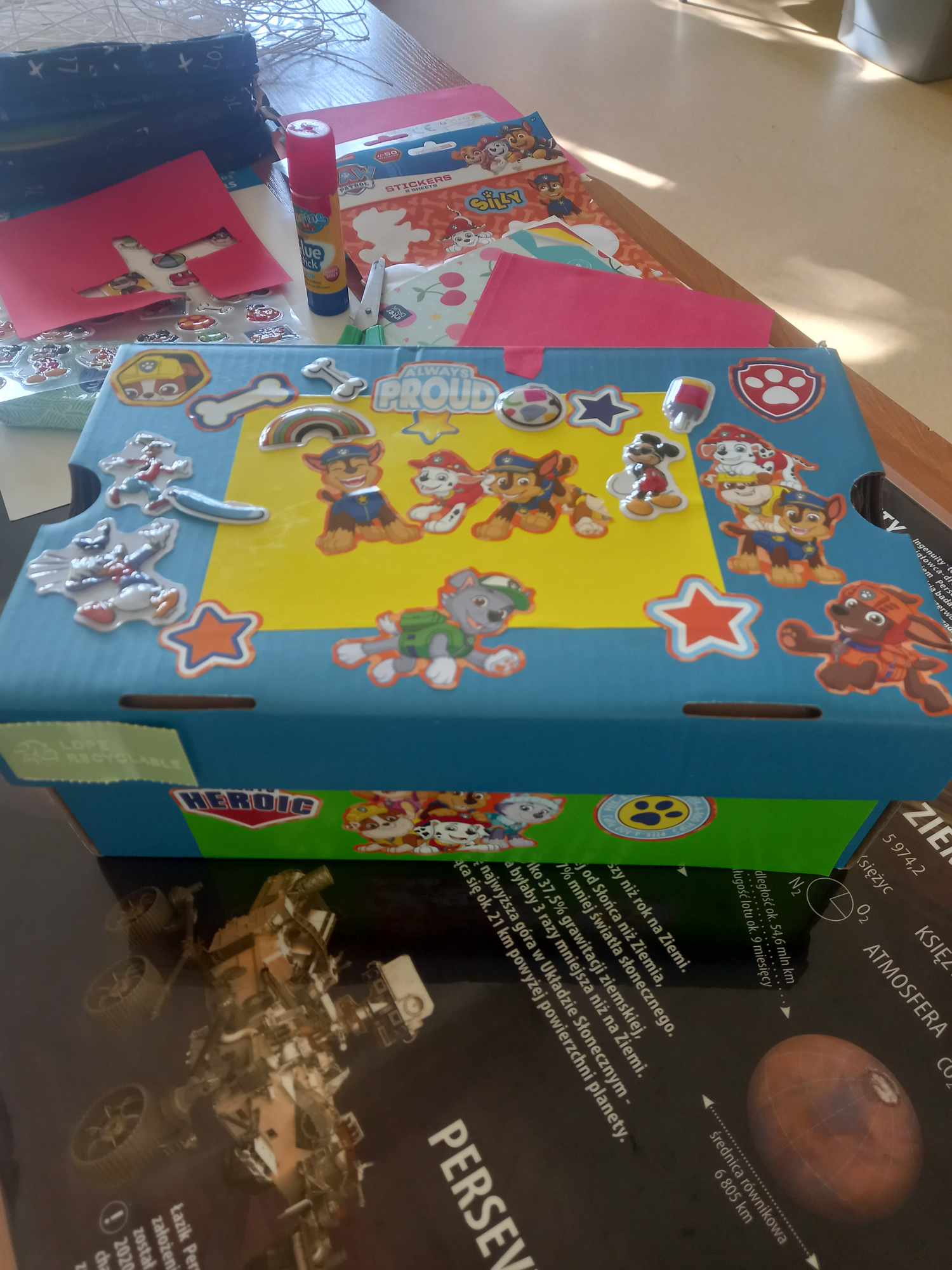 Na dzisiejszych zajęciach dzieci samodzielnie wykonywały swoją apteczkę skarbów, ozdabiały pudełka według swoich pomysłów, do których stopniowo będą wkładały rozmaite rzeczy, jakie będą im pomocne, by złagodzić stres, ból, przykrość czy zranienia emocjonalne oraz będą wzmacniały i utrwalały to, co w nich i w ich życiu jest skarbem.