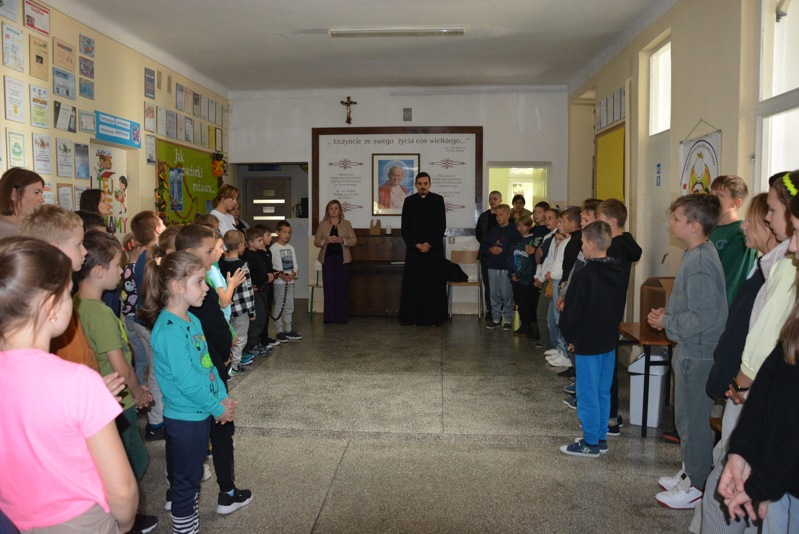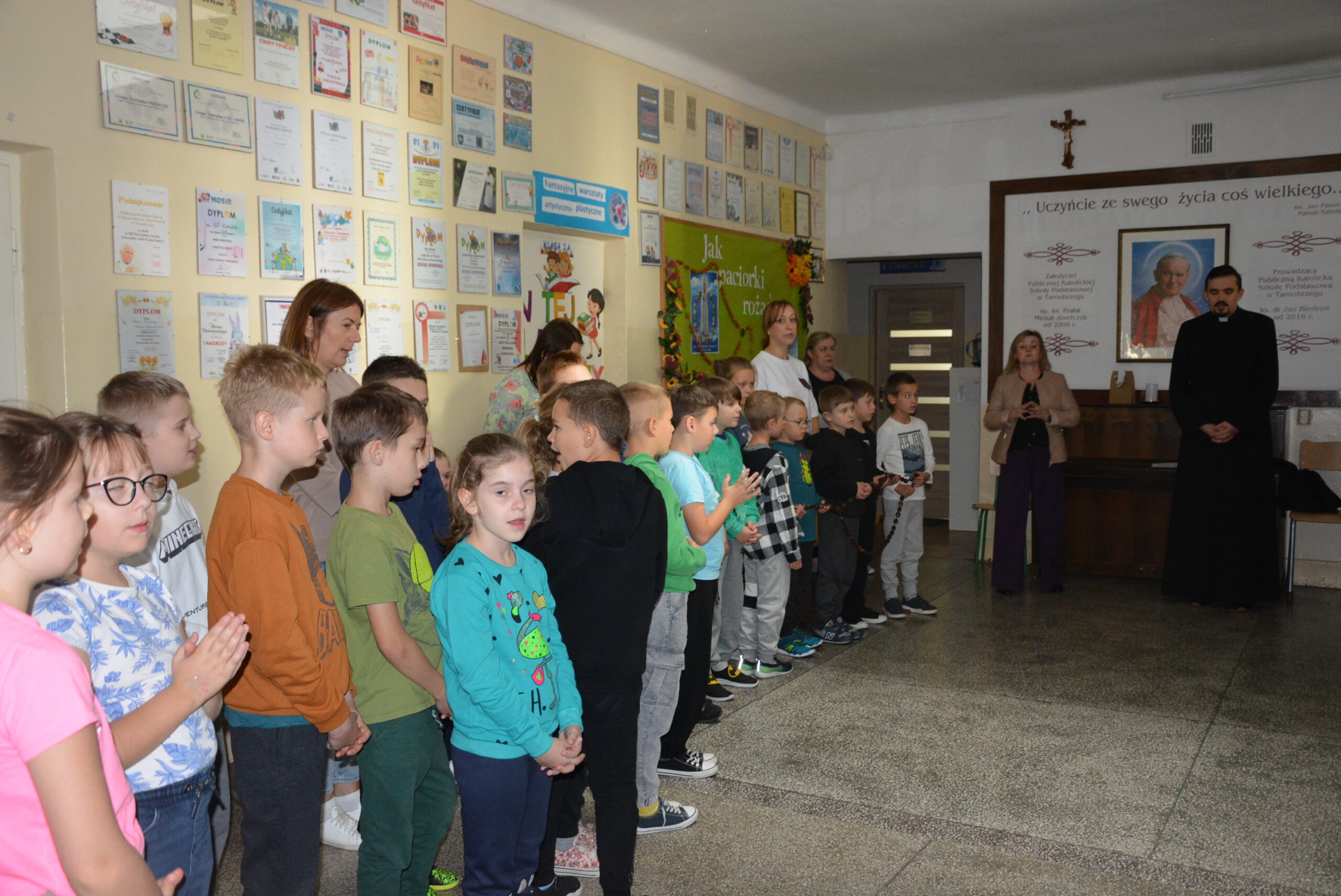 Społeczność Publicznej Katolickiej Szkoły Podstawowej rozpoczęła październik wspólną modlitwą różańcową. Różaniec pozwala nam dostrzec całe życie Syna Bożego i razem z Maryją podążać Jego ścieżkami.