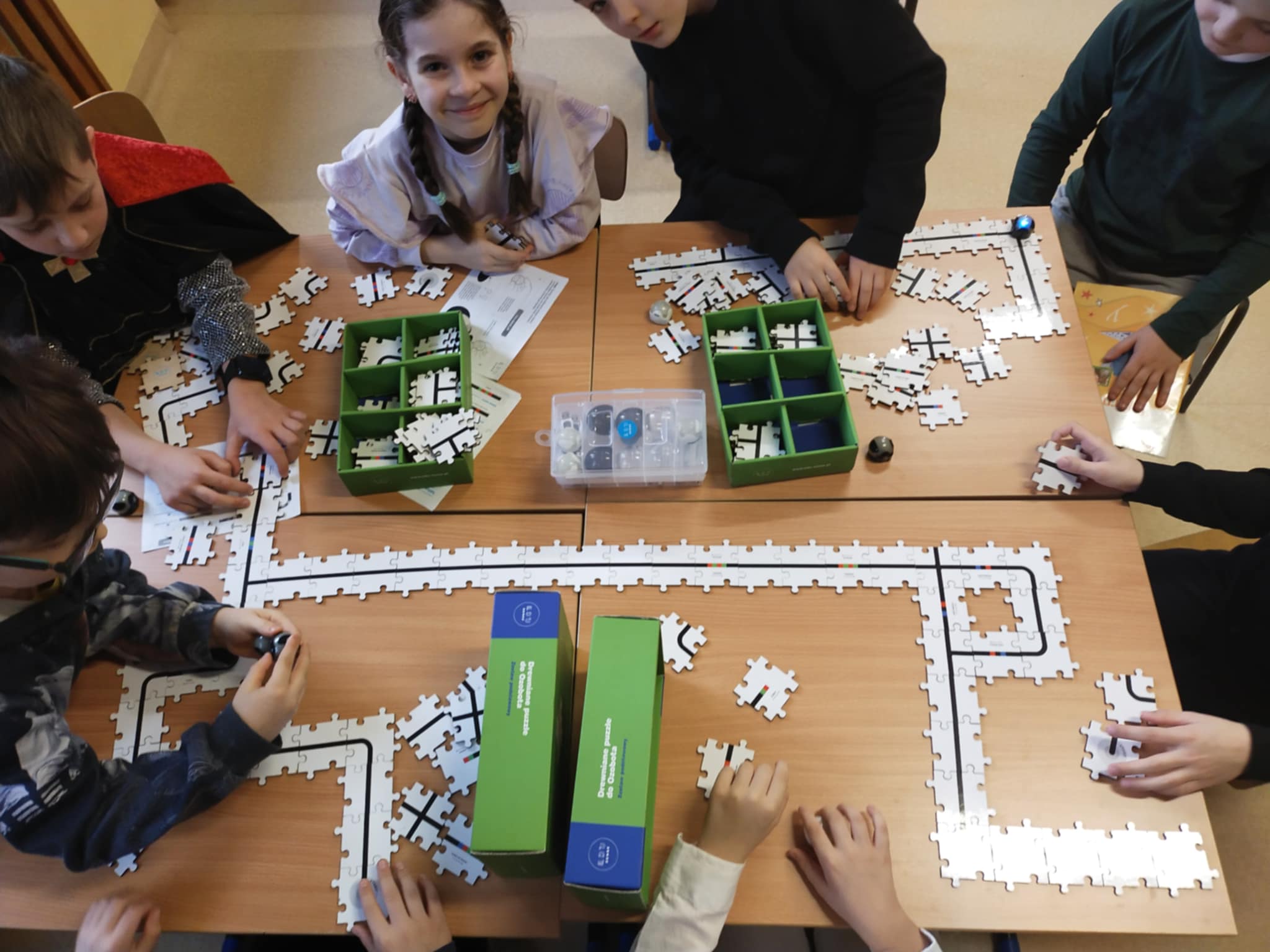 Dzięki wykorzystaniu kodów kolorystycznych i prostych algorytmów uczniowie sterowali ruchem Ozobotów, tworząc własne ścieżki i rozwiązując różnorodne zadania. Zajęcia były pełne emocji, a nauka przez zabawę sprawiła, że dzieci chętnie angażowały się w kolejne wyzwania.
