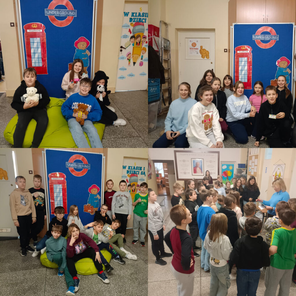 Z tej okazji klasy: IV, V i VI, w dniu poprzedzającym to święto, na języku angielskim zapoznały się z historią sympatycznego misia Paddingtona, który jest symbolem kultury Wielkiej Brytanii od ponad 60 lat. Dowiedzieliśmy się skąd pochodzi niedźwiadek, dlaczego znalazł się w Londynie, w jakich okolicznościach dostał swoje imię i czy je lubi, a także kto należy do jego rodziny, gdzie mieszka i że ponad wszystko uwielbia marmalade sandwiches i wspinaczkę.