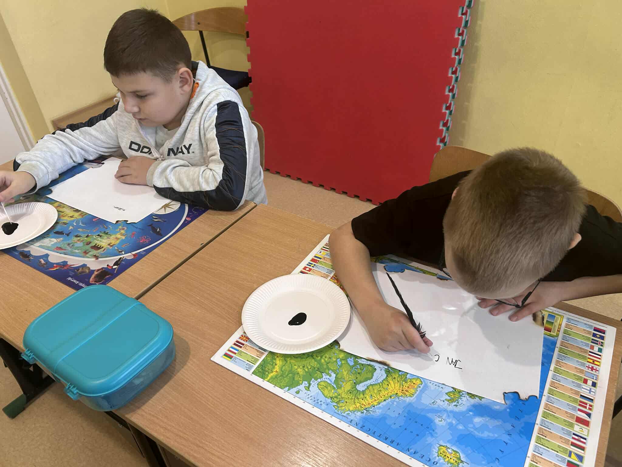 Uczniowie klasy 3 uczestniczyli w niezwykłych zajęciach, podczas których przenieśli się w czasie 📜. Odbyli podróż do czasów życia i twórczości poety Juliana Tuwima. Zainspirowani lekturą pt.,, Rany Julek! ‘’ dowiedzieli się, skąd brała się miłość Tuwima do słów, zabaw językowych i rymów. Liczne rozmowy o dzieciństwie poety, jego pasjach oraz o tym, jak codzienne obserwacje mogą przerodzić się w poezję. Zajęcia wzbogaciły także twórcze aktywności – uczniowie próbowali bawić się słowem, tworzyć własne rymy i neologizmy, naśladując styl Juliana Tuwima. Dzieci miały okazję spróbować pisania piórem gęsim maczanym w atramencie – tak, jak robiono to przed laty. Okazało się, że nie jest to wcale takie łatwe! Wymaga cierpliwości, skupienia i delikatności, ale daje ogromną satysfakcję i pozwala docenić piękno ręcznego pisma. Uczniowie tworzyli własne słowa, rymowanki i krótkie wierszyki, pełne humoru, dźwięków i wyobraźni. Nie zabrakło śmiechu, kreatywnych pomysłów i językowych eksperymentów, z których Tuwim słynął.