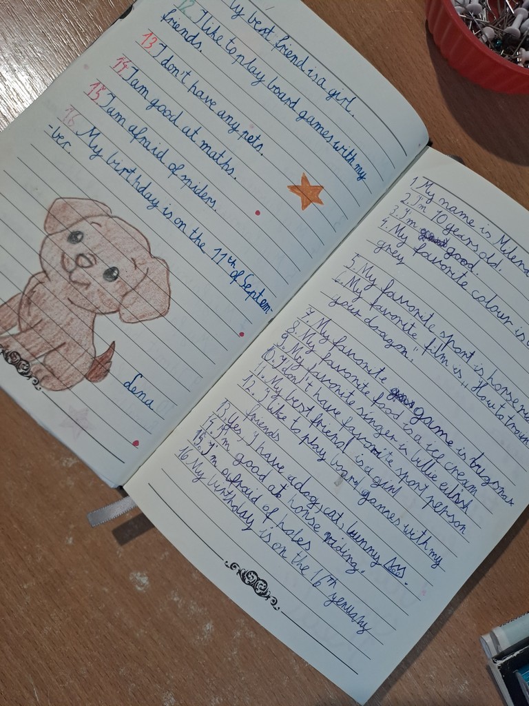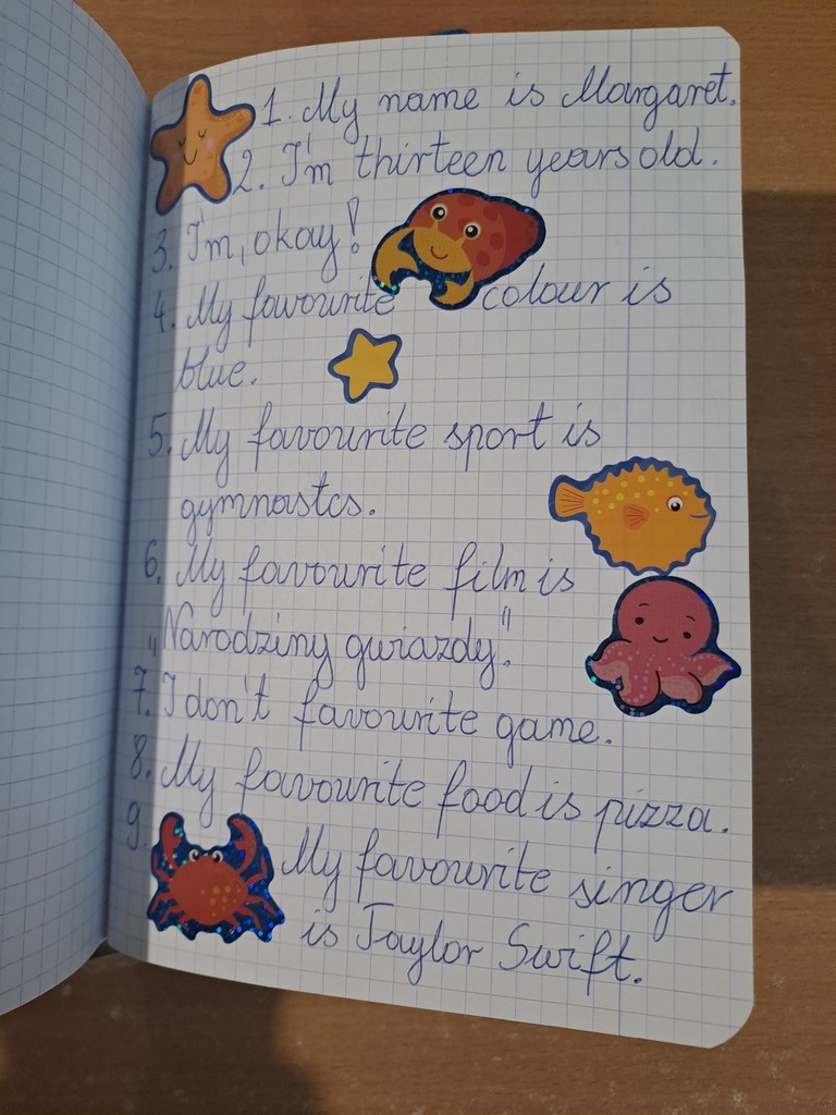 Na początku, podczas lekcji języka angielskiego, wspólnie wymyślaliśmy pytania, które chcieliśmy zadać innym. Następnie przez dwa tygodnie uczniowie wymieniali się swoimi friendship bookami, zbierając wpisy od kolegów, koleżanek, a nawet nauczycieli 👩🏫👨🏫