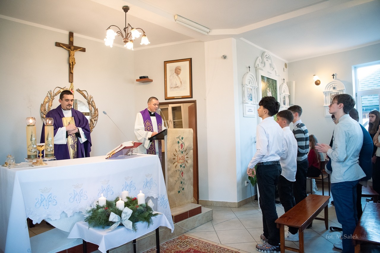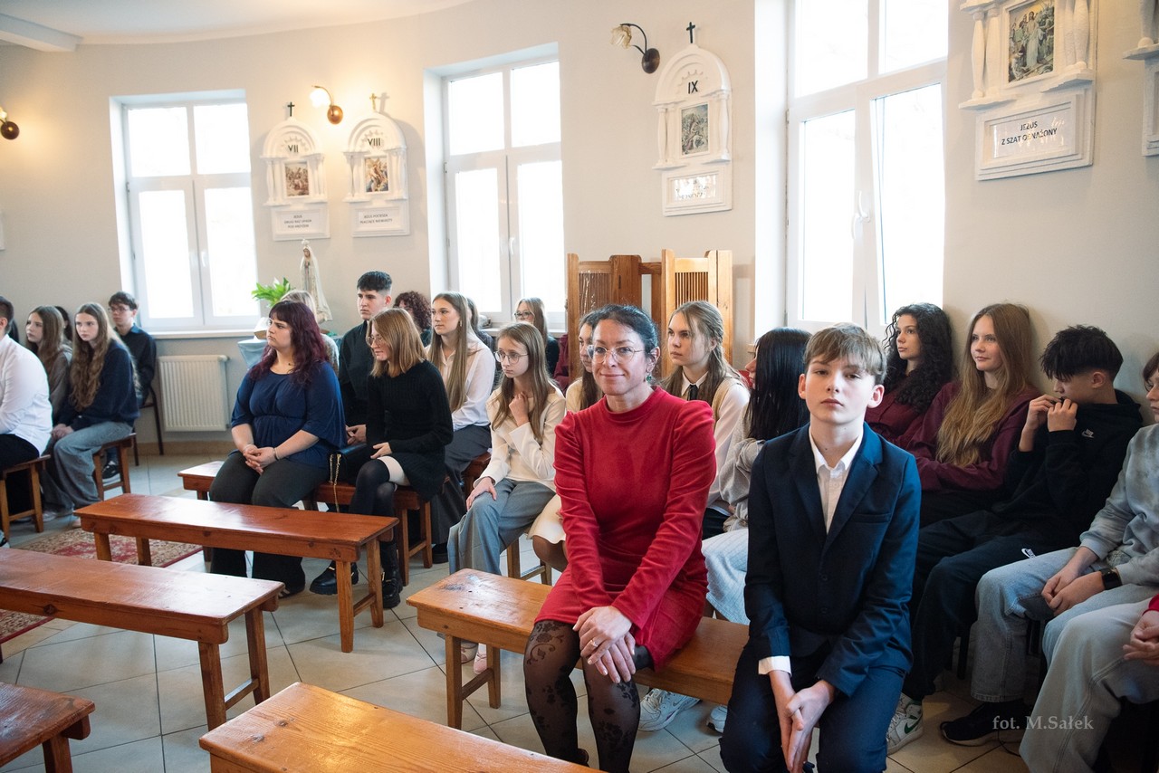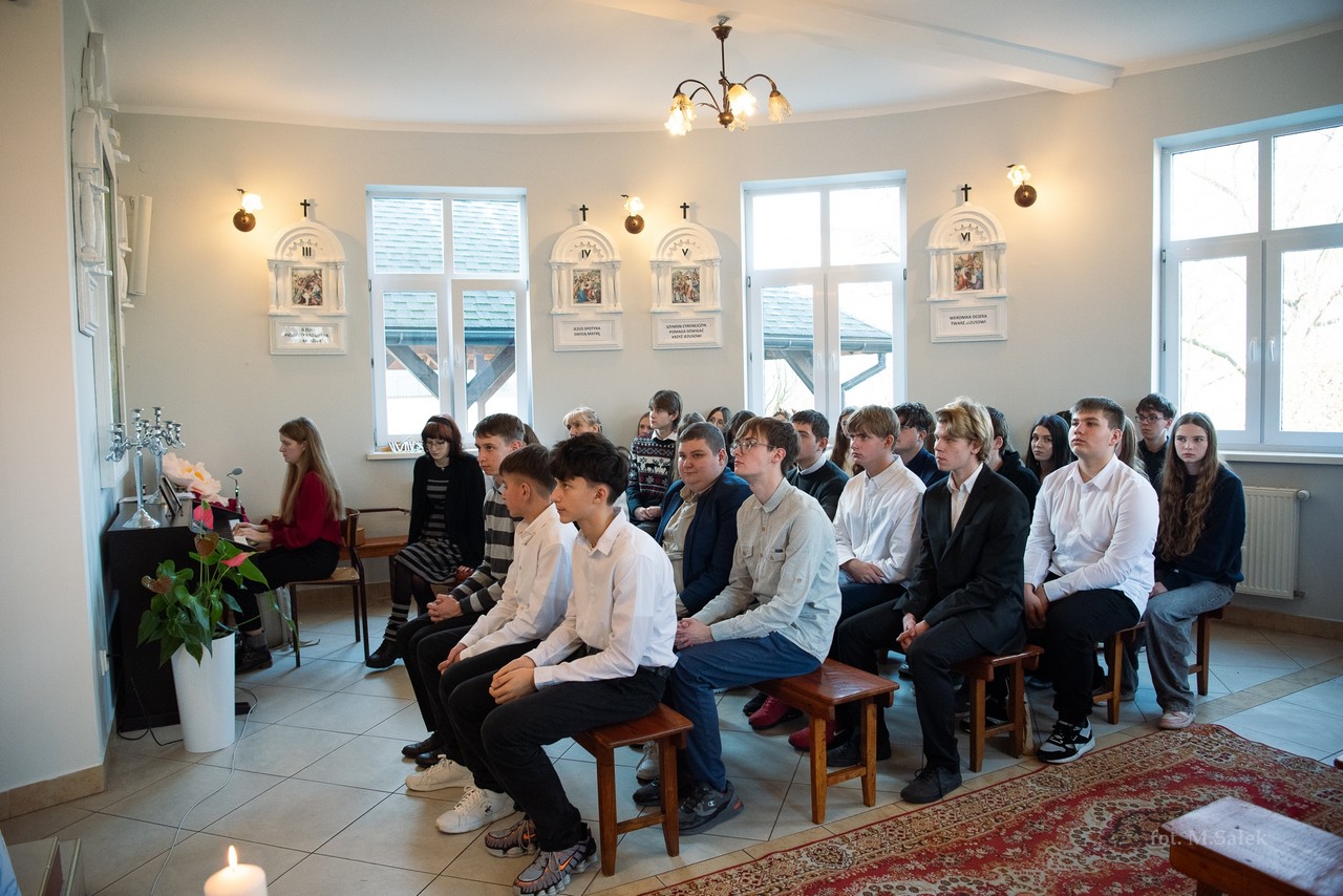 Rekolekcje w szkolnej kaplicy były czasem wyciszenia, refleksji oraz pogłębienia wiary, a także okazją do umocnienia wspólnoty szkolnej. Dziękujemy księżom za obecność, wygłoszone słowo i wspólną modlitwę.