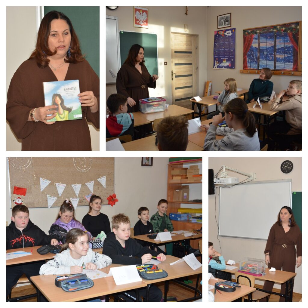 W dniu 9 stycznia 2026 r. uczniowie klasy IV wzięli udział w wyjątkowym spotkaniu autorskim z Panią Magdą Żukowską-Bąk – autorką książki „Koraliki. Opowieści o emocjach”. 😊