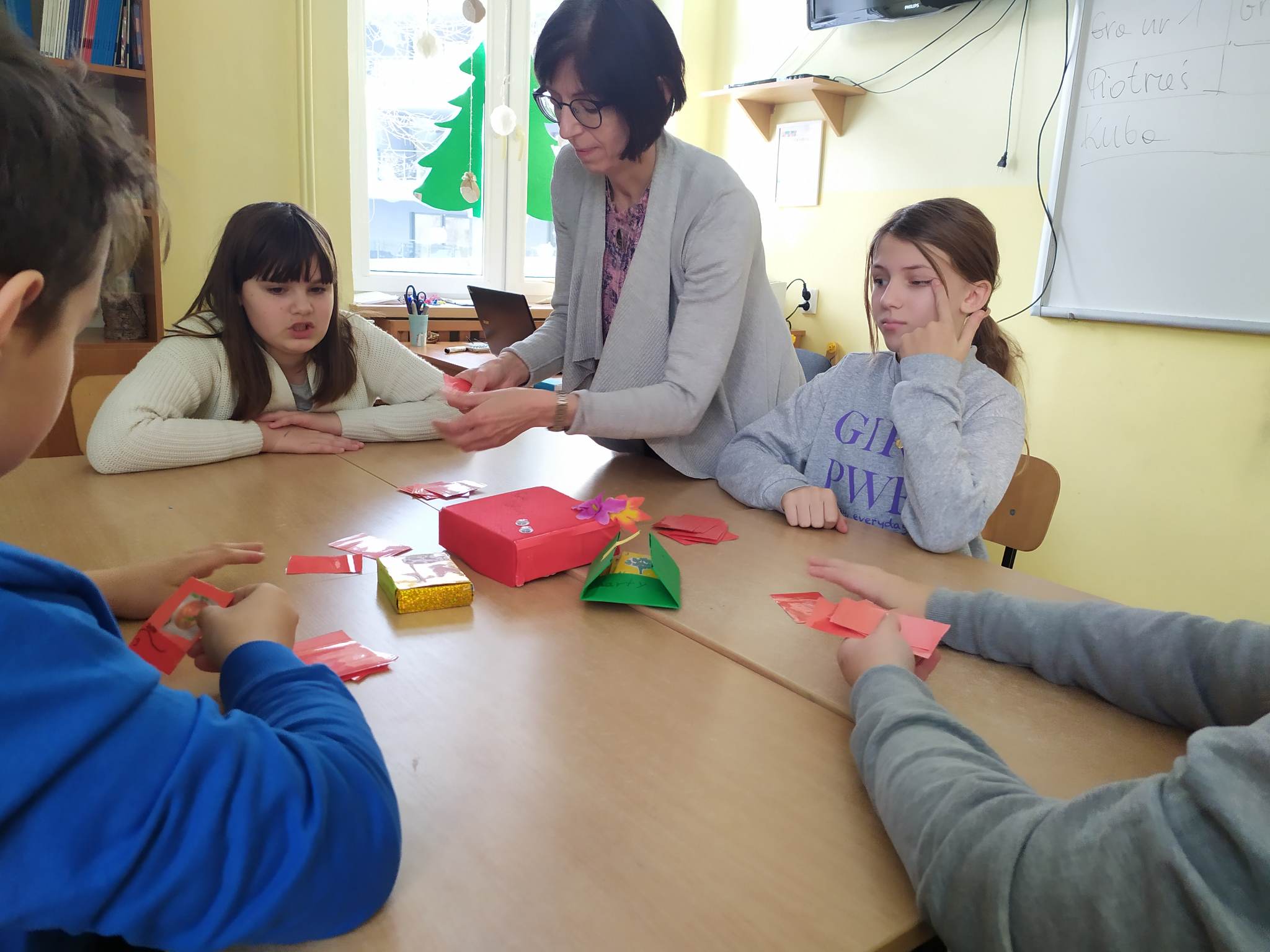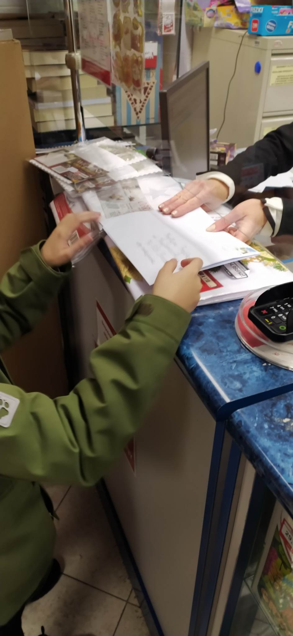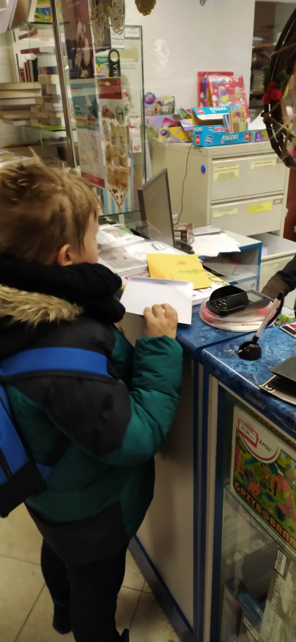 Przy okazji pisania listu i adresowania koperty uczniowie klasy 3 wybrali się do Urzędu Pocztowego. Najpierw przygotowali ręcznie robione karki bożonarodzeniowe oraz napisali życzenia. Po zaadresowaniu koperty dzieci udały się na Pocztę. Tam każdy kupił znaczek i sam przykleił go w odpowiednim miejscu. Listy uczniowie skierowali do najbliższych osób, przyjaciół, rodziny. Dzieci poznały zakres usług pocztowych, zadania jakie spełnia ten urząd w naszym życiu. Uczniowie poznali drogę listu, paczki i innych przesyłek, jak przebiega sortowanie i stemplowanie przesyłek. Wizyta na poczcie była również okazją do utrwalenia nawyku kulturalnego zachowania się w miejscu publicznym. Wyjście okazało się pouczające i bardzo interesujące, a dzieci wracały do szkoły pełne miłych wrażeń.
