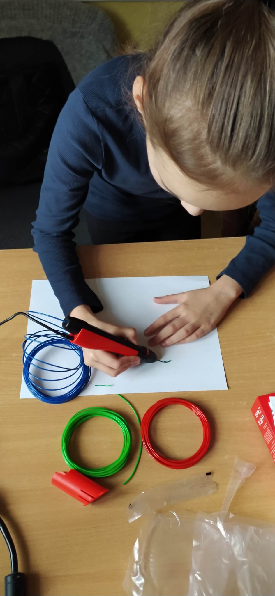 W ramach Innowacji Pedagogicznej ,,Chcę wiedzieć więcej’’ uczniowie klasy 3 majsterkowali z długopisem 3D, który stosowali, aby pobudzić wyobraźnię, znakomicie się przy tym bawiąc.