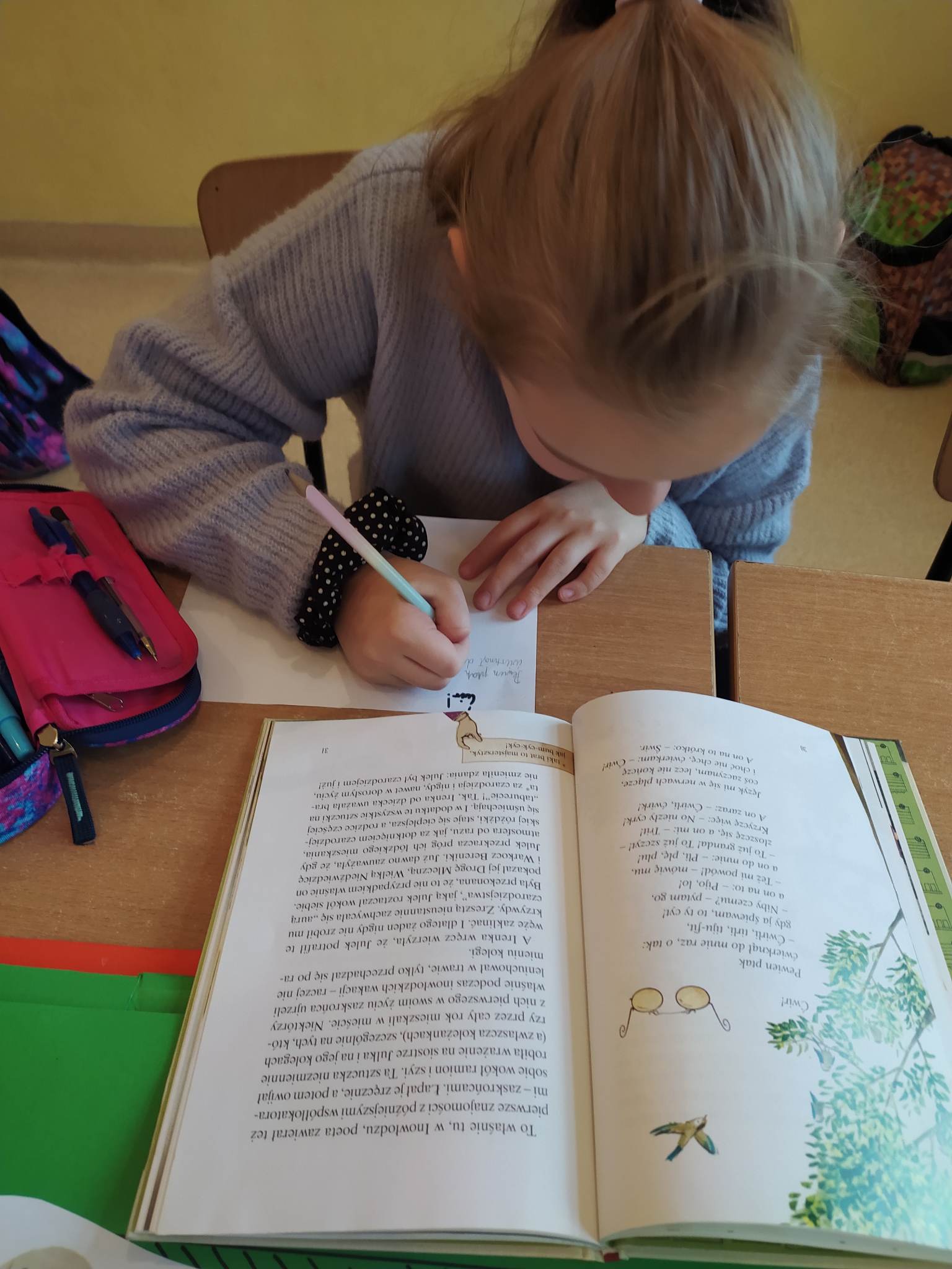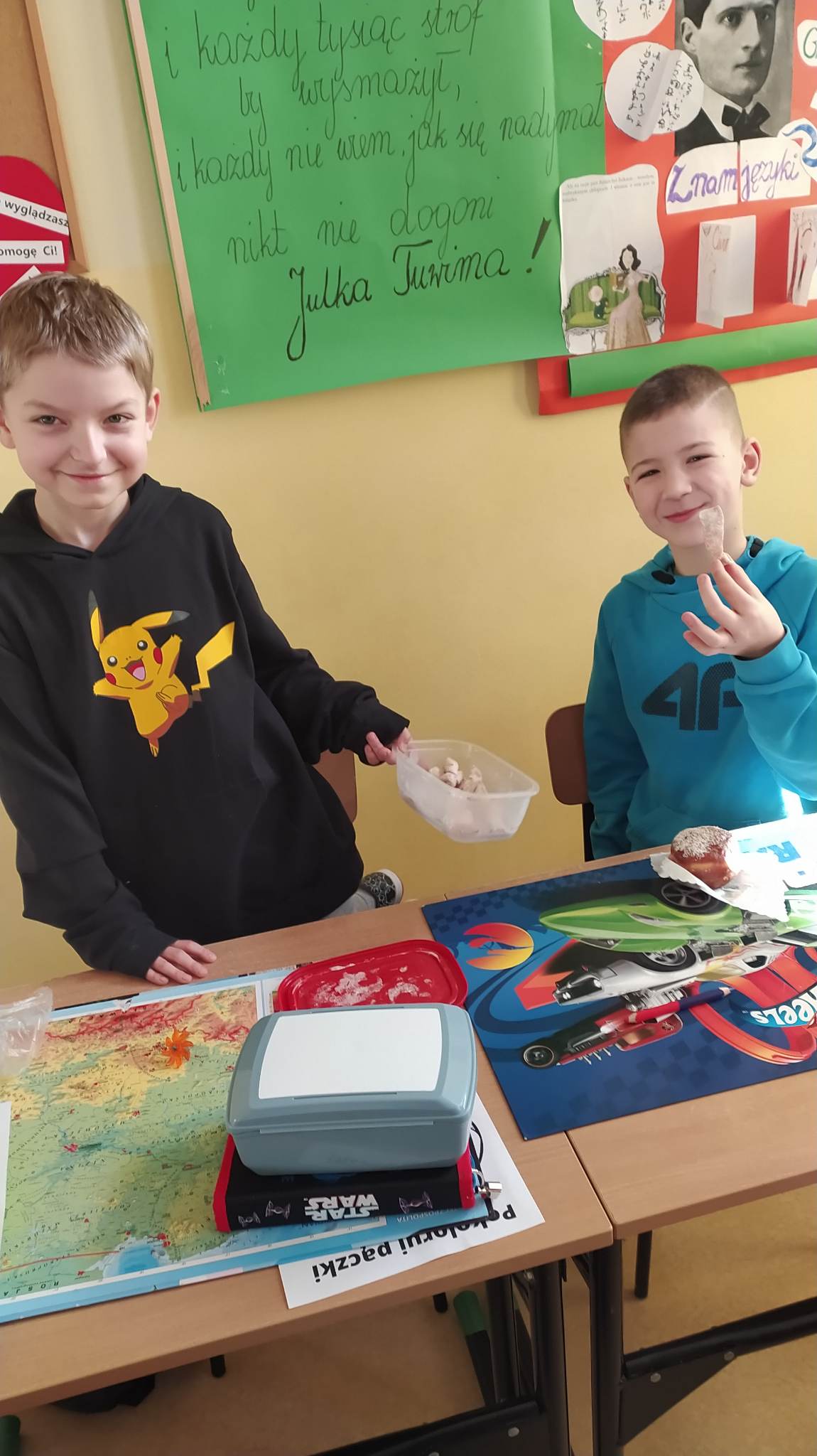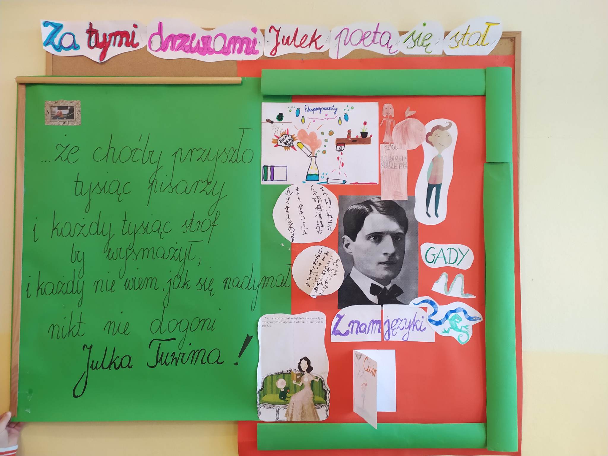 Uczniowie klasy 3 spotkali się w lekturze z małym Julkiem – Julianem Tuwimem. Poznali przygody znanego i kochanego przez całe pokolenia pisarza, kiedy był jeszcze małym chłopcem. Bo okazuje się, że autor „Lokomotywy”, „Ptasiego Radia” i innych znanych wierszy dla dzieci był kiedyś niezłym urwisem! Tytułowy bohater to mały chłopiec o niezwykłej pomysłowości i wielkiej skłonności do psot, które wprawiają w zachwyt jego młodszą siostrę oraz koleżanki i kolegów ze szkoły i podwórka, ale przyprawiają o ból głowy niejednego dorosłego. Julek hoduje w pudełku zaskrońce, przyrządza chemiczne mikstury w kuchennym laboratorium (za pomocą których raz prawie wysadził w powietrze całą kamienicę) i … bawi się słowem.