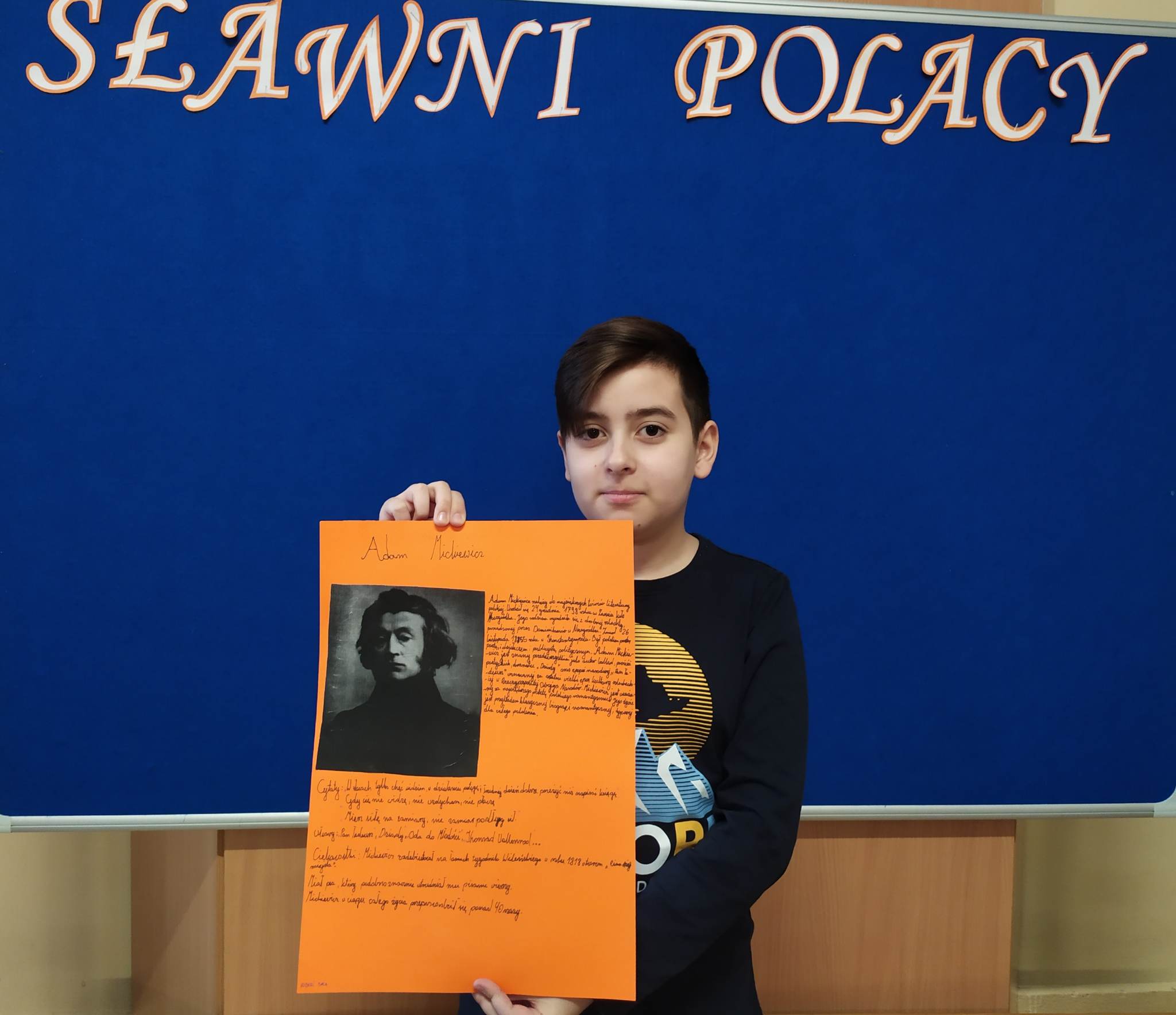 Uczniowie w ciągu swojej edukacji będą jeszcze niejednokrotnie wracać do tego tematu na lekcjach historii, języka polskiego. Dlatego zrodził się pomysł na projekt edukacyjny, podczas realizacji którego uczniowie wyszukiwali informacje dotyczących życia, twórczości i osiągnięć wylosowanej wcześniej postaci. Dzisiaj odbyła się prezentacja projektu.