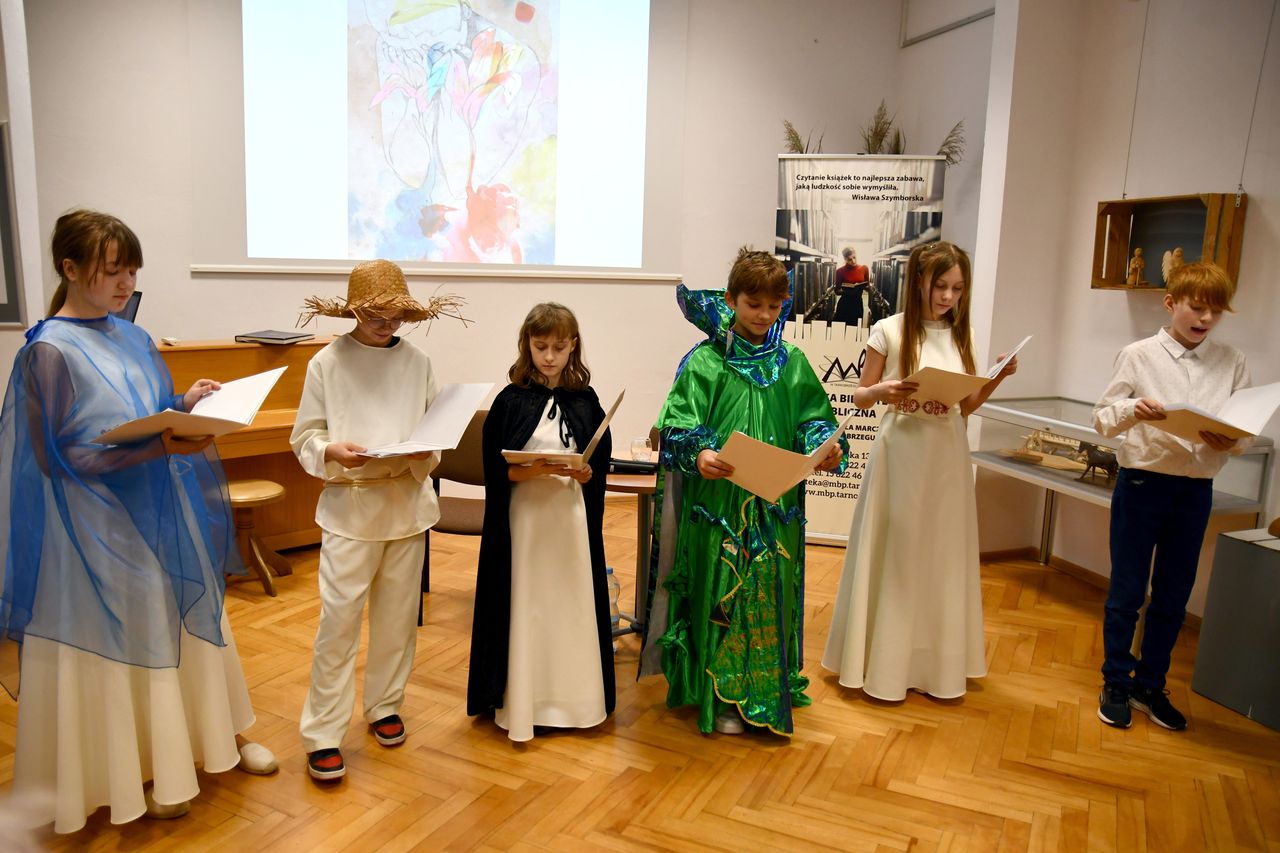 Dnia 8 lutego 2023 r. uczniowie klasy 6 zaprezentowali się w Miejskiej Bibliotece Publicznej w ramach promocji Baśni o Tarnobrzegu. Przedstawili tajemnice losów bohaterów II części Baśni.