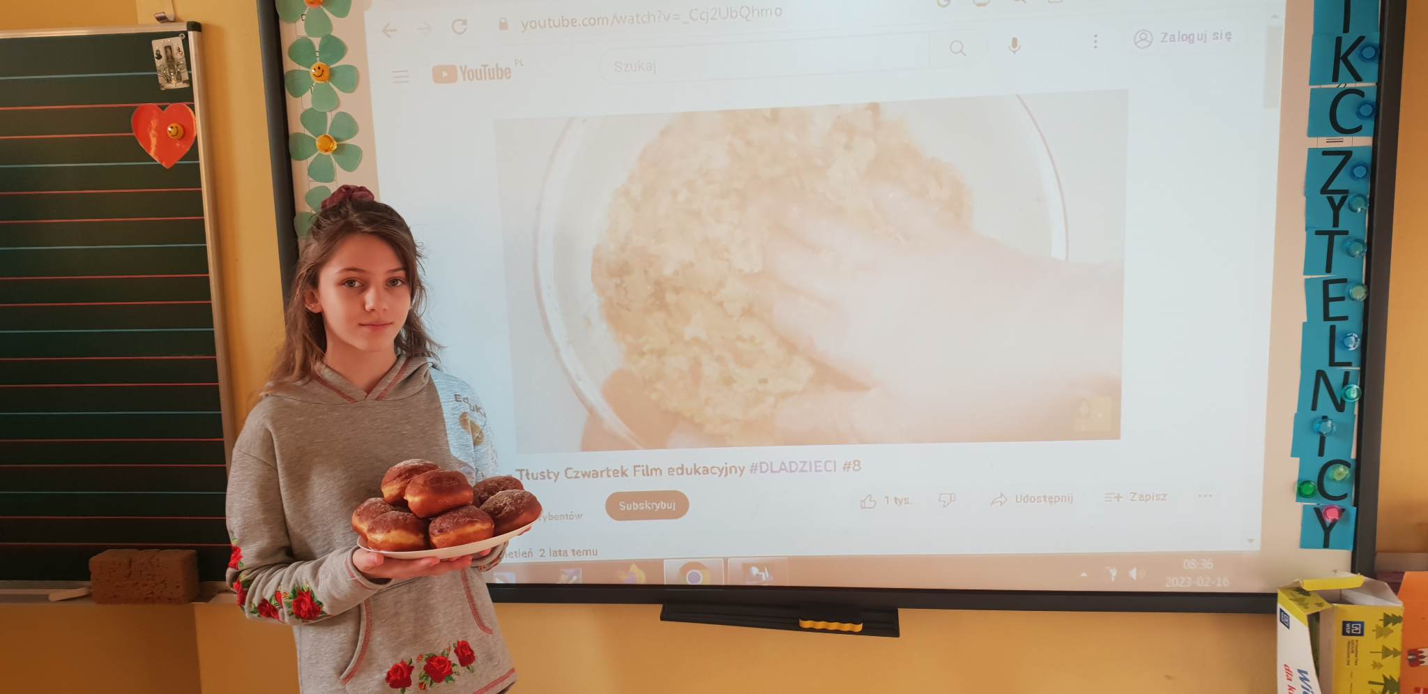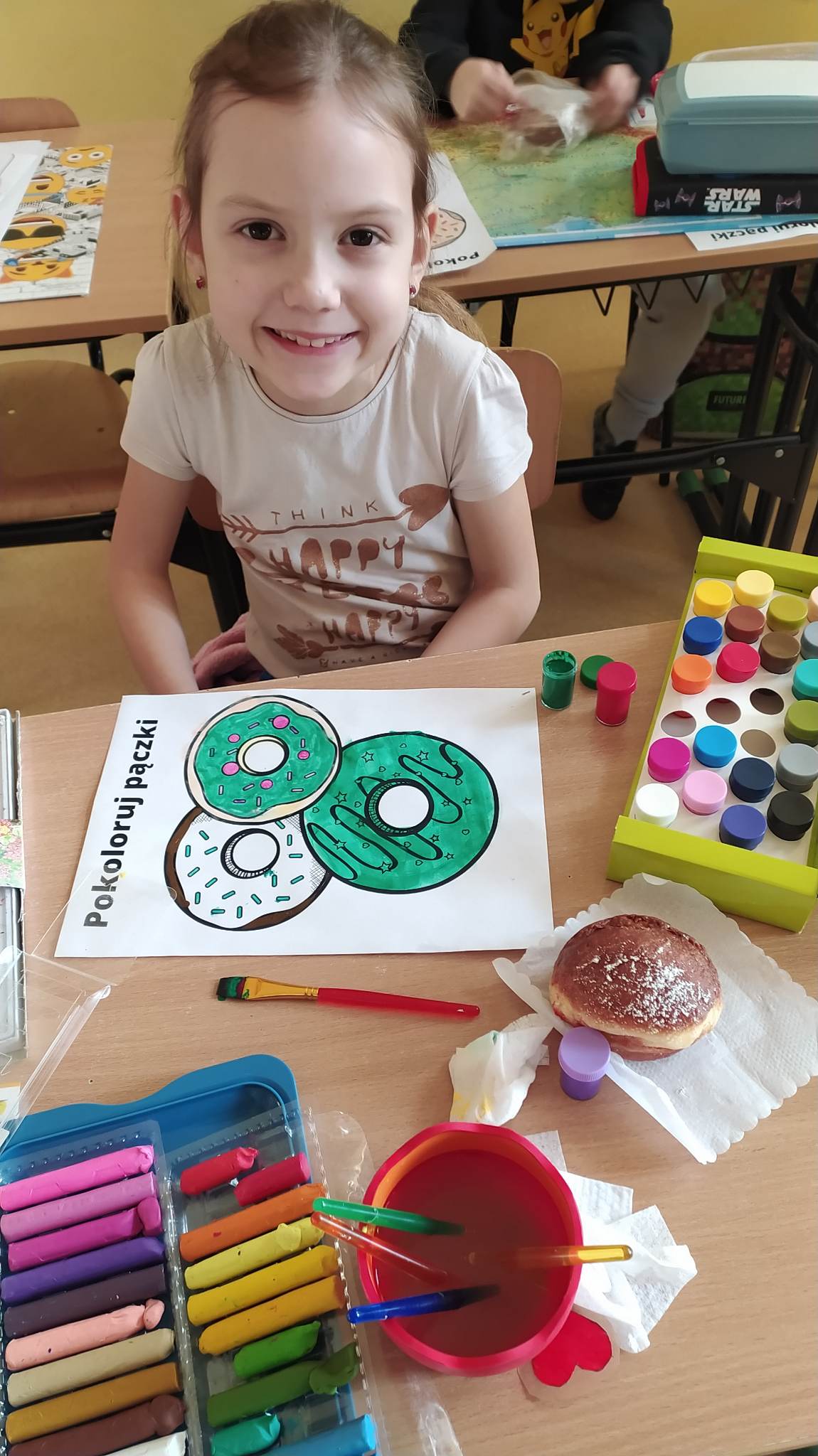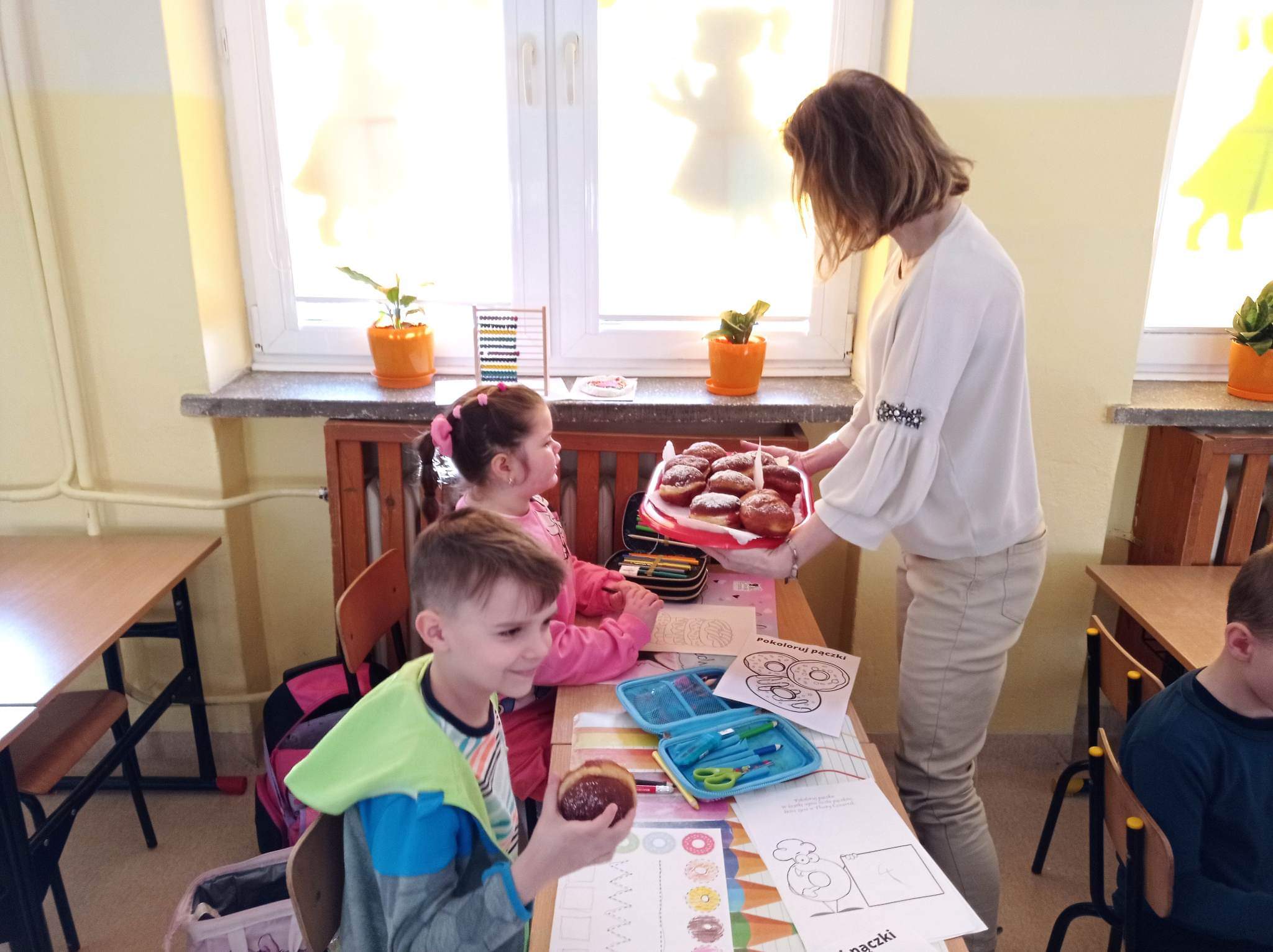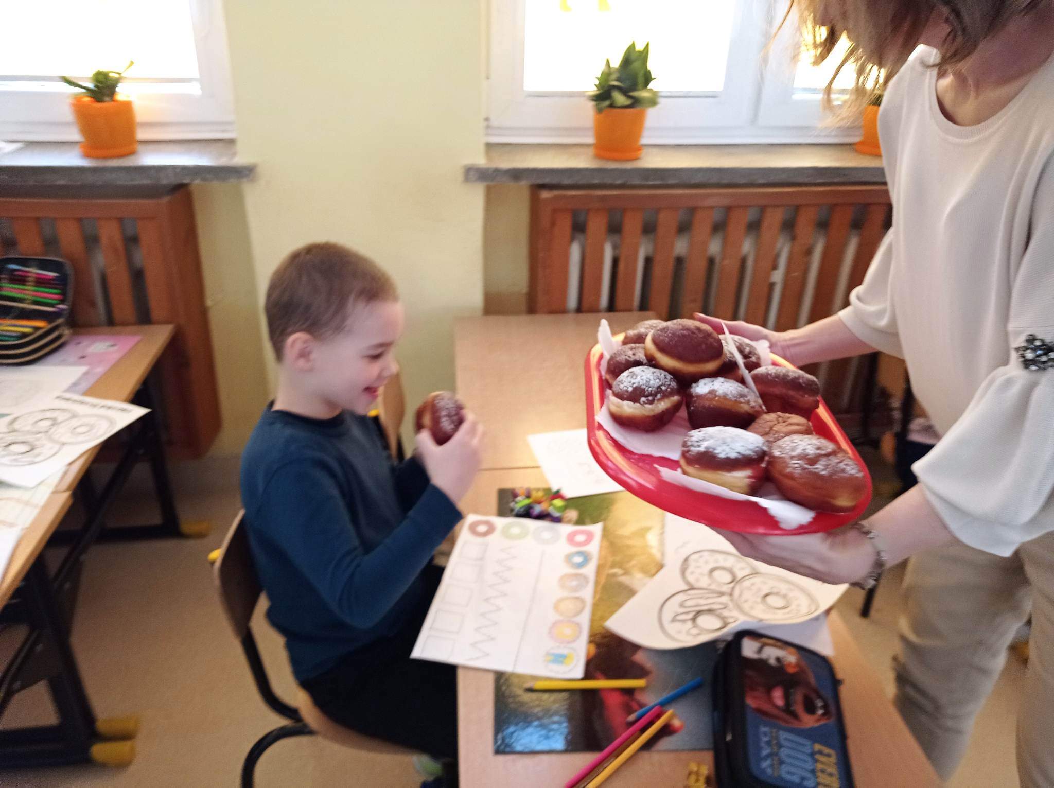 Tłusty czwartek to dzień, kiedy chętniej niż zwykle sięgamy po pączki i inne słodkie wypieki. Jest to jeden z najbardziej lubianych dni w roku. Tłusty czwartek rozpoczyna ostatni tydzień karnawału, a następująca po nim środa to początek Wielkiego Post. Uczniowie tego dnia mieli okazję zasmakować tego tradycyjnego wypieku, jak również poznać historię tego święta zarówno w Polsce jak i na świecie. Dzieci z klas 1-3 wykonywały prace plastyczne, gdzie pięknie dekorowały swoje rysunki z pączkami. Wszystkim tego dnia życzymy SMACZNEGO.