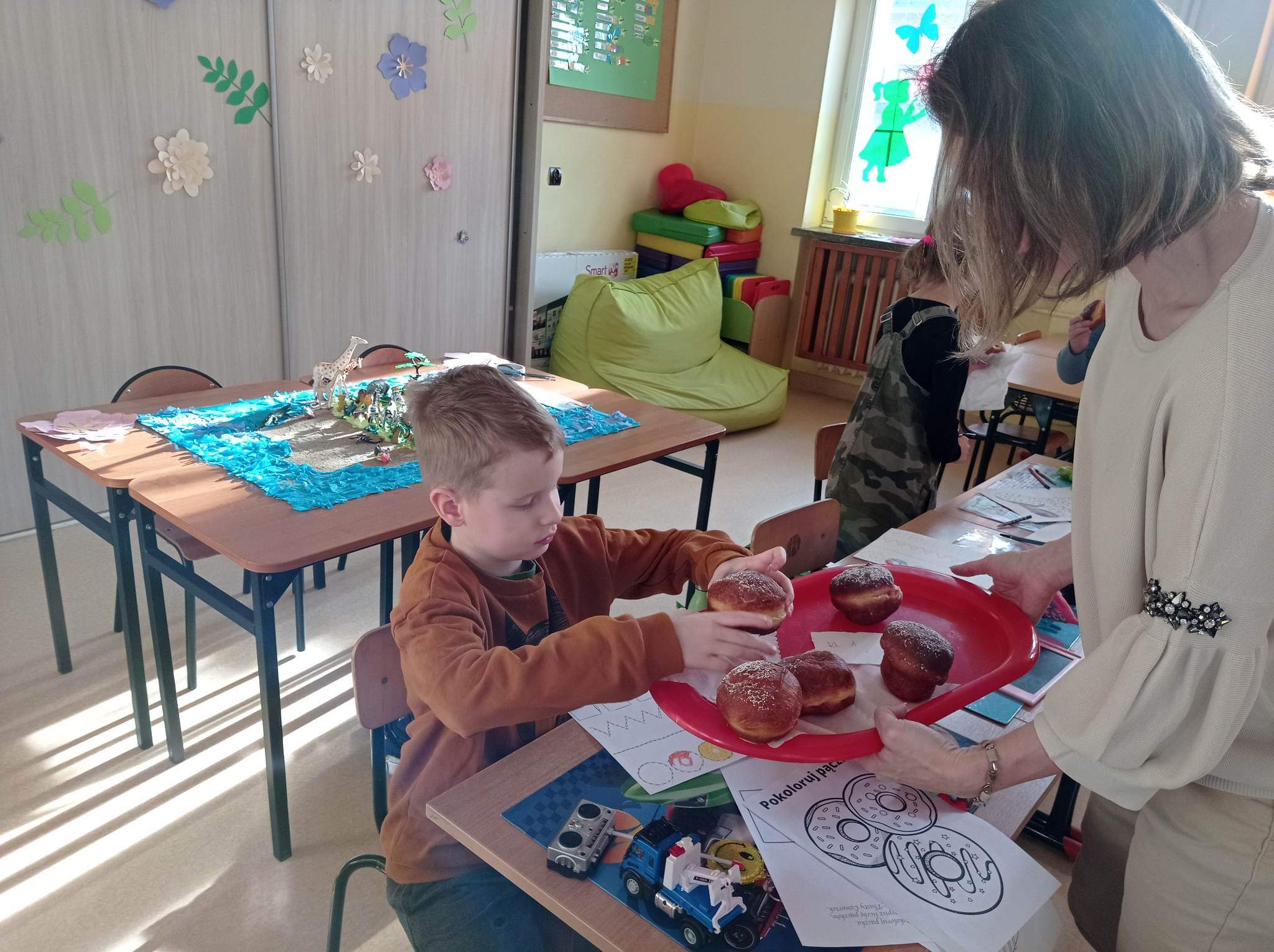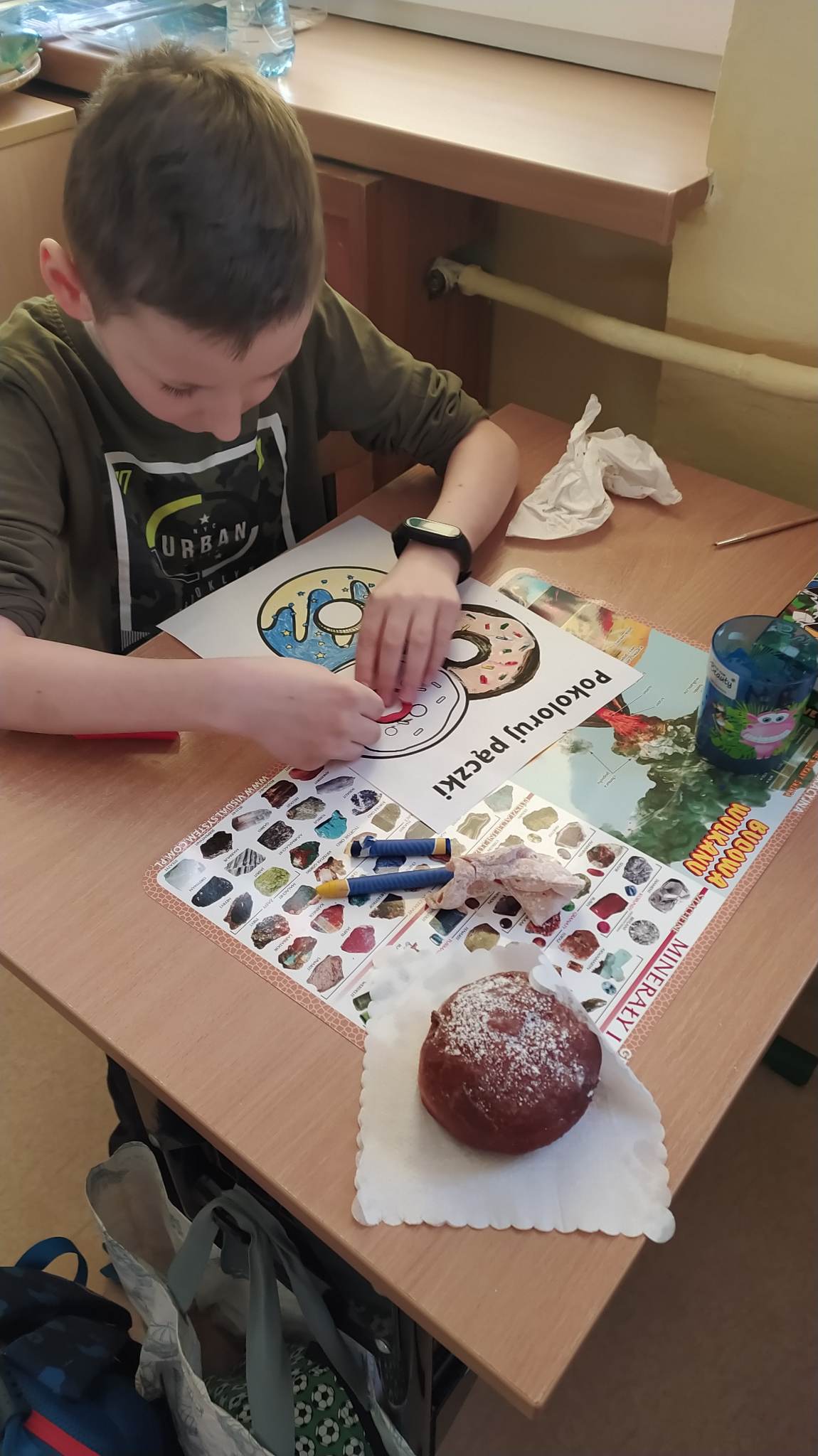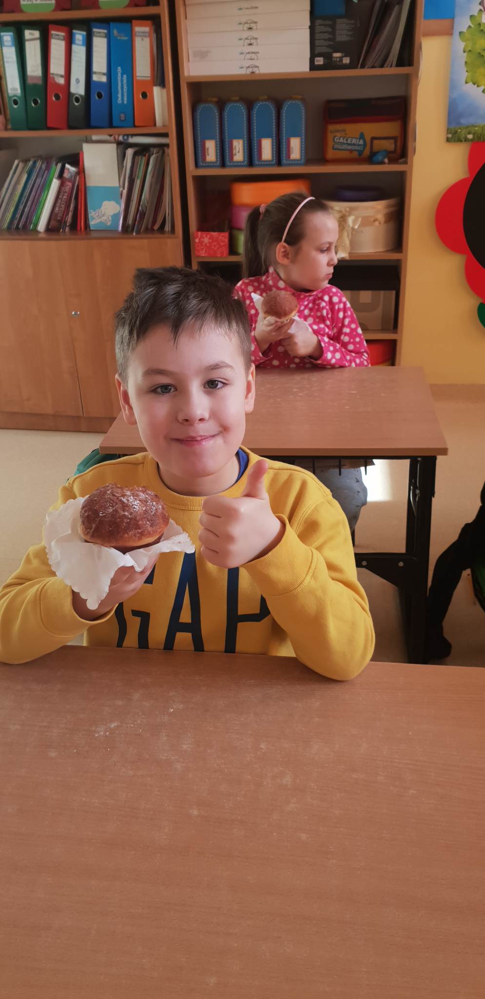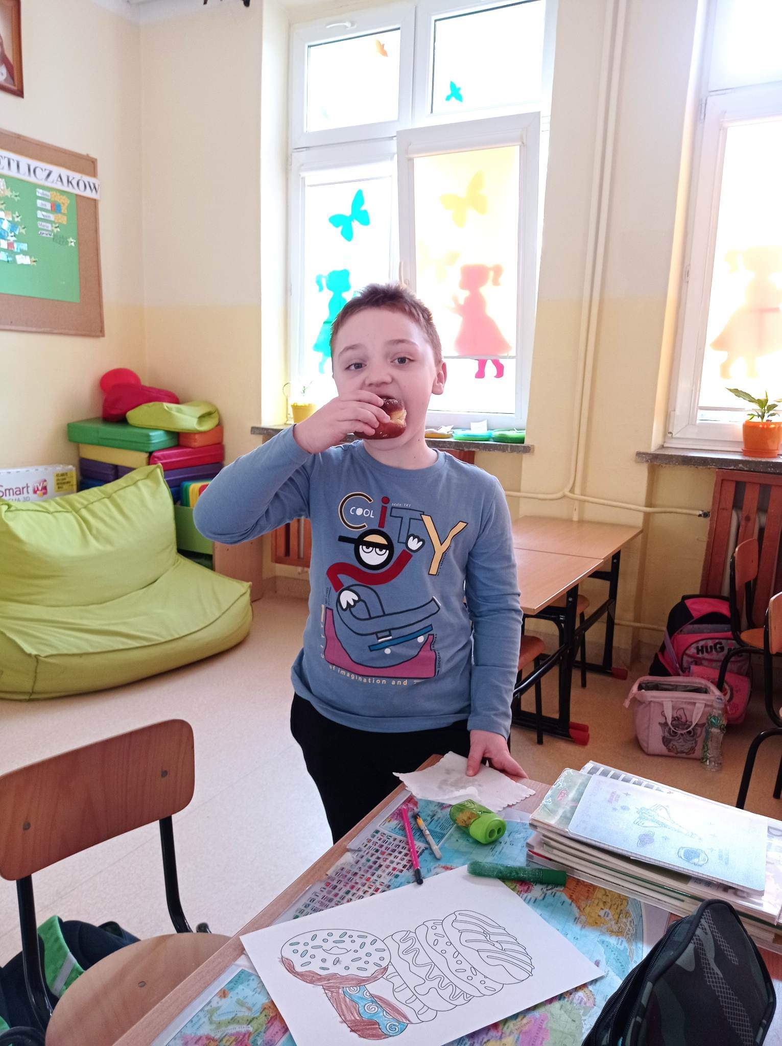 Tłusty czwartek to dzień, kiedy chętniej niż zwykle sięgamy po pączki i inne słodkie wypieki. Jest to jeden z najbardziej lubianych dni w roku. Tłusty czwartek rozpoczyna ostatni tydzień karnawału, a następująca po nim środa to początek Wielkiego Post. Uczniowie tego dnia mieli okazję zasmakować tego tradycyjnego wypieku, jak również poznać historię tego święta zarówno w Polsce jak i na świecie. Dzieci z klas 1-3 wykonywały prace plastyczne, gdzie pięknie dekorowały swoje rysunki z pączkami. Wszystkim tego dnia życzymy SMACZNEGO.