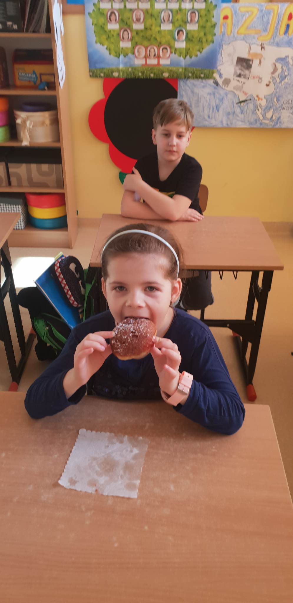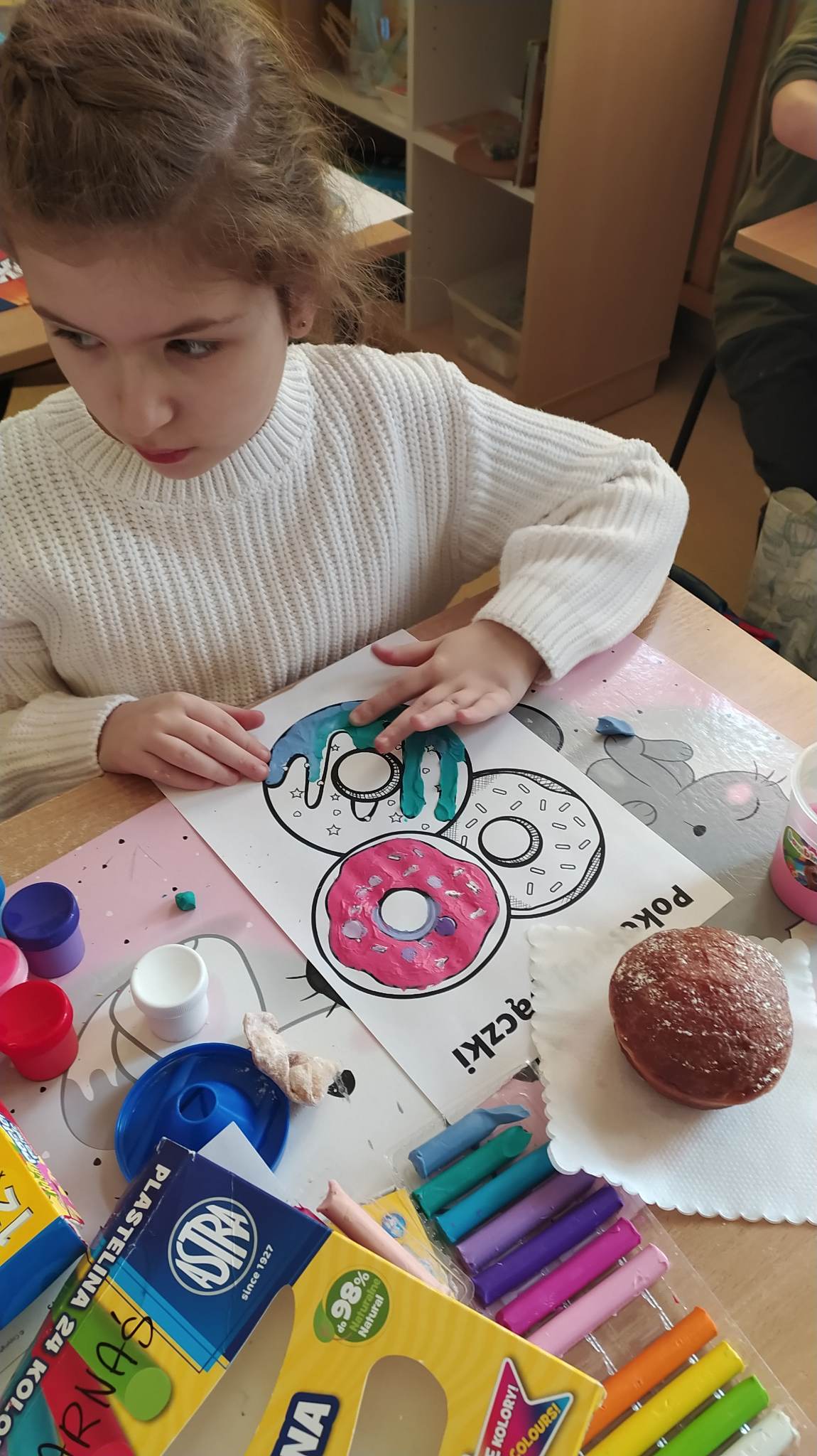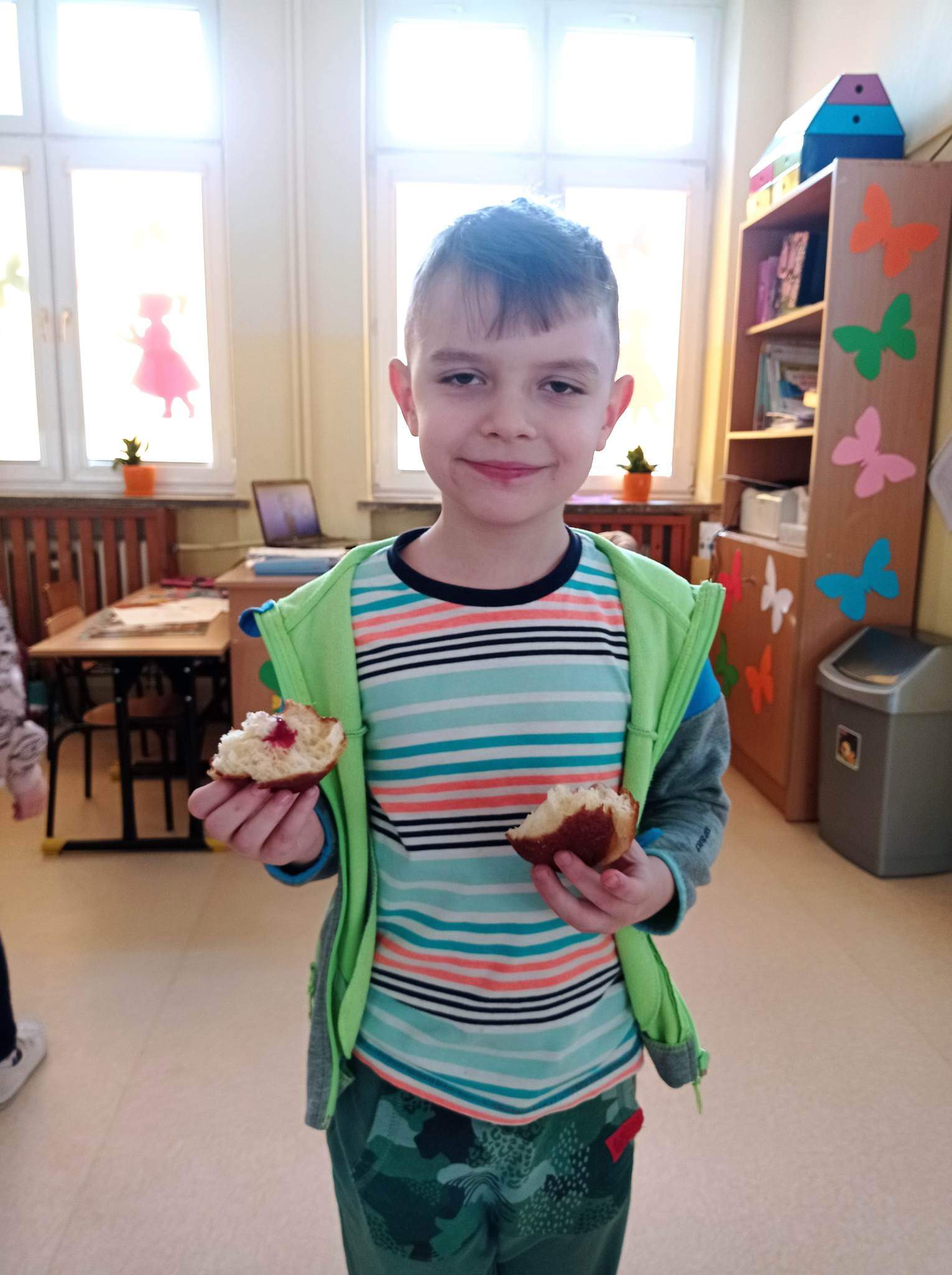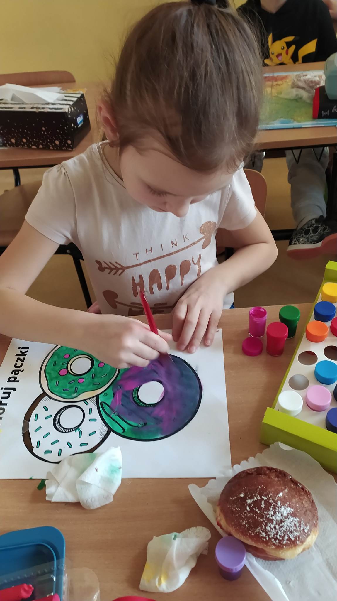 Tłusty czwartek to dzień, kiedy chętniej niż zwykle sięgamy po pączki i inne słodkie wypieki. Jest to jeden z najbardziej lubianych dni w roku. Tłusty czwartek rozpoczyna ostatni tydzień karnawału, a następująca po nim środa to początek Wielkiego Post. Uczniowie tego dnia mieli okazję zasmakować tego tradycyjnego wypieku, jak również poznać historię tego święta zarówno w Polsce jak i na świecie. Dzieci z klas 1-3 wykonywały prace plastyczne, gdzie pięknie dekorowały swoje rysunki z pączkami. Wszystkim tego dnia życzymy SMACZNEGO.