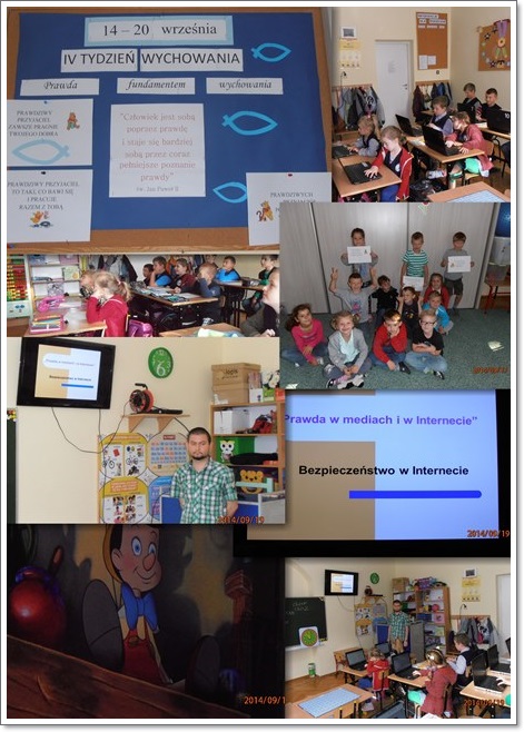 2. W ramach zajęć komputerowych przeprowadzona została lekcja pod tematem „Prawda w mediach i w Internecie”. Celem zajęć było kształtowanie umiejętności odpowiedzialnego i twórczego korzystania ze środków społecznego przekazu.