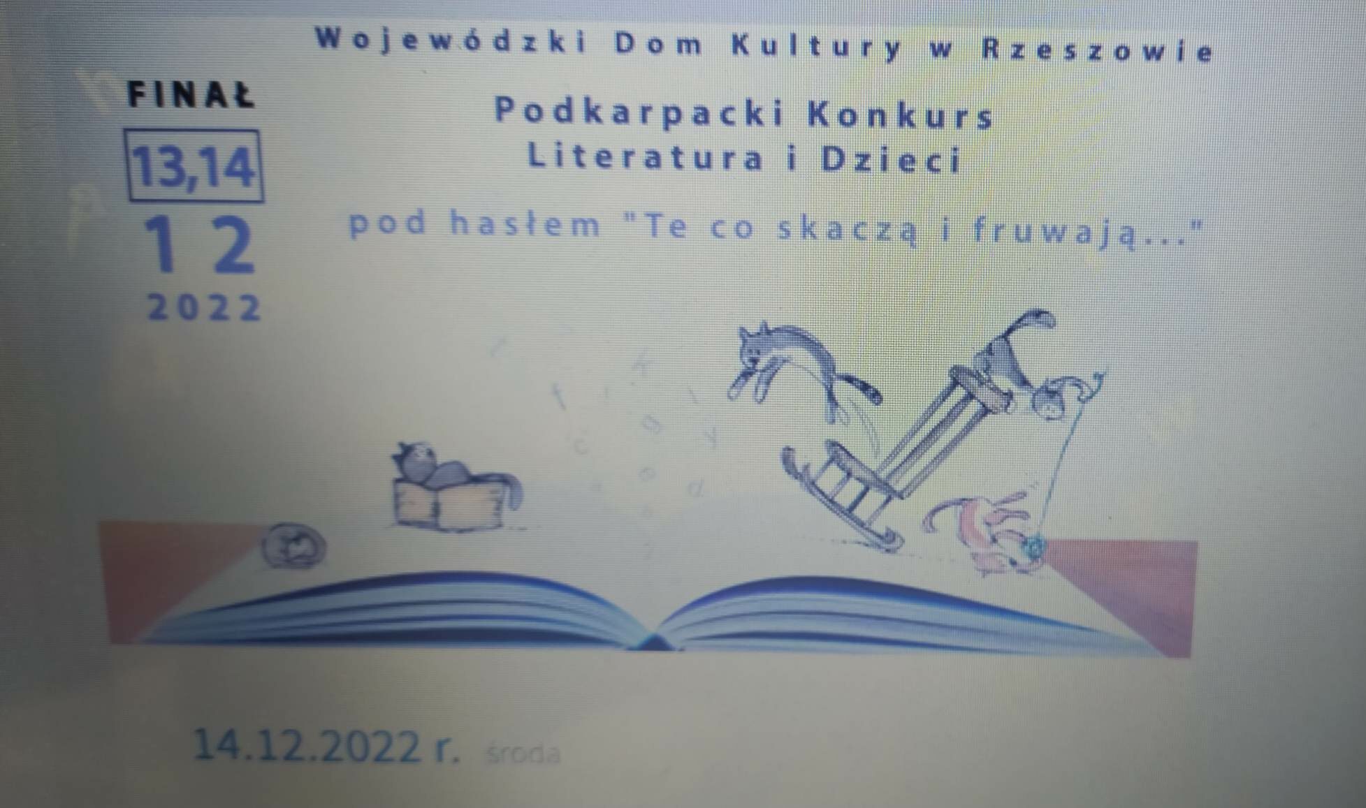 13 grudnia w Wojewódzkim Domu Kultury w Rzeszowie odbyły się eliminacje finałowe w I kategorii wiekowej Podkarpackiego Konkursu Literatura i Dzieci ,, Te, co skaczą i fruwają.’’