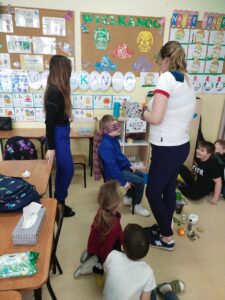 Zapoznały się z naturalnymi zapachami z otaczającego ich świata ( czekolady, mięty, mydła, cynamonu, perfum, kawy itp. ). Podczas rozmowy zastanawiały się czy zapachy im odpowiadają, z czym im się ko jarzą. Na koniec zajęć chętni uczniowie mieli możliwość zgadywać zapachy z zasłoniętymi oczami.