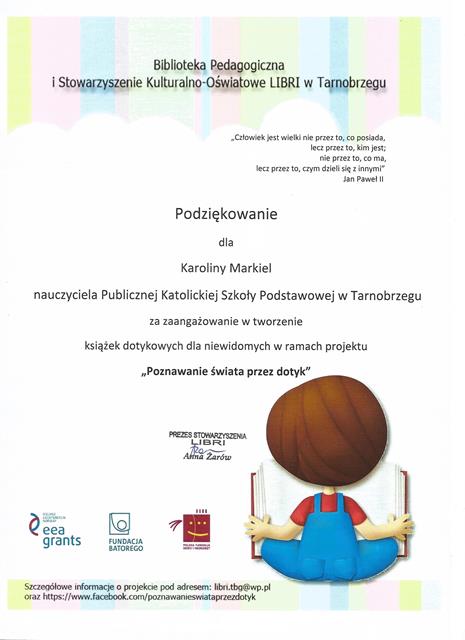 W XI Międzywojewódzkim Przeglądzie Twórczości Dzieci i Młodzieży „Zachować w pamięci” swoje prace plastyczne i literackie zaprezentowali uczniowie z 41 szkół z terenu województw: podkarpackiego, lubelskiego, łódzkiego, małopolskiego, świętokrzyskiego. Na konkurs napłynęło 320 prac plastycznych i 85 utworów poetyckich. Kompozycje plastyczne ocenił artysta plastyk Pan Józef Sroka, natomiast utwory literackie poeta Ks. dr Marian Balicki. Drugie miejscew konkursie plastycznym otrzymała Kinga Wamyj z kl. IV natomiast wyróżnienia otrzymali: Emilia Piotrowska z kl. II a, Mikołaj Majka z kl. III a i Daniel Panek z kl. IV. Gratulujemy talentu artystycznego i życzymy powodzenia w następnych konkursach.