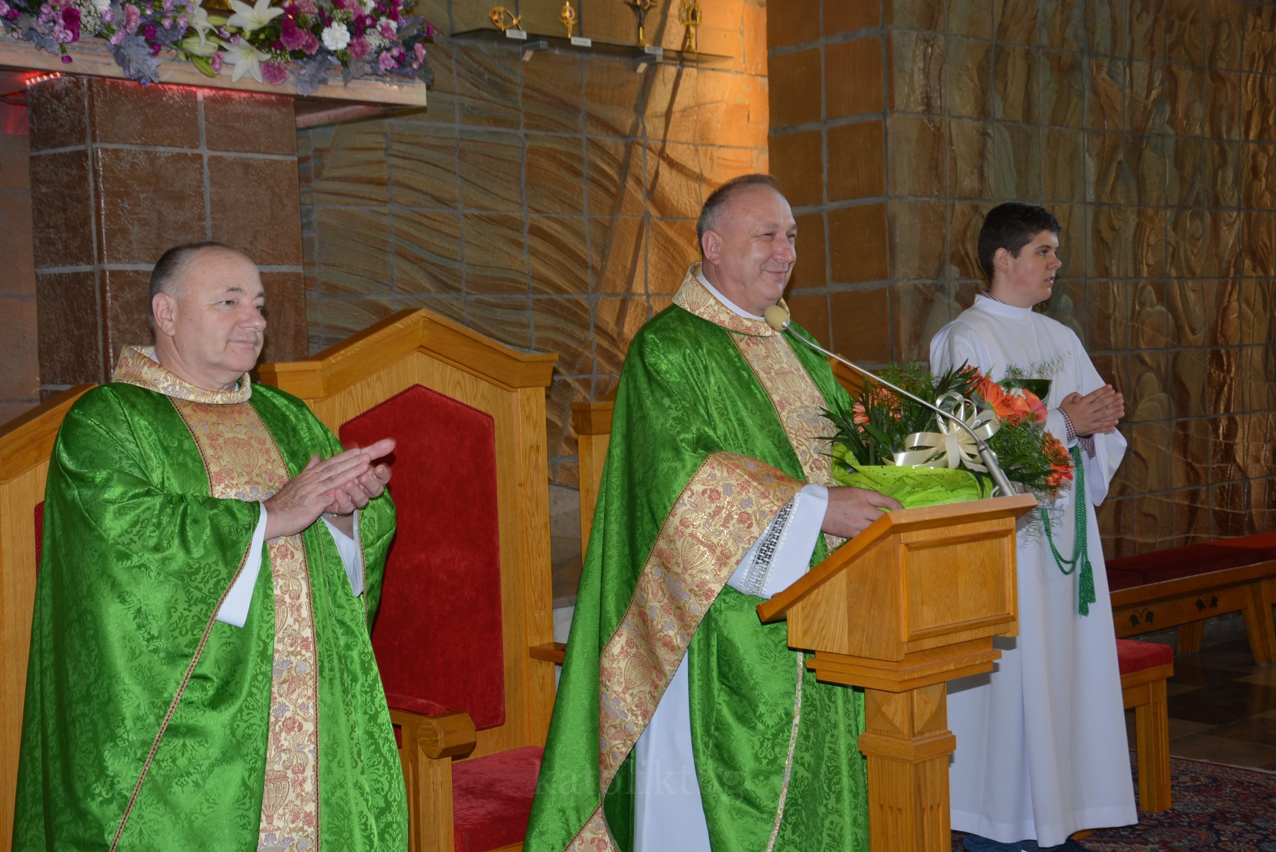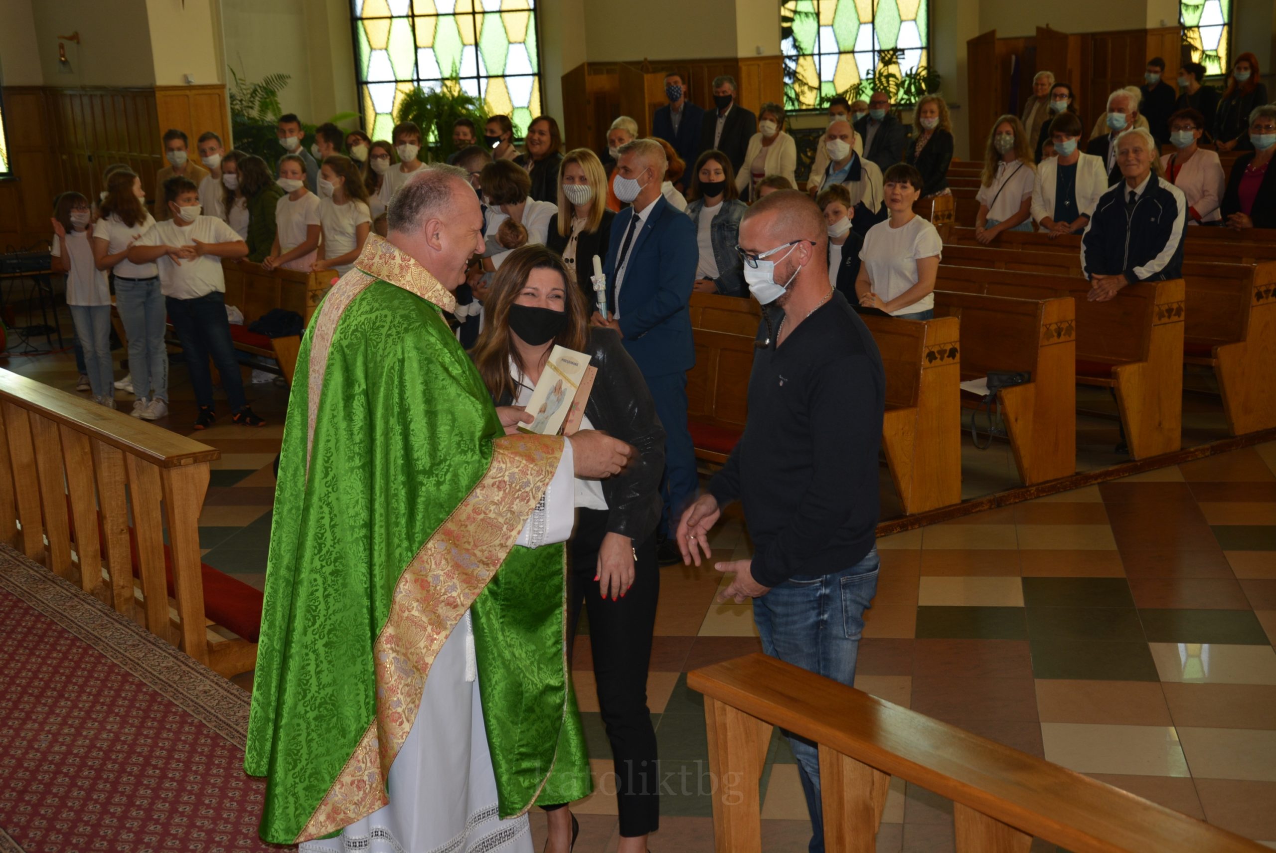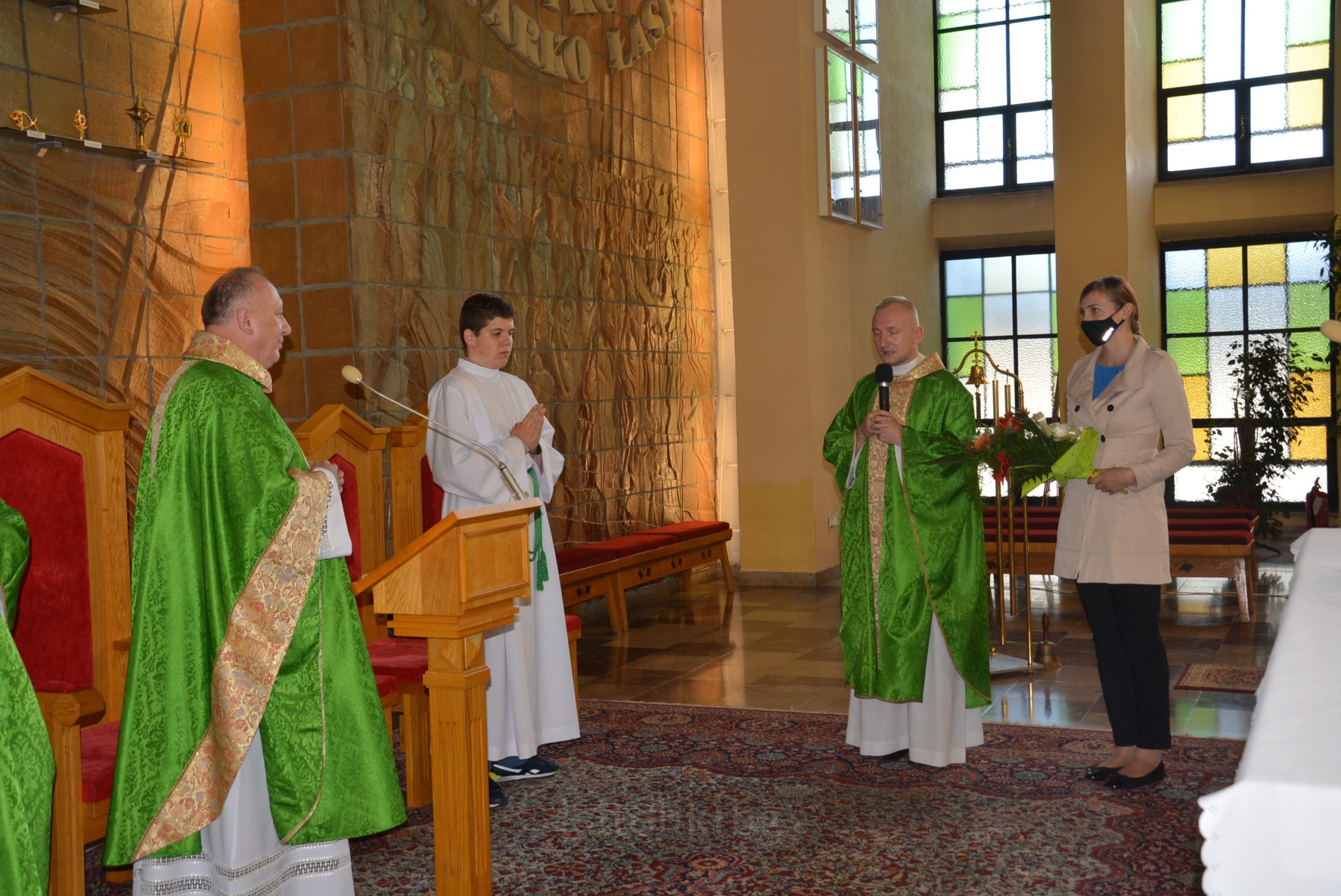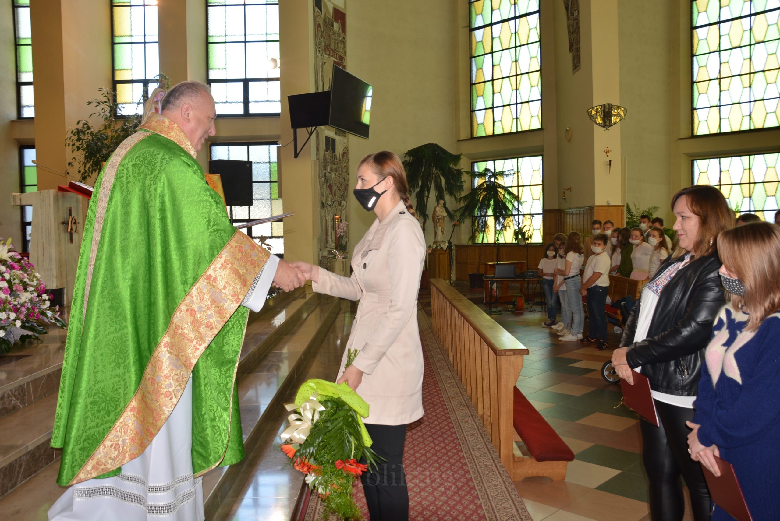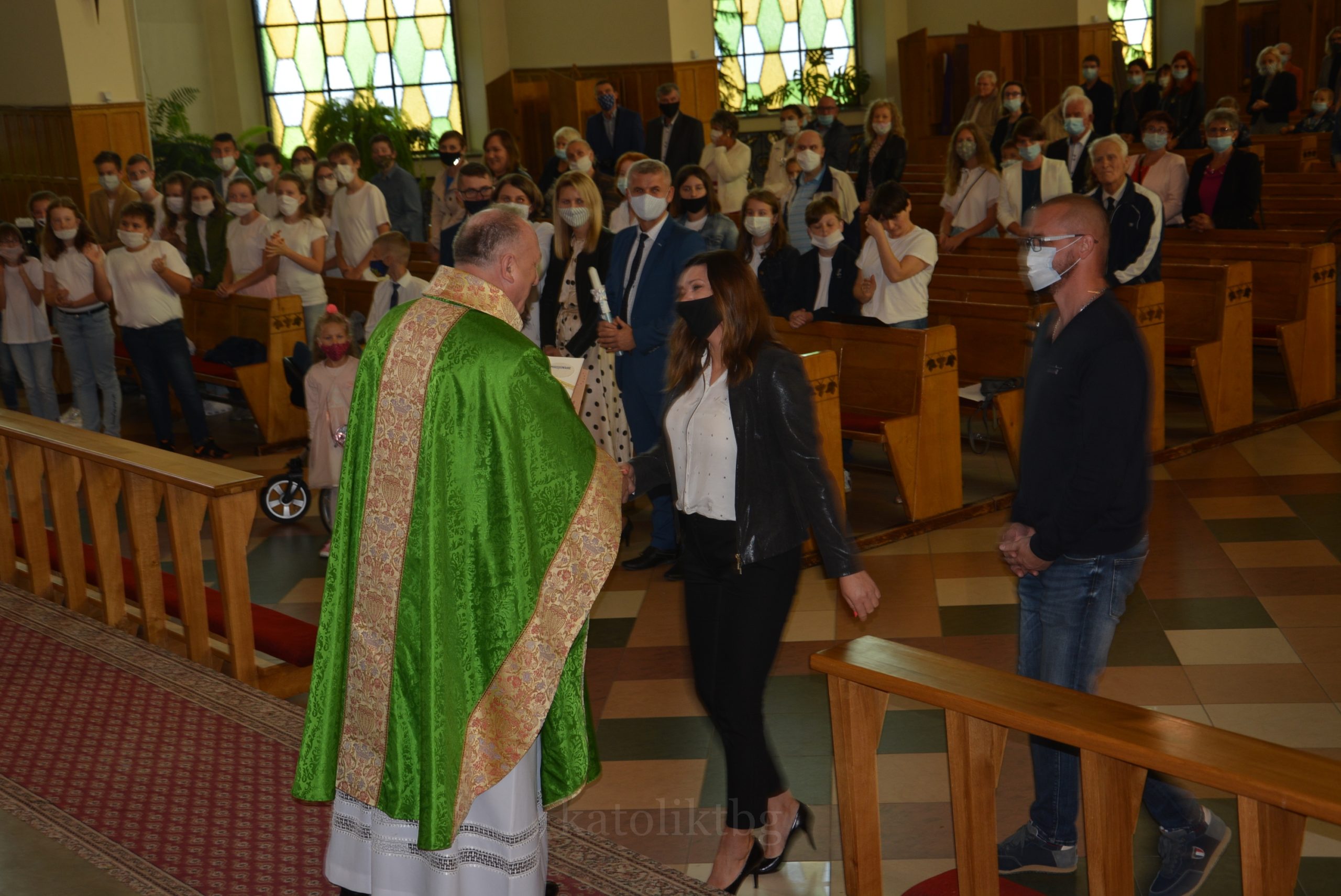Wszyscy zgromadzeni: ksiądz prałat, opiekun Szkół Katolickich w Tarnobrzegu oraz ich Dyrekcja, nauczyciele, uczniowie, rodzice, osoby zaprzyjaźnione mieli możliwość uczestniczyć w pięknej Mszy Świętej. Po niej nastąpiło uroczyste wręczenie Aktu Mianowania nauczycielom, którzy uzyskali ten stopień awansu zawodowego: p. Urszuli Łyko, p. Katarzynie Sałek, p. Barbarze Trzpis-Wiącek oraz księdzu Pawłowi Dobrowolskiemu. Następnie wręczono Podziękowania dla Rodziców szczególnie zaangażowanych w życie szkoły: Państwu Katarzynie i Grzegorzowi Krakowiakom, Państwu Elżbiecie i Wojciechowi Grodzkim, Państwu Małgorzacie i Krzysztofowi Lipińskim, Państwu Barbarze i Mariuszowi Żyłom oraz Państwu Alicji Wesołowskiej – Warzybok oraz Wojciechowi Warzybokowi.