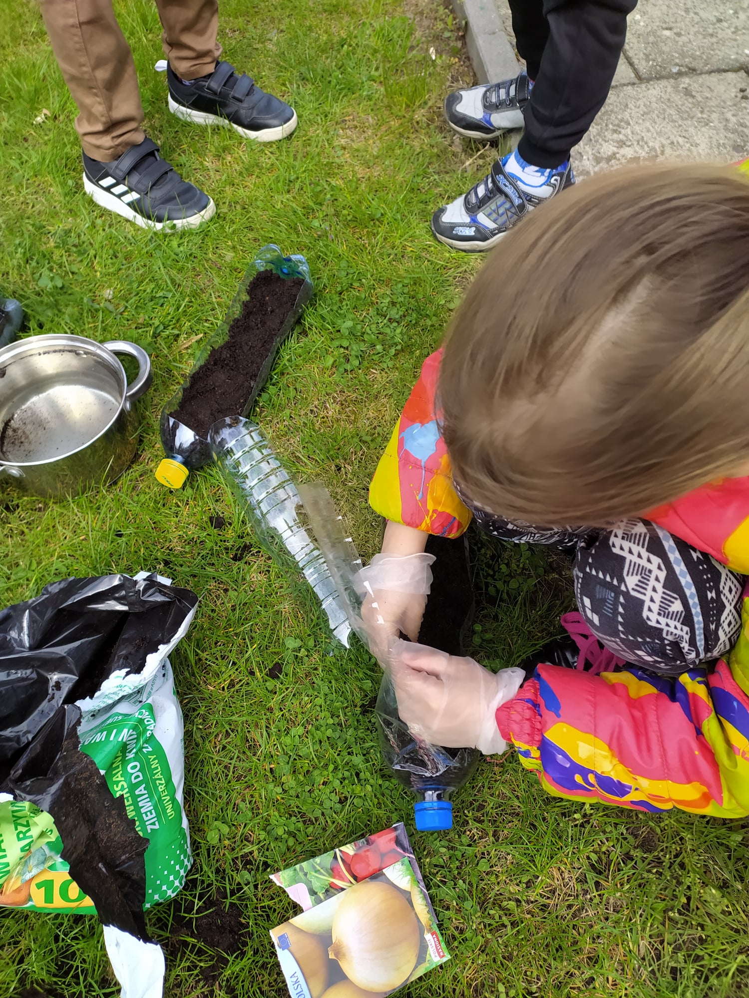 Wraz z wiosną ruszyły pierwsze prace ogrodowe. Prace wiosenne wykonywali także nasi najmłodsi uczniowie! Dzieci obserwowały robótki w przydomowych ogródkach, następnie założyły własny ogródek klasowy.