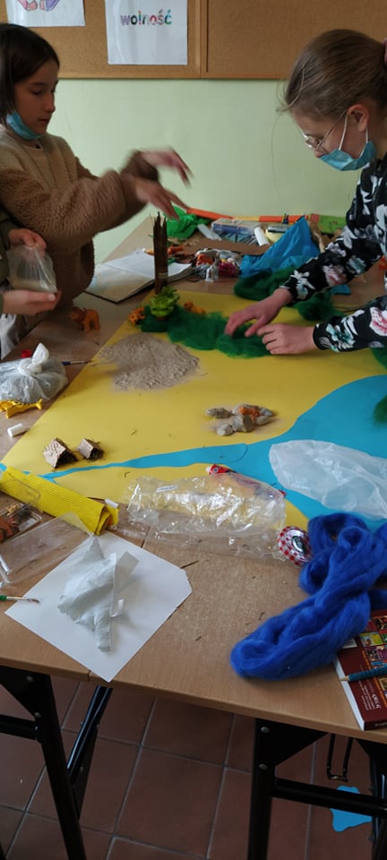Tworzenie makiety lądu i prezentacja wykonanego zadania uczniom klas 1-3 z naszej szkoły, stały się okazją wspólnego wędrowania po powieściowych ścieżkach.