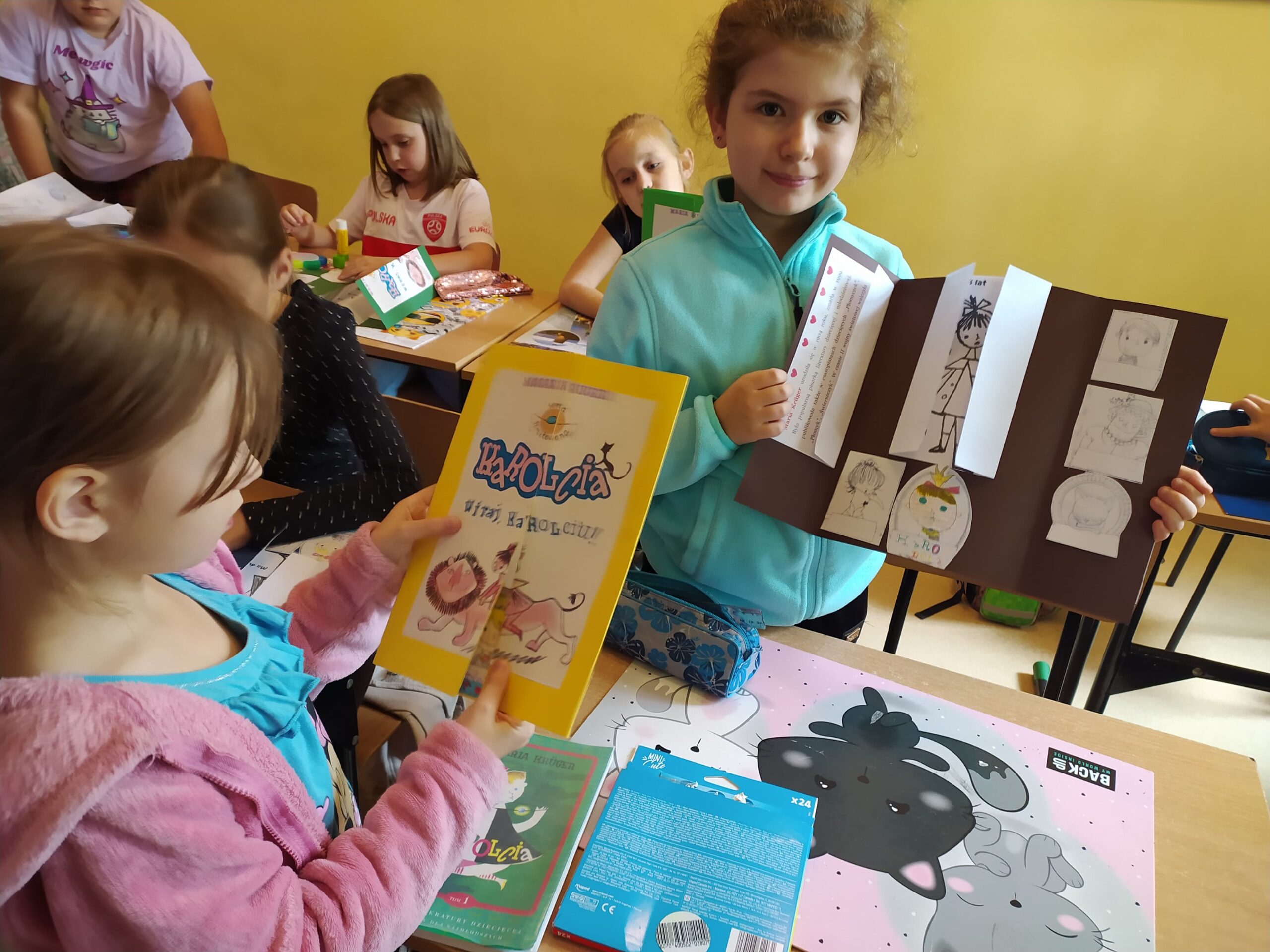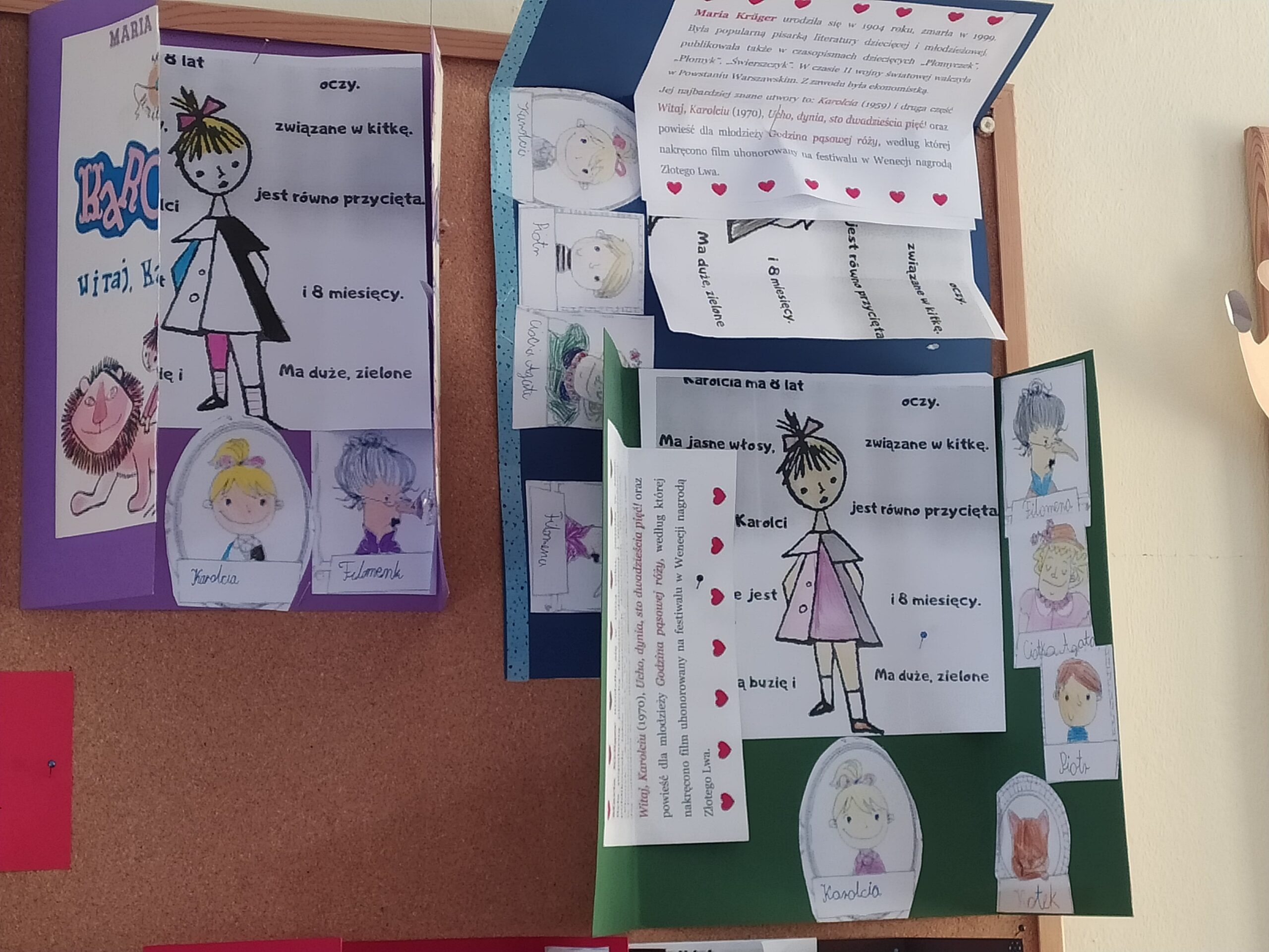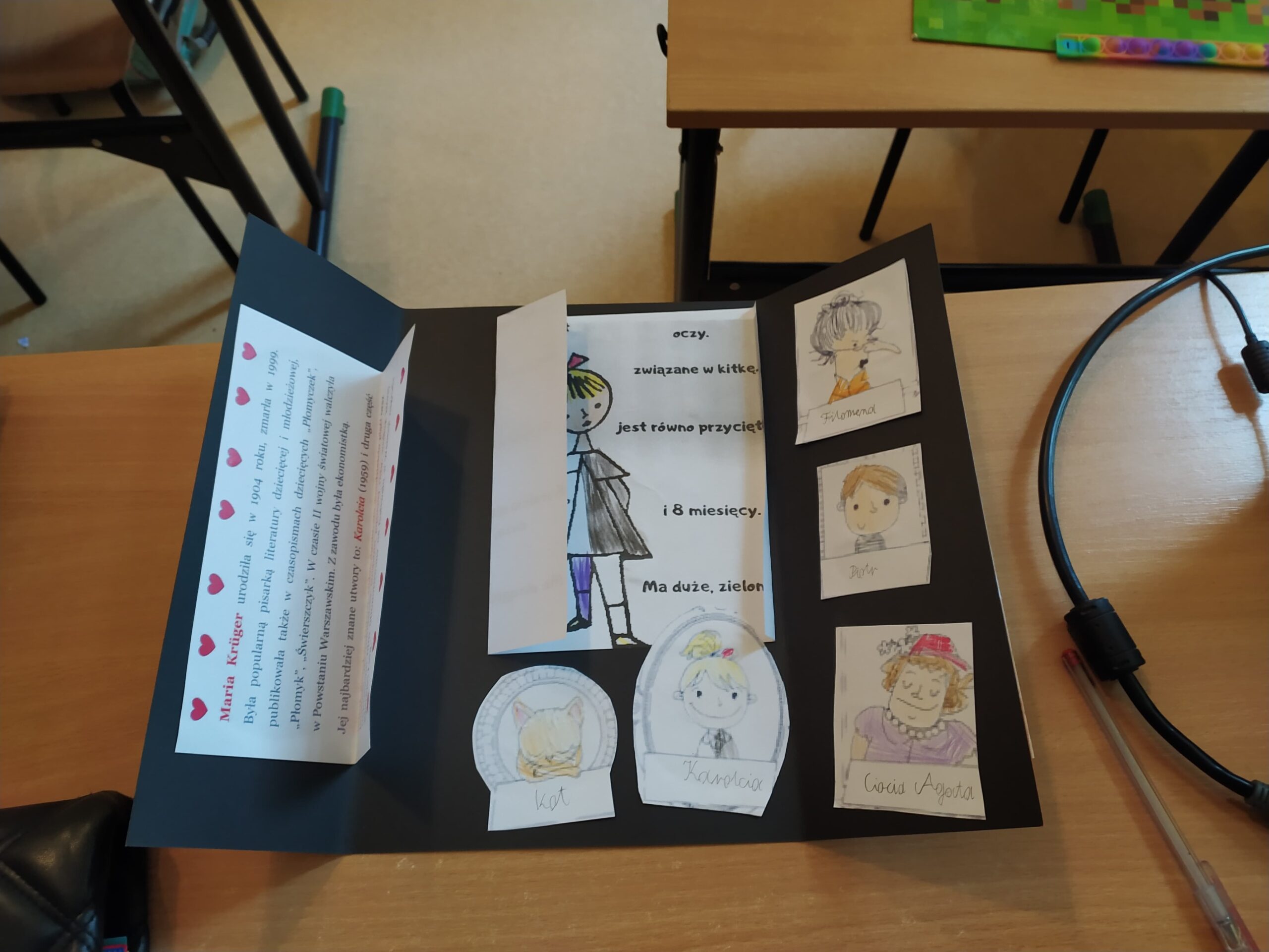 Zainspirowani uczniowie klasy 3 wykonali pracę twórczą, polegającą na stworzeniu Lapbooka. Dzieci zamieściły w nim najważniejsze, a zarazem najciekawsze informacje: notatkę o autorce, przedstawienie bohaterów, problematykę utworu, quizy związane z treścią książki oraz magiczny koralik.