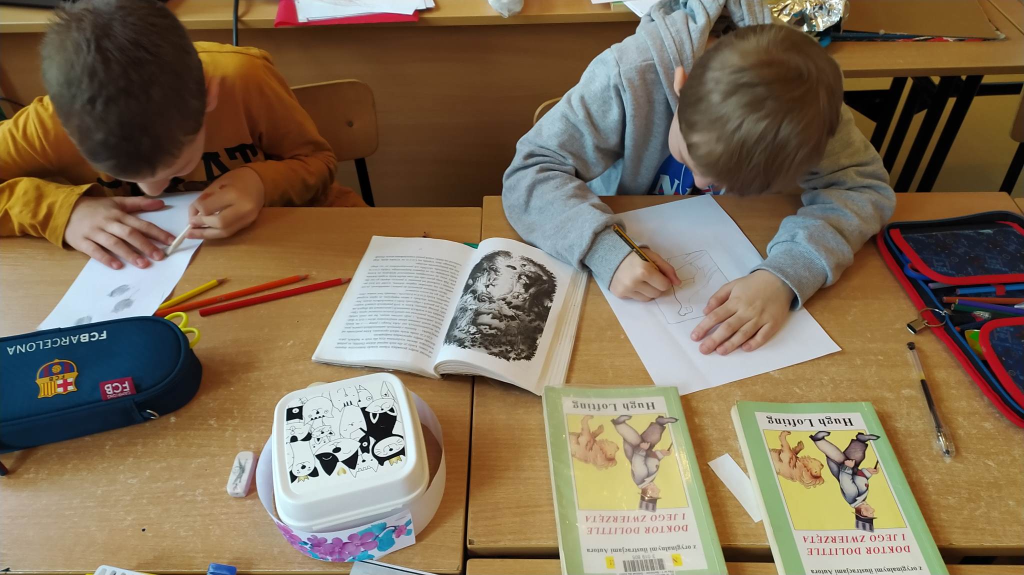 W małym, angielskim miasteczku Puddleby, mieszkał ubogi doktor, który zajmował się co prawda leczeniem ludzi, ale kochał zwierzęta i zawsze miał ich pełno w domu… Tak zaczyna się opowieść, a zarazem lektura pt.,, Doktor Dolittle ‘’, którą omawiali uczniowie klasy 3. Razem wędrowaliśmy do Afryki, po drodze doświadczając licznych przygód. Uczniowie twórczo podeszli do zadania, a marzenie mieli wspólne : poznać język zwierząt!