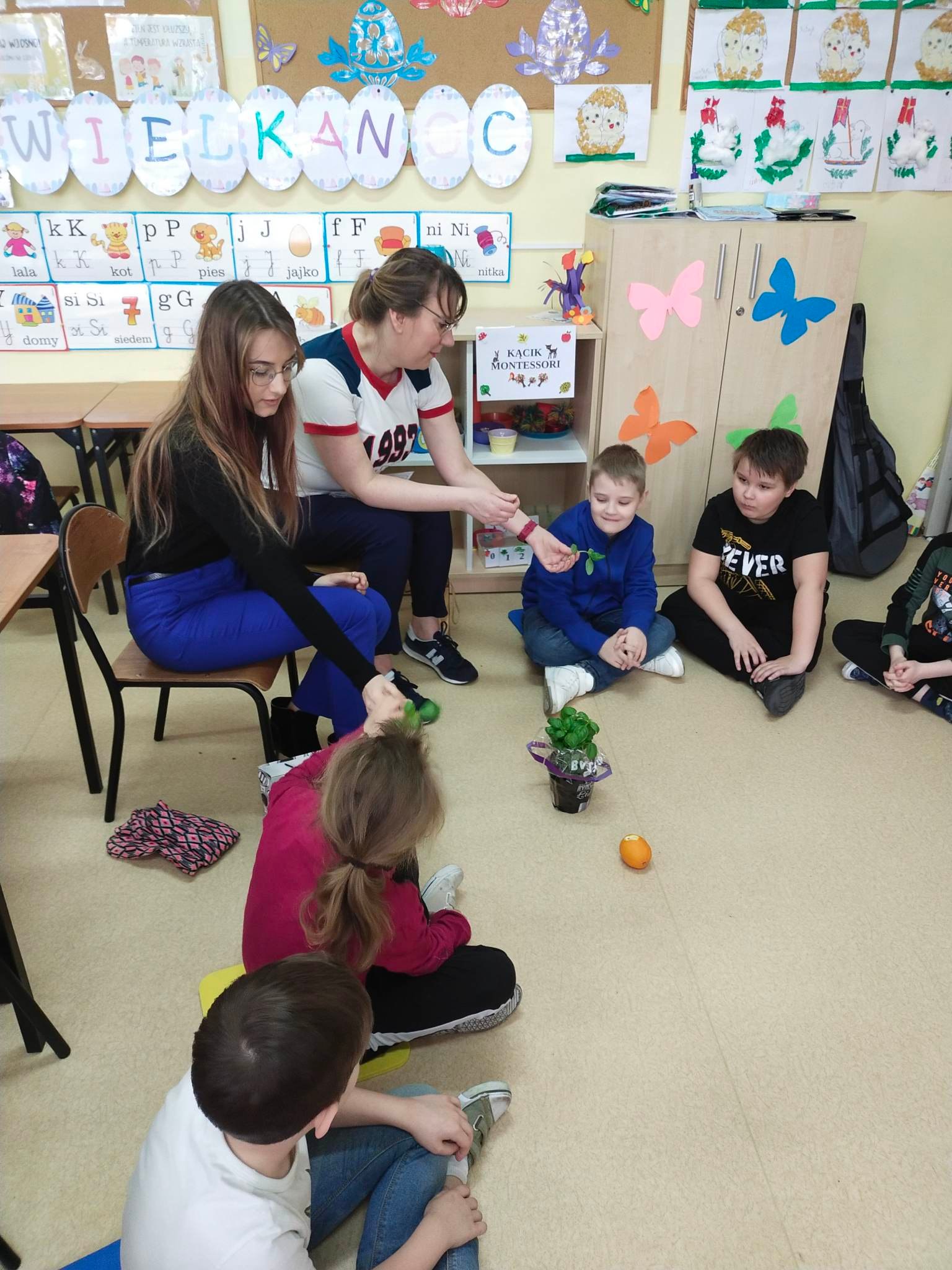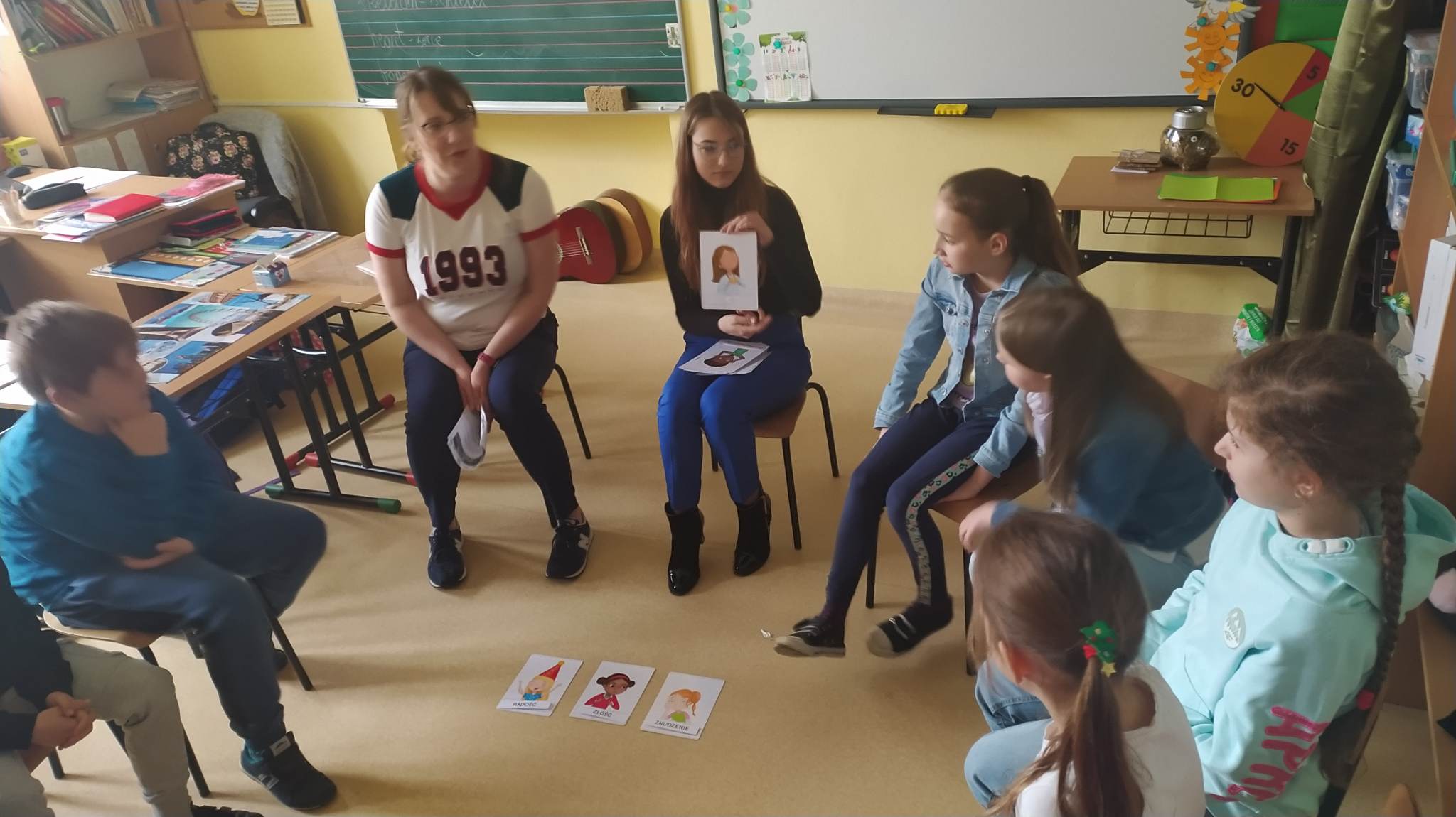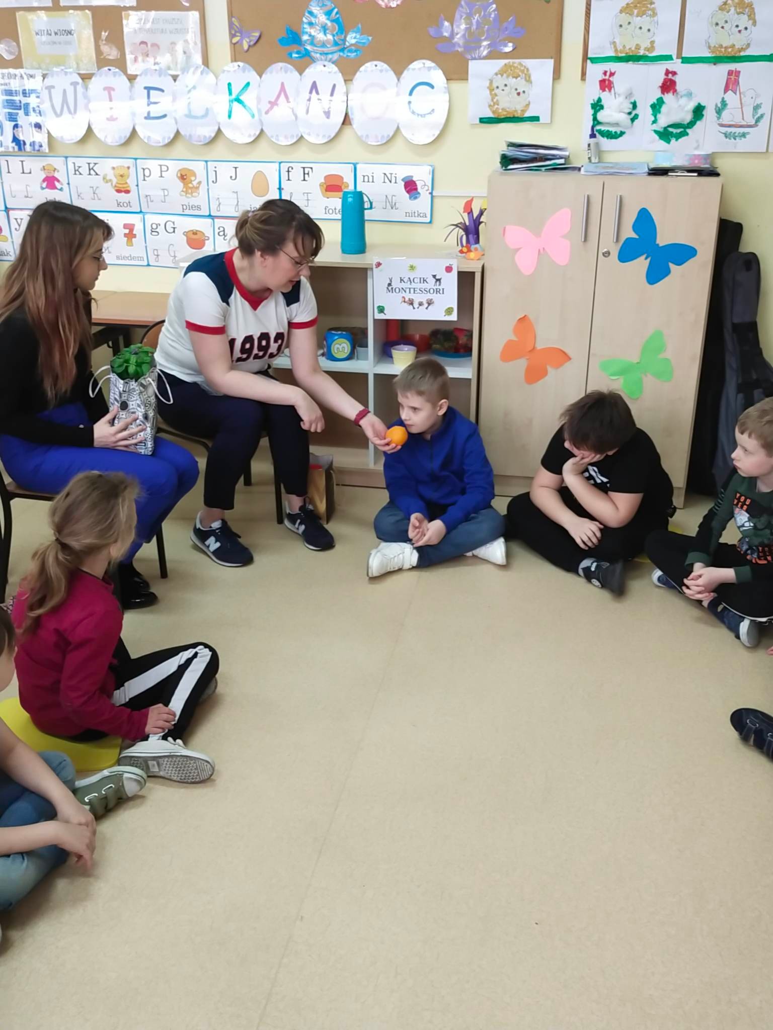 Zapoznały się z naturalnymi zapachami z otaczającego ich świata ( czekolady, mięty, mydła, cynamonu, perfum, kawy itp. ). Podczas rozmowy zastanawiały się czy zapachy im odpowiadają, z czym im się ko jarzą. Na koniec zajęć chętni uczniowie mieli możliwość zgadywać zapachy z zasłoniętymi oczami.