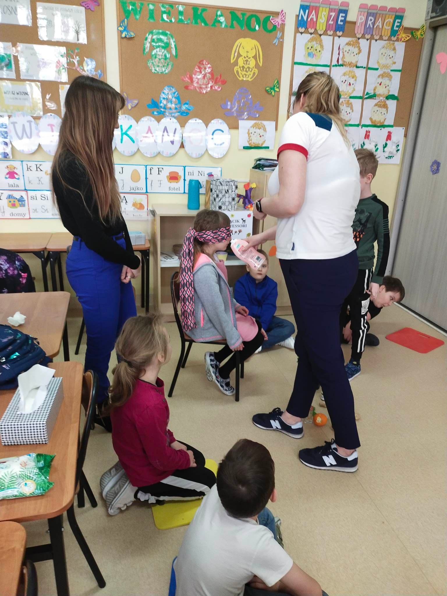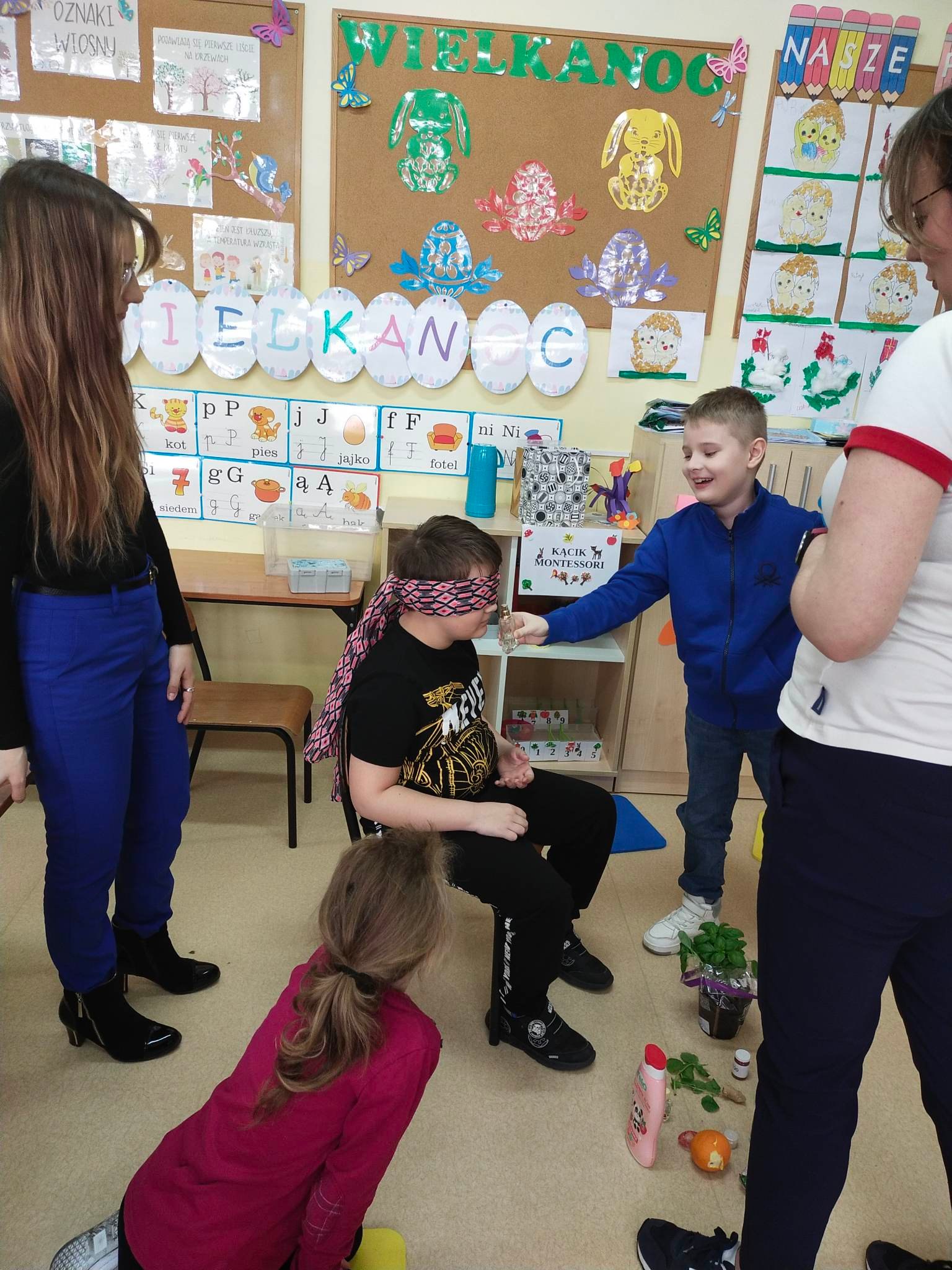 Podczas zajęć „ Nasze zmysły ” w klasie I dzieci dowiedziały się jak odkrywać otaczający świat przez świadome wykorzystywanie zmysłów: wzroku, słuchu, dotyku, smaku, a przede wszystkim węchu.