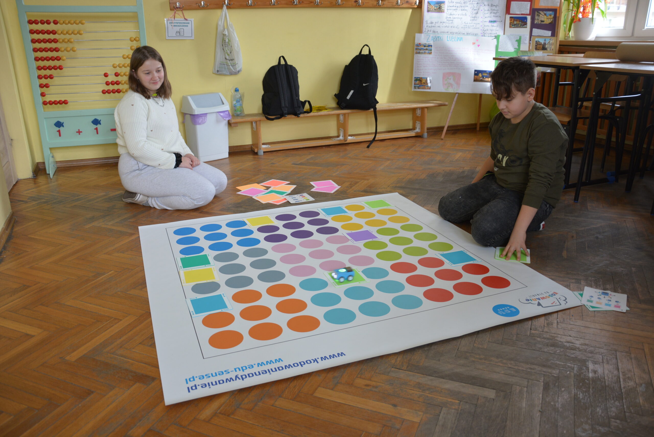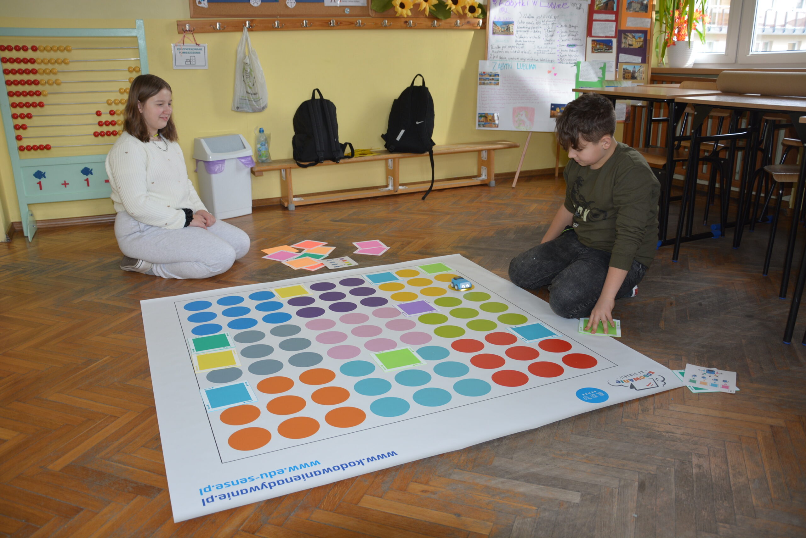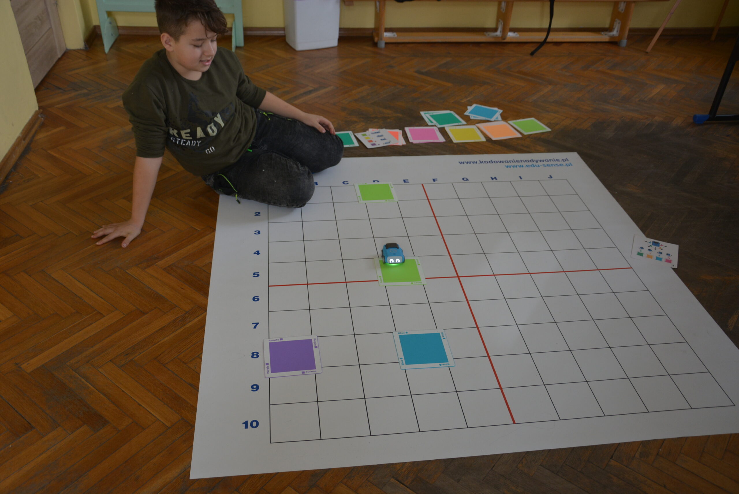 Podczas lekcji uczniowie bez wykorzystywania tabletów, bazując na komendach ukrytych pod postacią barwnych kwadratów uczyli się logicznego, algorytmicznego myślenia, rozwijali zadaniowe podejście do stawianych problemów oraz ćwiczyli kreatywność i umiejętność współpracy.