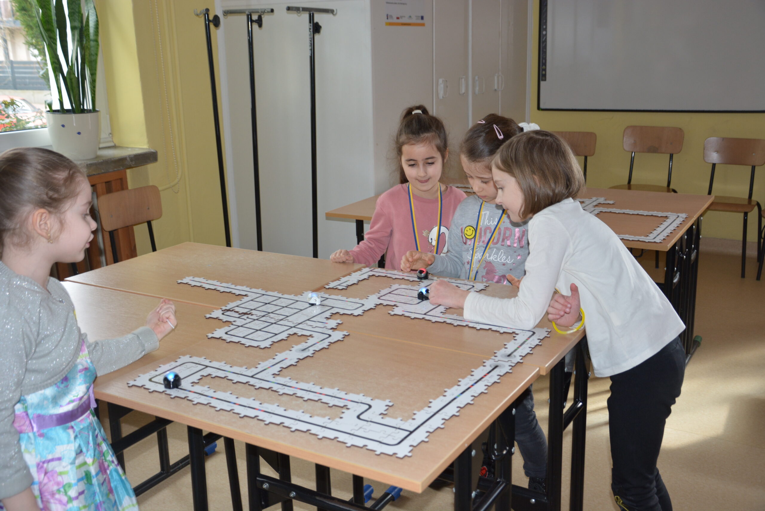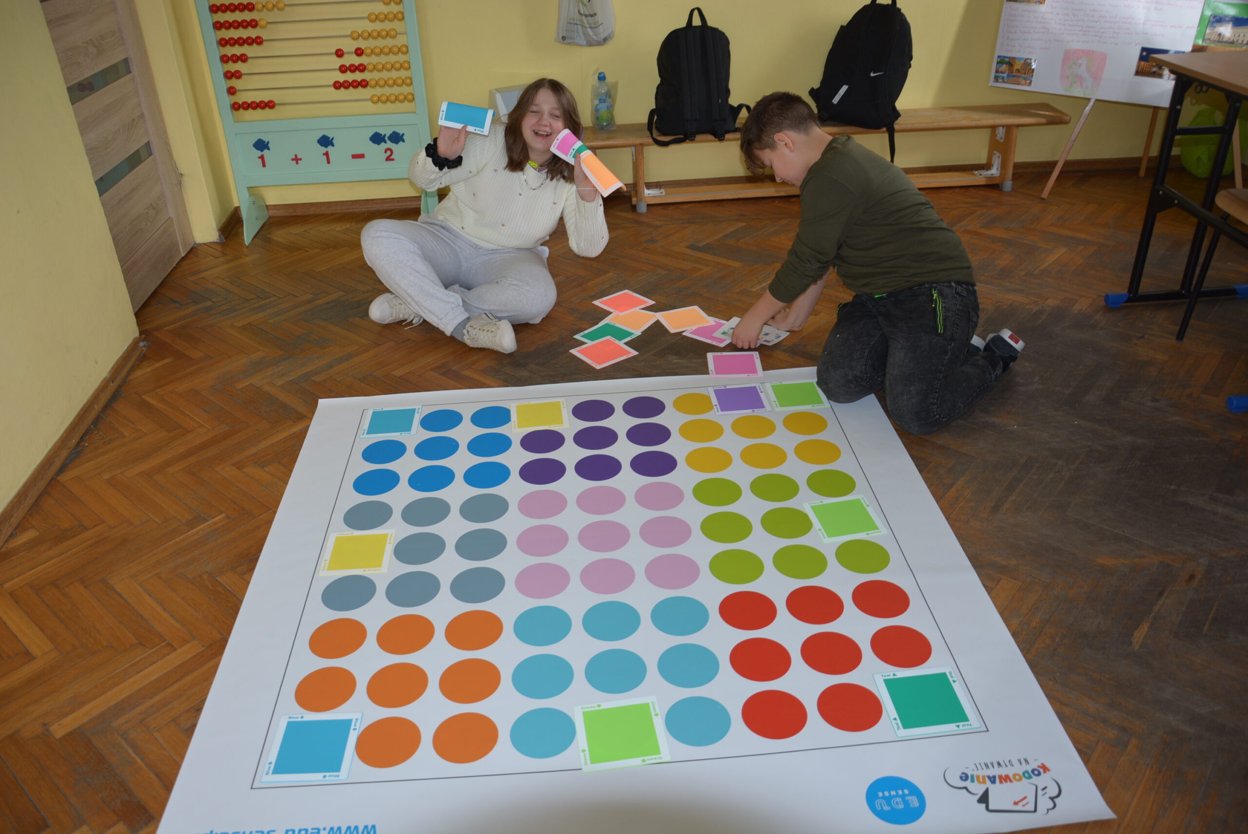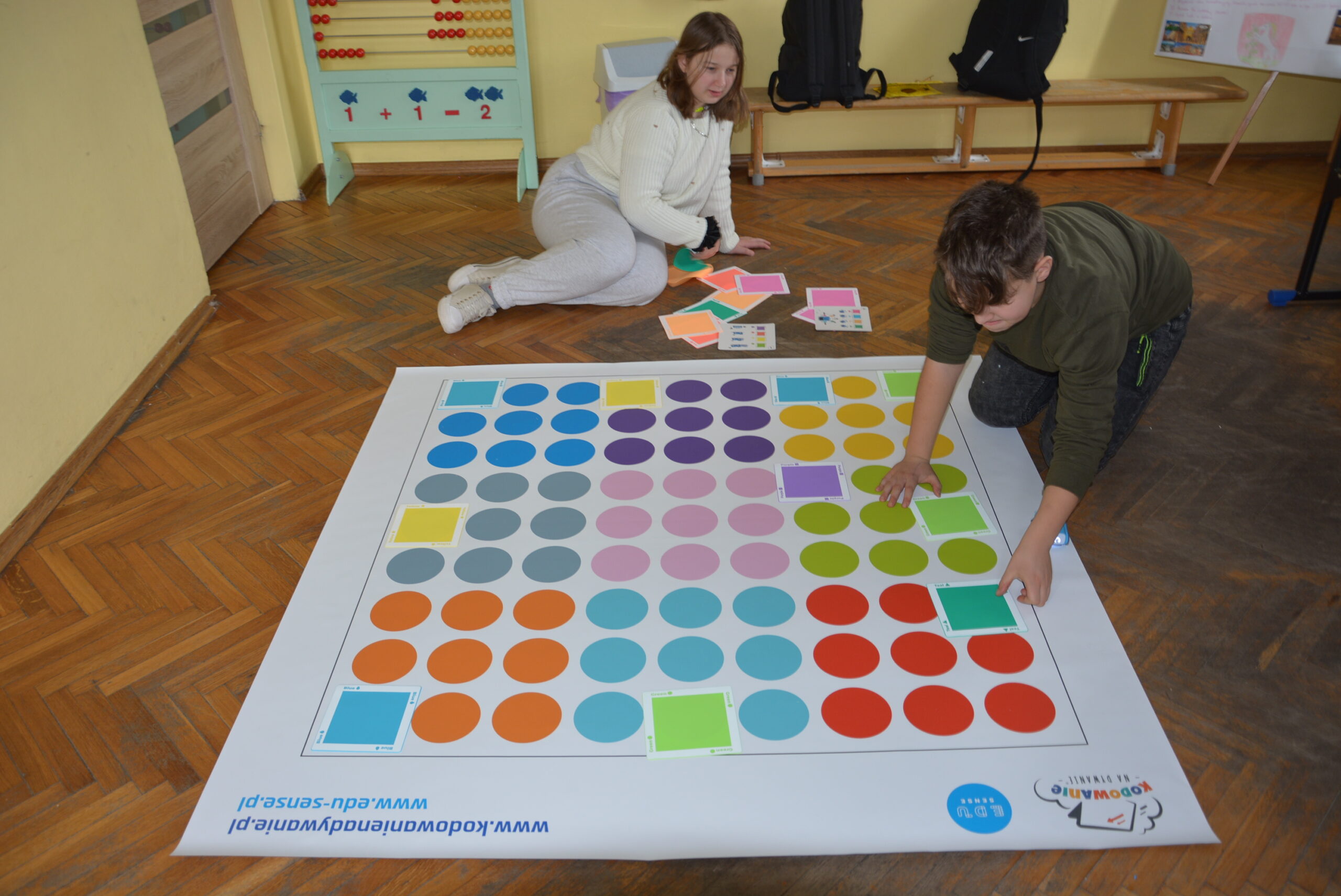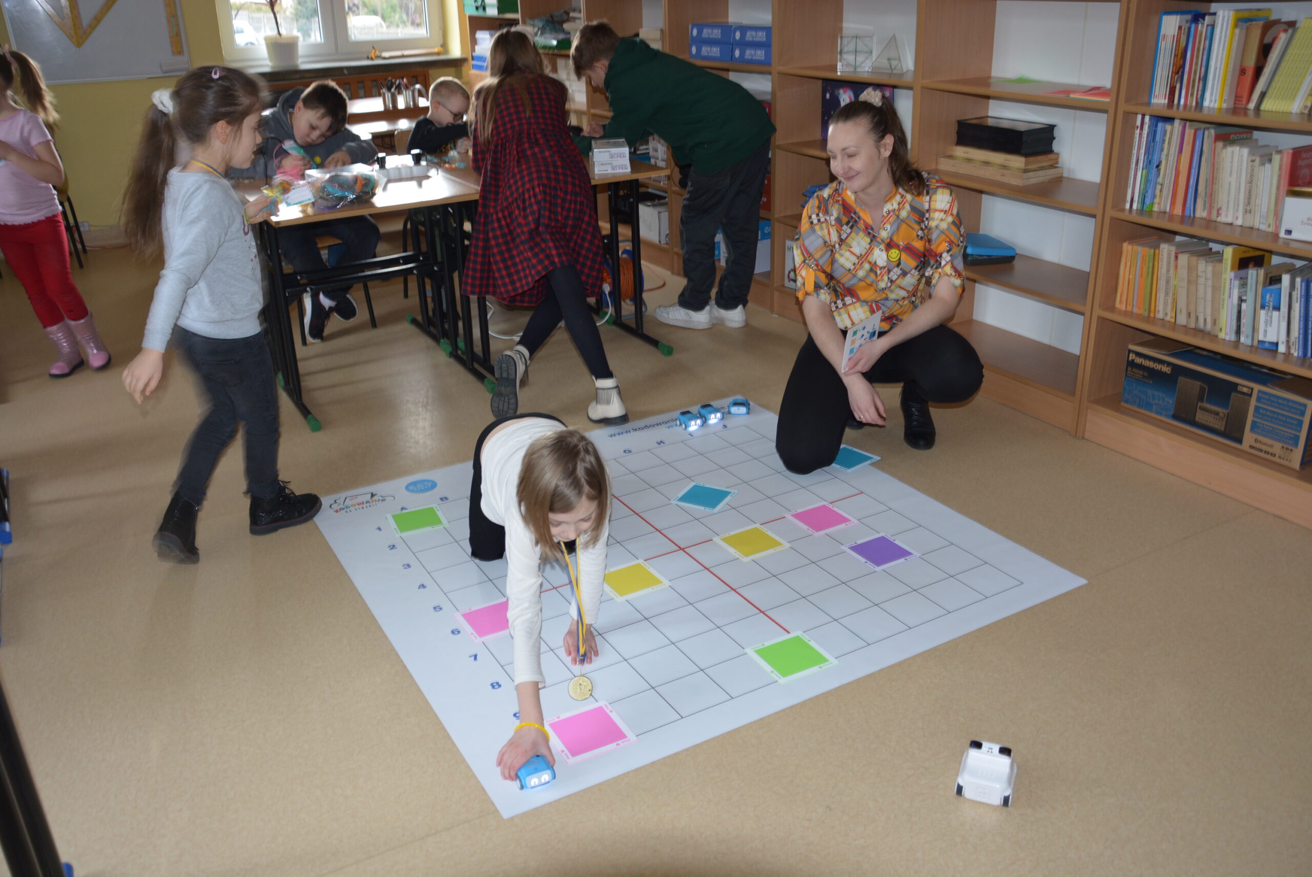Podczas lekcji uczniowie bez wykorzystywania tabletów, bazując na komendach ukrytych pod postacią barwnych kwadratów uczyli się logicznego, algorytmicznego myślenia, rozwijali zadaniowe podejście do stawianych problemów oraz ćwiczyli kreatywność i umiejętność współpracy.