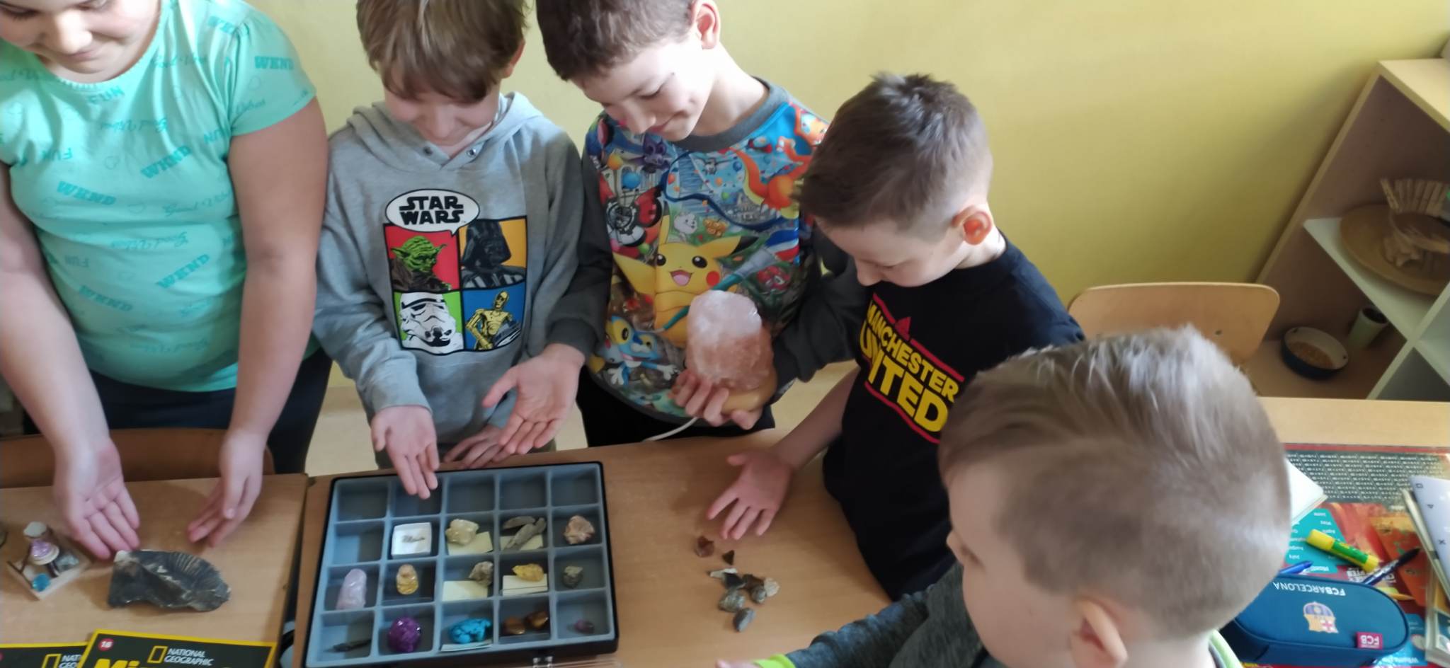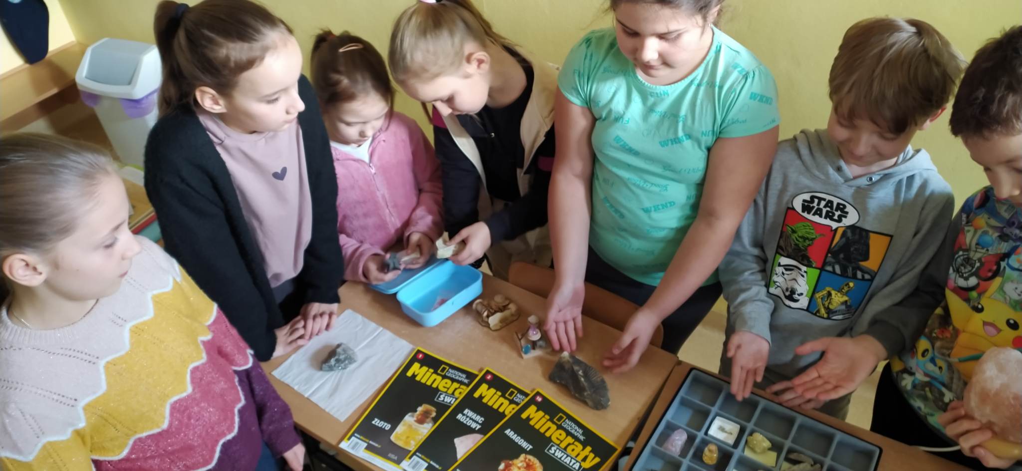 ,,Czy Diament to surowiec naturalny…? – te i inne pytania zadawali uczniowie klasy 3 w czasie zajęć przyrodniczych , kiedy oglądali surowce Ziemi. Rozpoznawali granity, wapienie, siarkę, sól, węgiel kamienny, miedź oraz inne drogocenne bogactwa naszej planety. Także te, z których powstały pamiątki przywiezione z różnych miejsc Polski i świata.