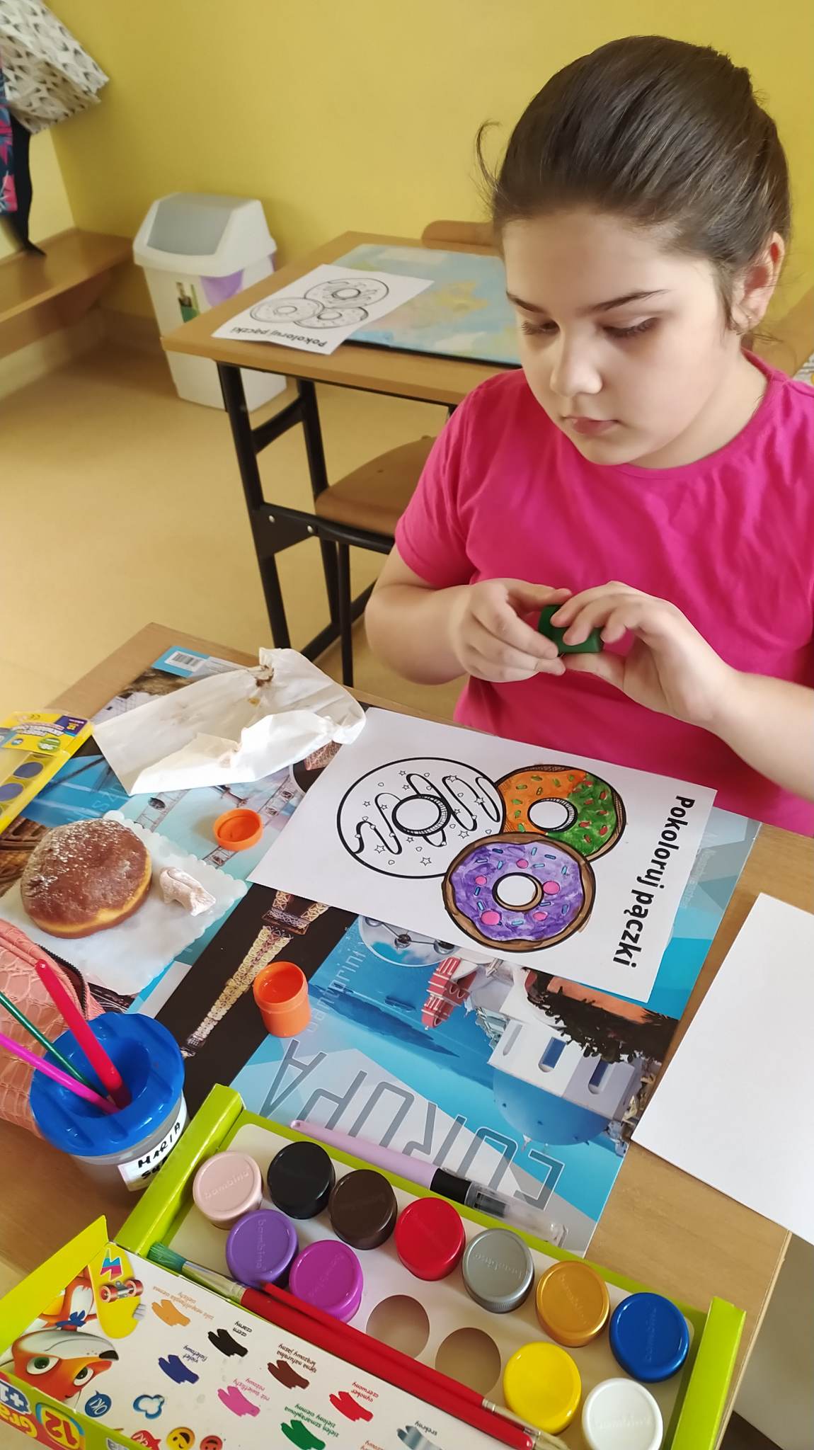 W ramach kolejnego realizowanego zadania uczniowie ze szkolnej świetlicy poznali tradycyjne włoskie potrawy takie, jak pizza, spaghetti, panna cotta czy tiramisu oraz sposoby ich przyrządzania. Zadanie to połączono z obchodzonym w tym samym tygodniu Dniem Pizzy. Oprócz tego, że dzieci mogły zjeść przepyszną pizzę to jeszcze mieli możliwość samemu przyrządzić włoskie danie z masy solnej. W ten sposób poznali sposób przyrządzania pizzy, ale także rozwijali sprawność manualną, gdyż masa solna jest znakomitym budulcem, który dostarcza wielkiej frajdy oraz wpływa na rozwój intelektualno-ruchowy. ![]()
