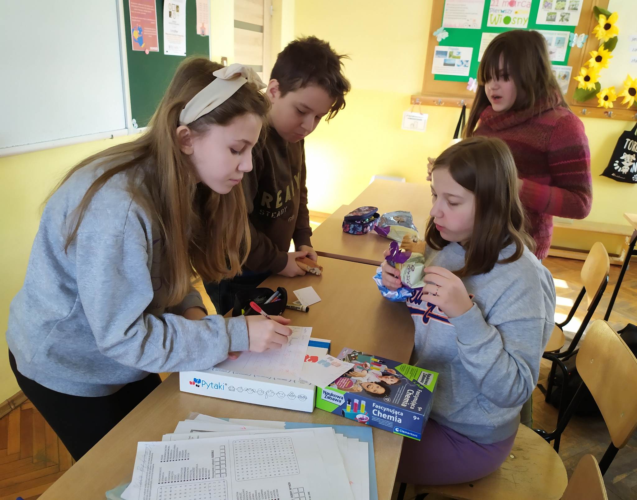 w różnego rodzaju grach i łamigłówkach. Praca uczniów została nagrodzona bardzo dobrymi ocenami oraz słodkim poczęstunkiem.
