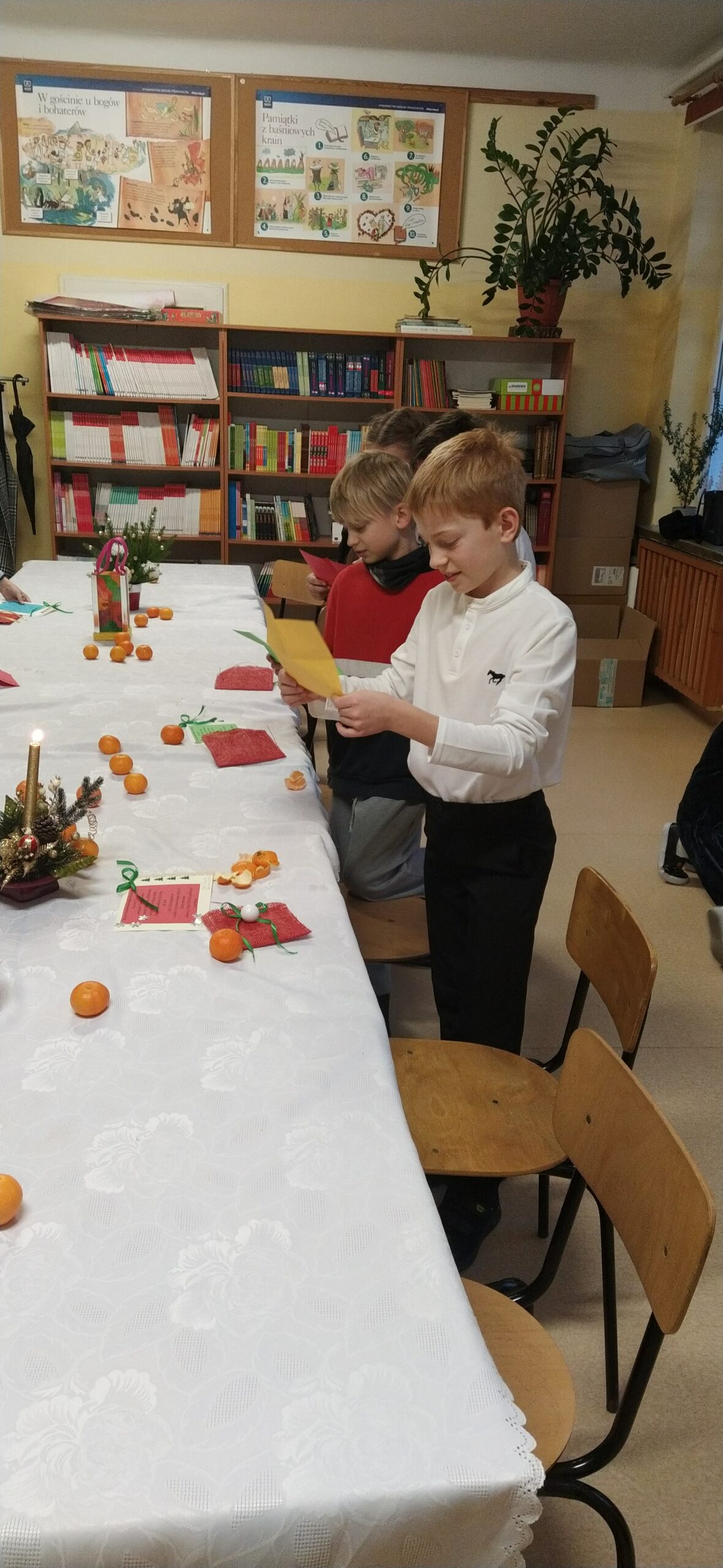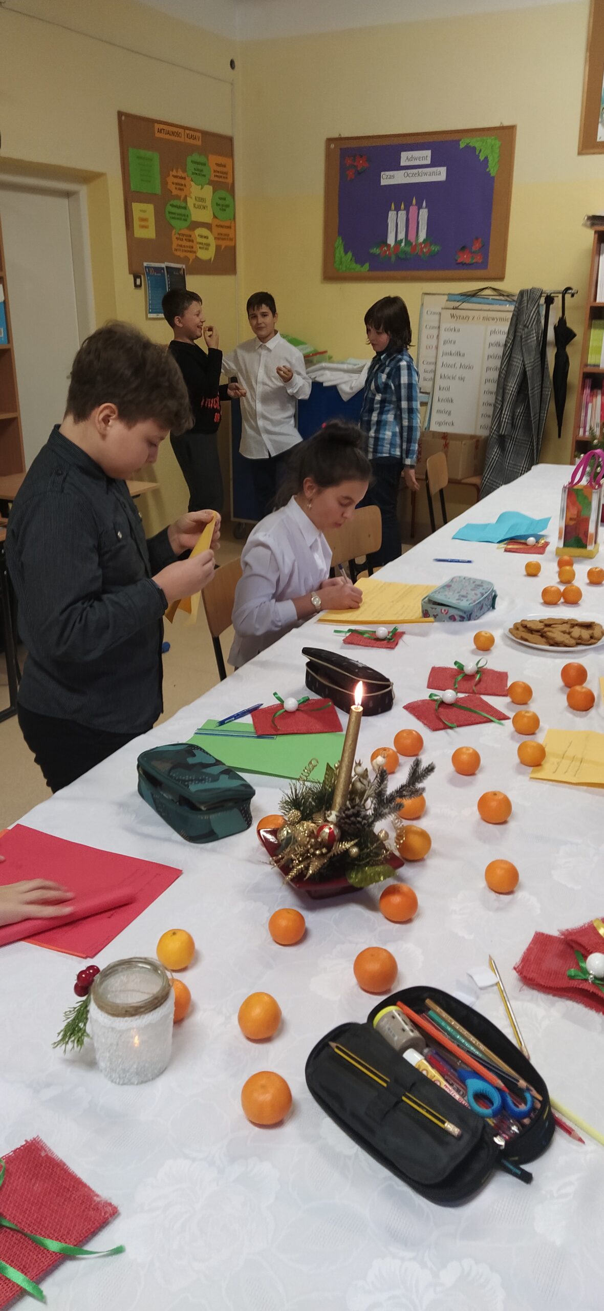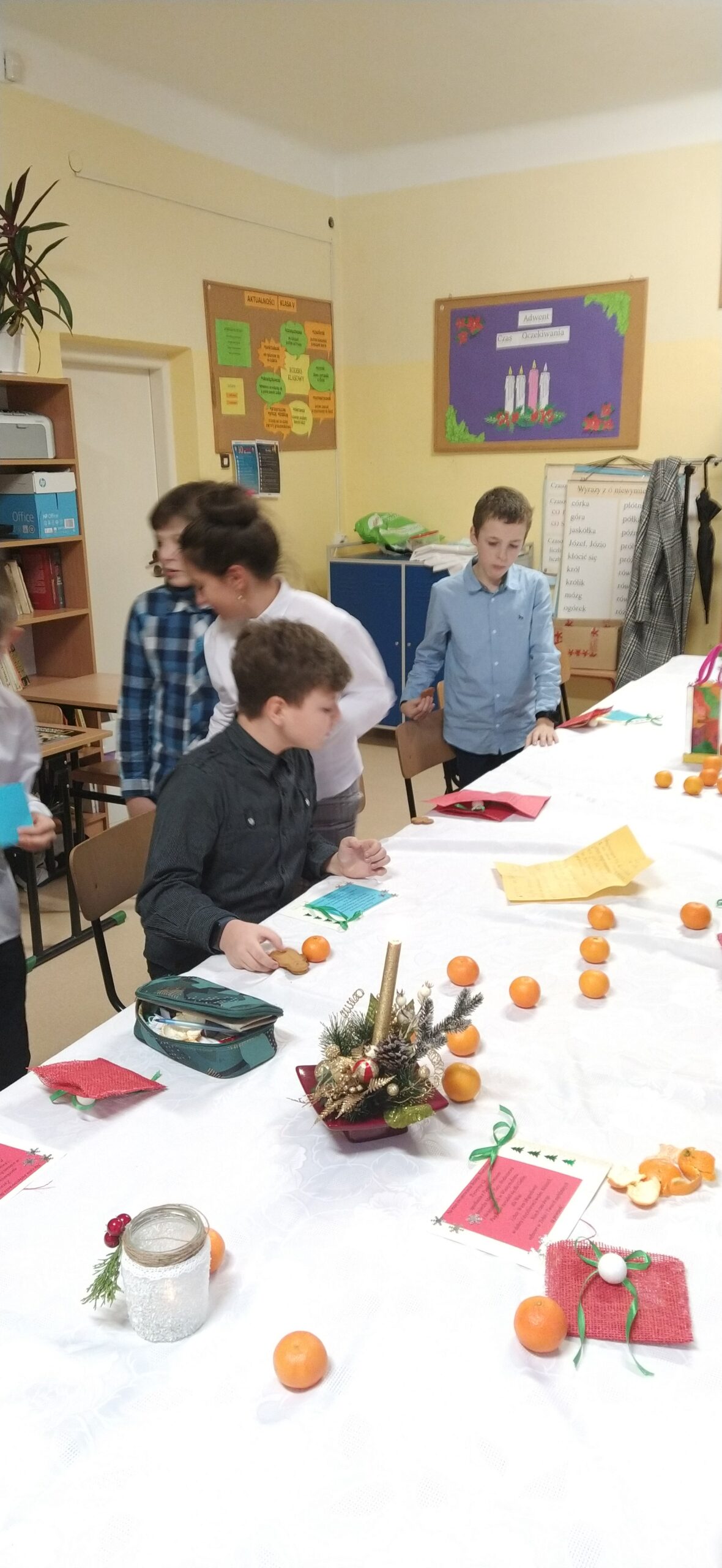 Wigilijny wieczór jest dla wielu najbardziej wzruszającym i uroczystym momentem w roku. To czas wzajemnego zbliżania, darowania urazów, zadumy i refleksji. Tradycją w naszej szkole są klasowe spotkania opłatkowe. W tym roku takie spotkanie odbyło się w klasie VI. Spotkanie przebiegło w miłej atmosferze, podczas której nie zabrakło śpiewu kolęd i wspólnej modlitwy. Uczennice w klasie napisały życzenia Bożonarodzeniowe dla swoich kolegów i koleżanek z klasy.