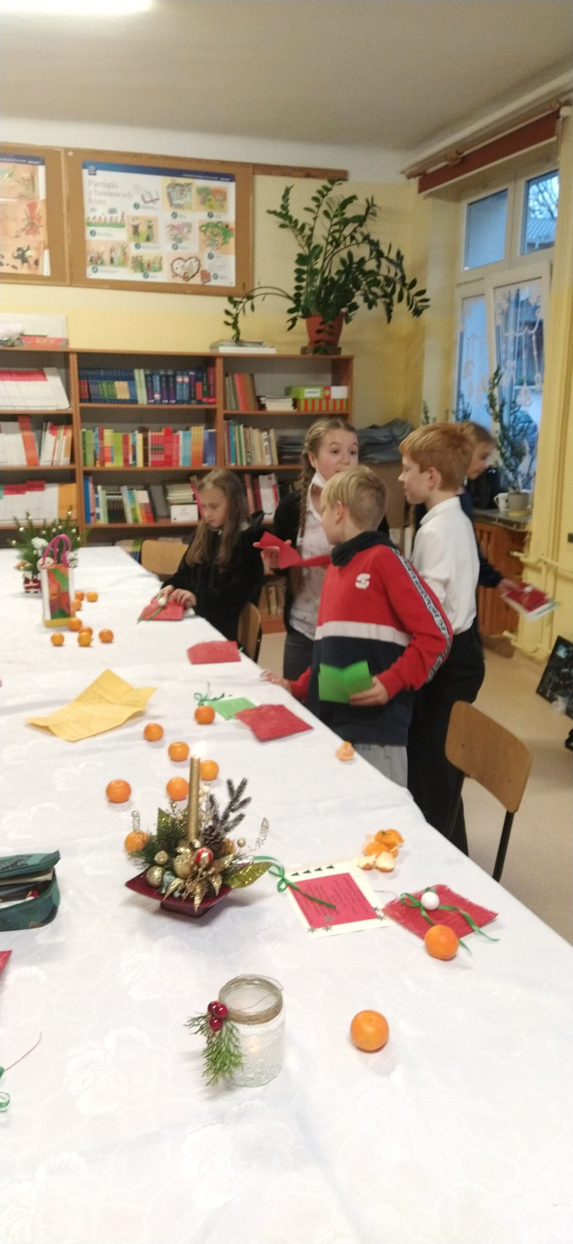 6 grudnia Samorząd uczniowski wraz z uczniami klasy 6 i 7 zorganizował Mikołajki. Uczniowie mogli skorzystać na przerwach z różnych gier planszowych i łamigłówek, a także dzięki Pani Dyrektor, otrzymali słodki upominek.