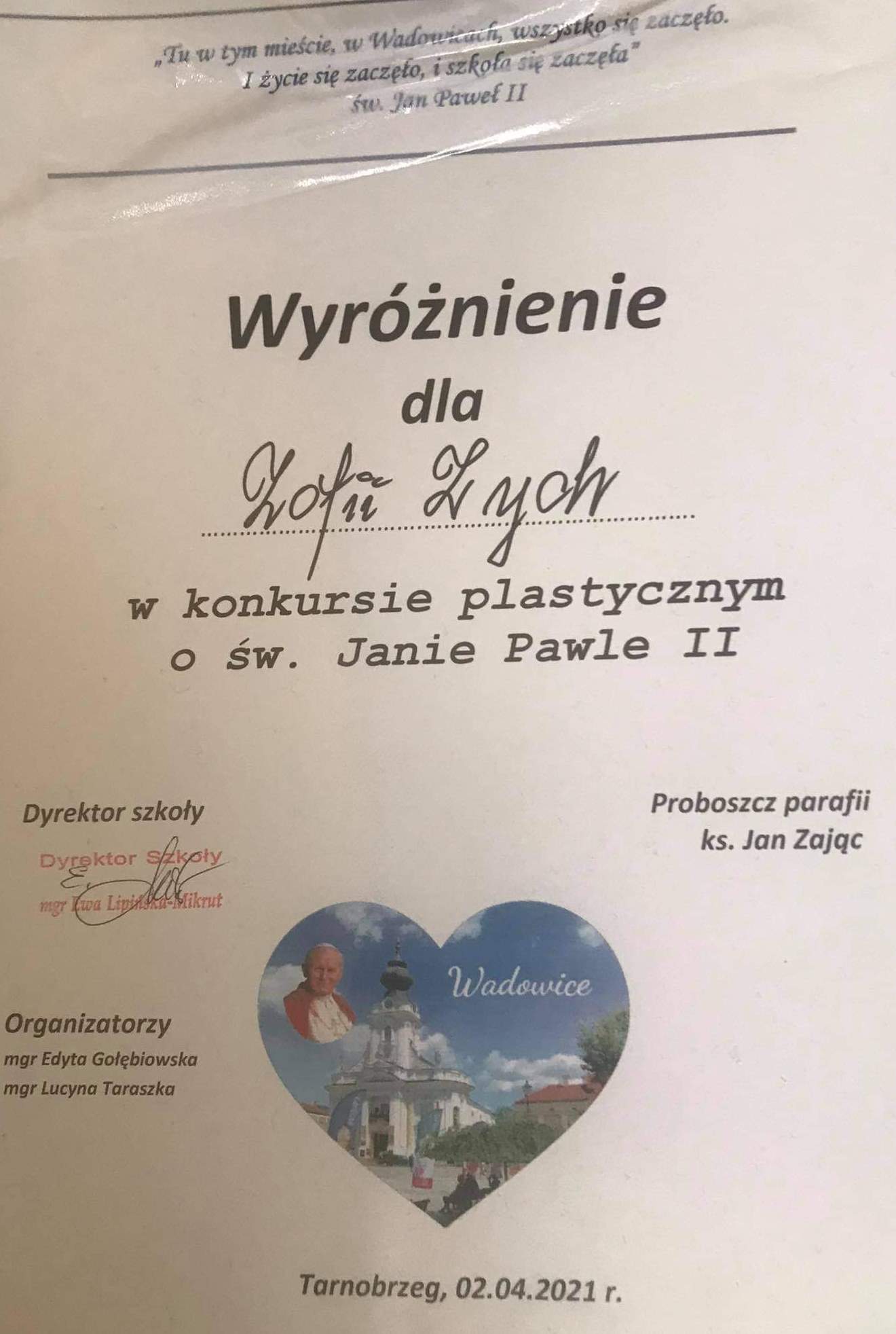Uczniowie KATOLIKA laureatami konkursu o św. Janie Pawle II