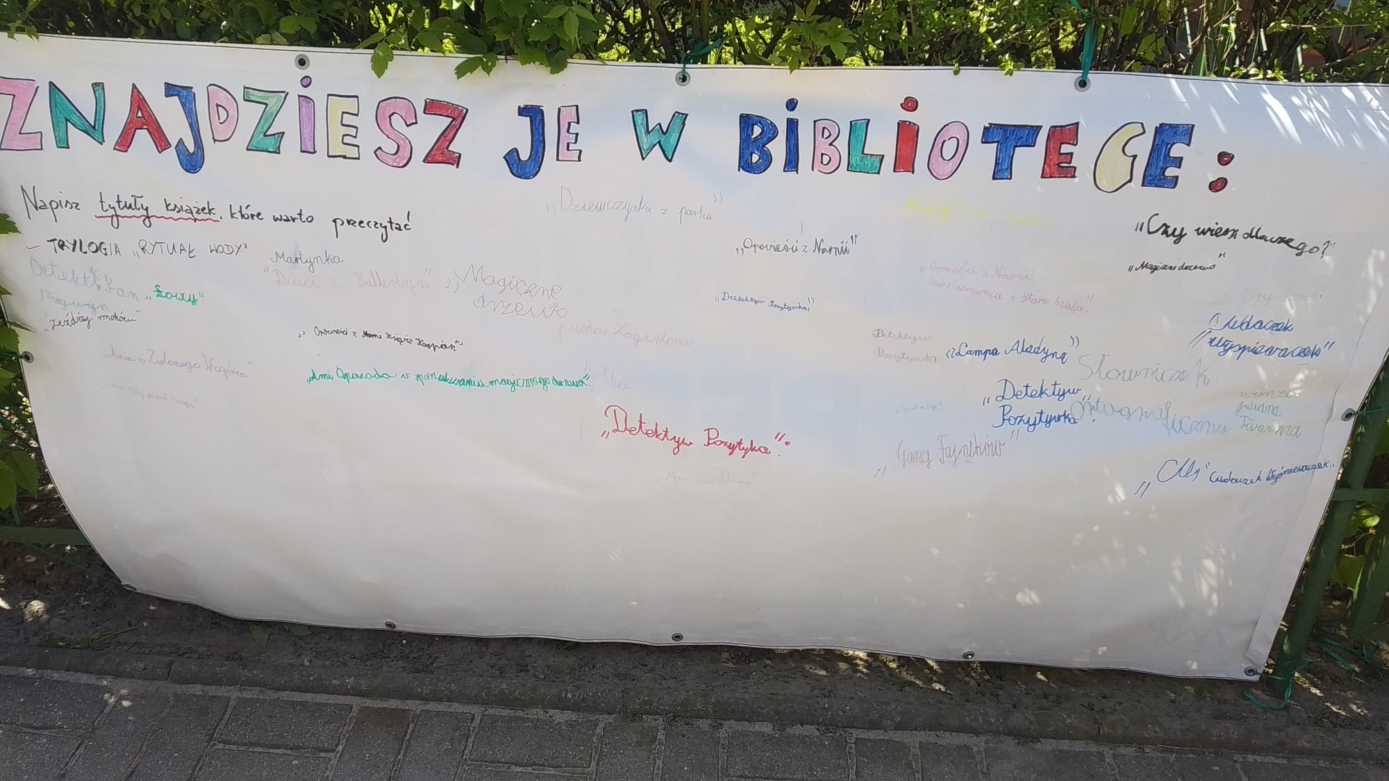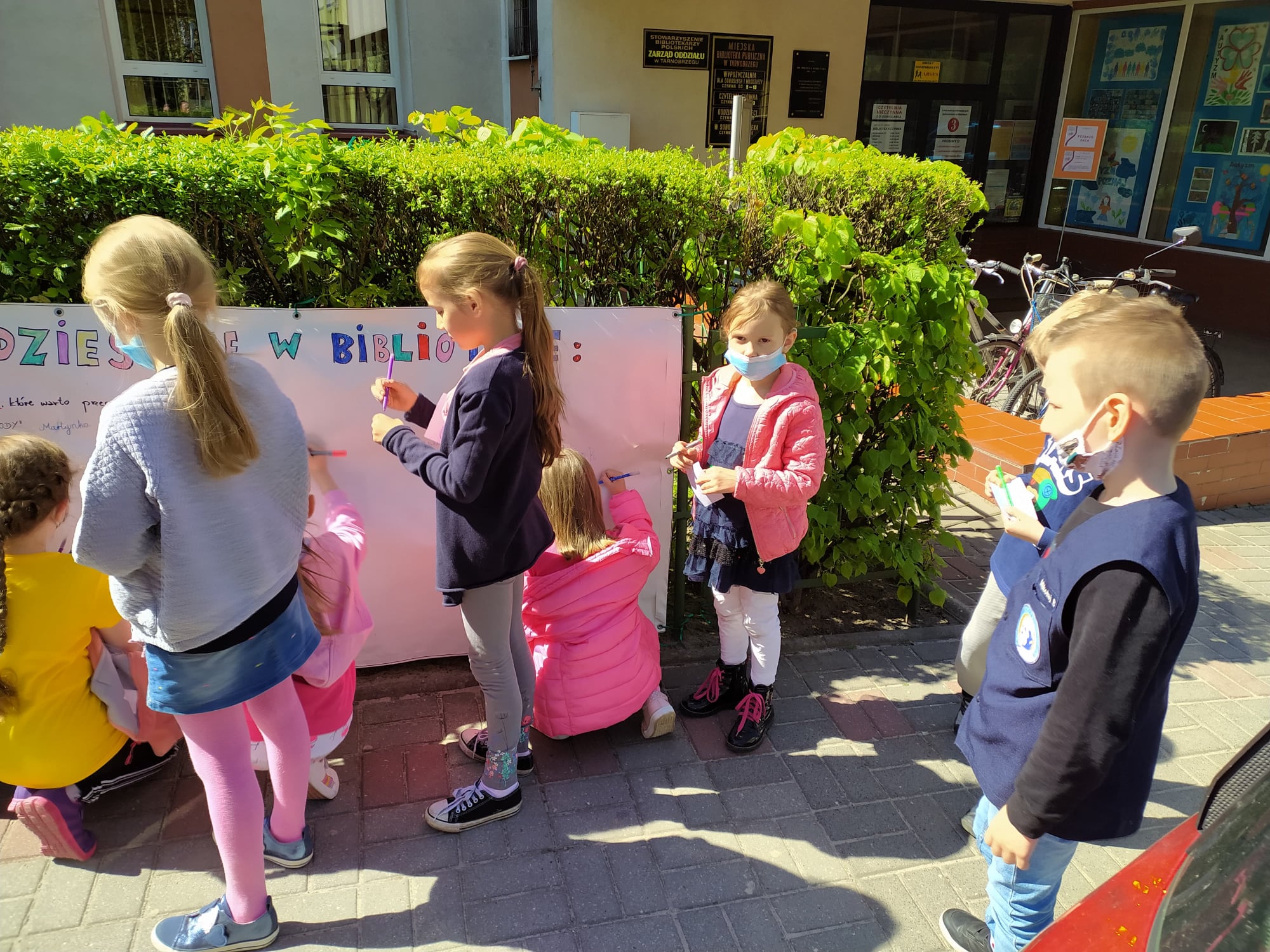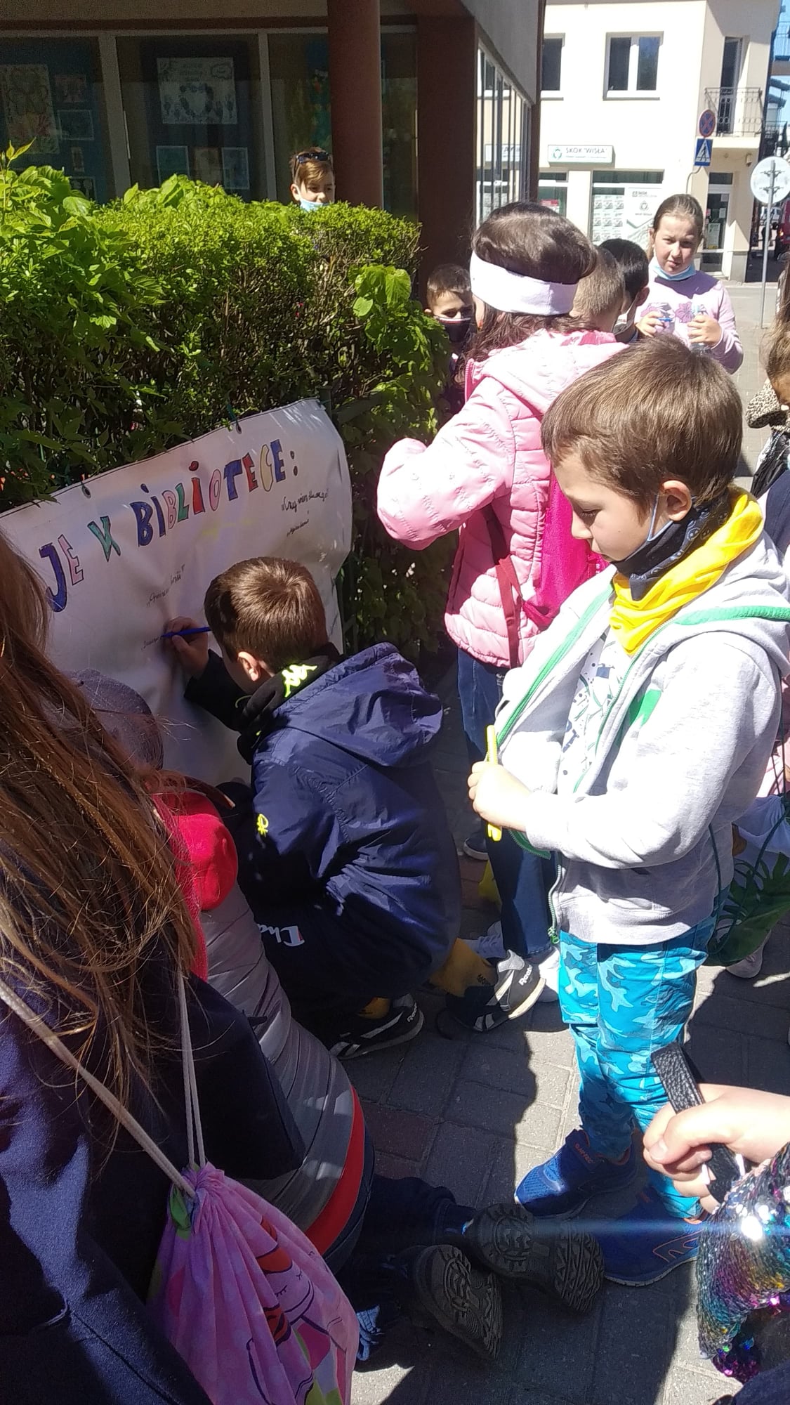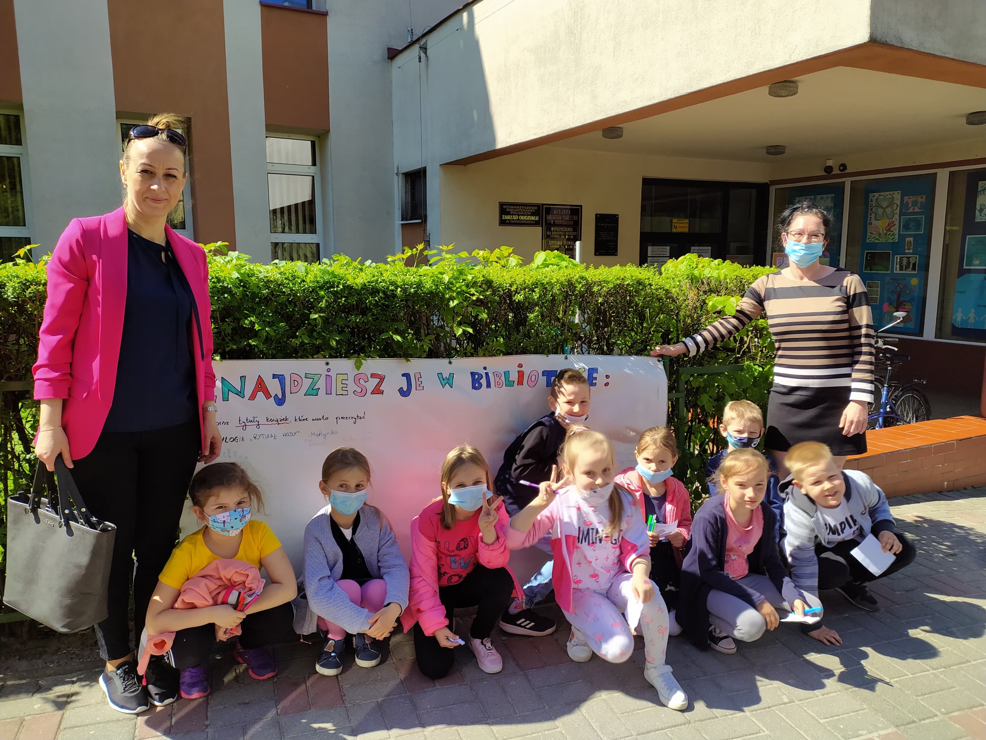 Miejska Biblioteka Publiczna im. dr. Michała Marczaka już po raz osiemnasty włączyła się do ogólnopolskiego programu Tygodnia Bibliotek. Tegoroczne hasło „Znajdziesz mnie w bibliotece” zachęca do odwiedzania bibliotek i poszukiwania interesujących nas książek oraz udziału w organizowanych imprezach czytelniczych. Pozwala ono również popatrzeć na bibliotekę jako na miejsce, które nic nie wymusza, a jedynie zaprasza, pozostawiając pełną dowolność w skorzystaniu z tego zaproszenia. Dlatego też uczniowie klas I-III wybrali się pod budynek biblioteki, aby na specjalnie przygotowanym banerze wypisać tytuły swoich ulubionych książek, które z chęcią poleciłyby innym.