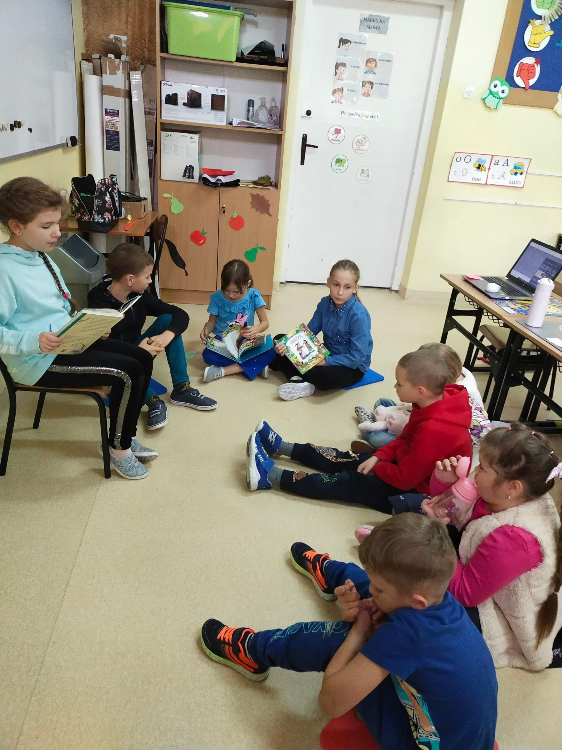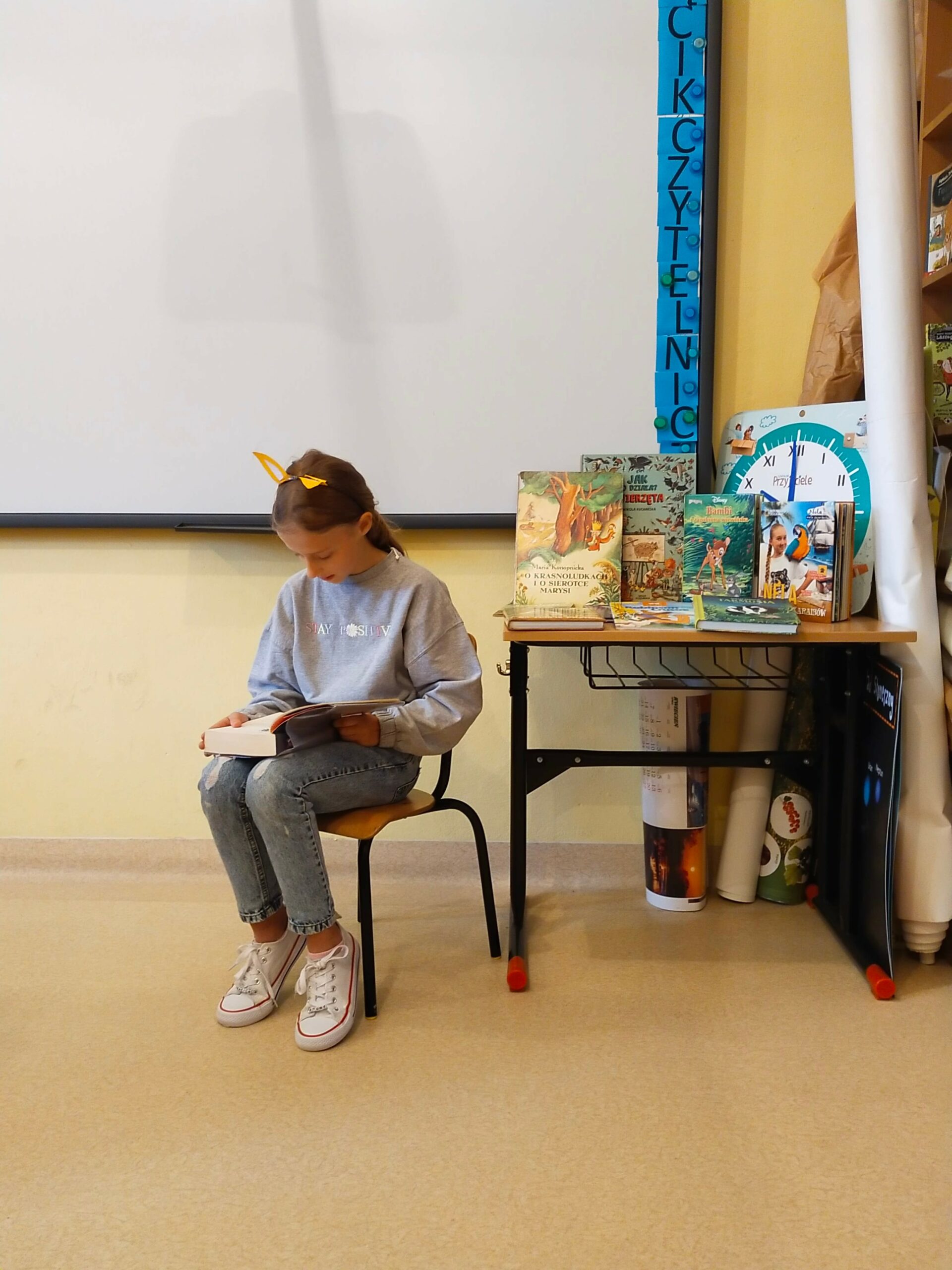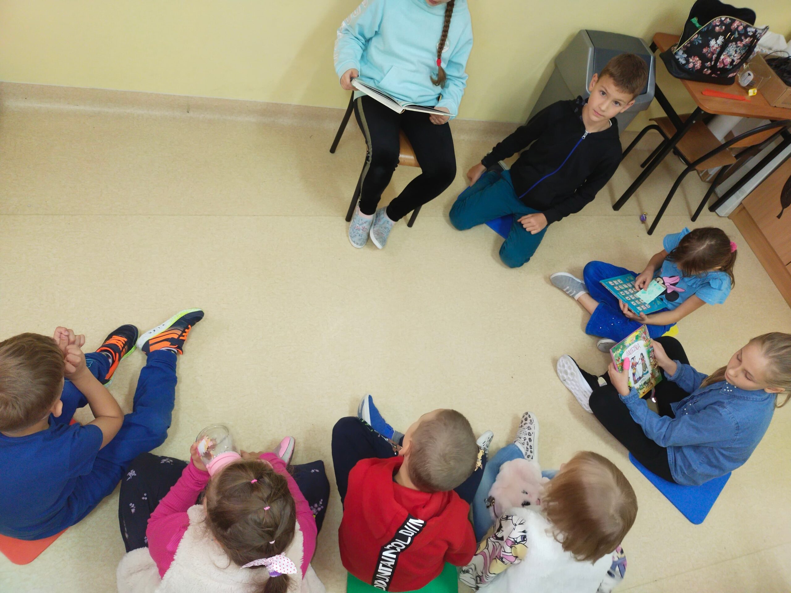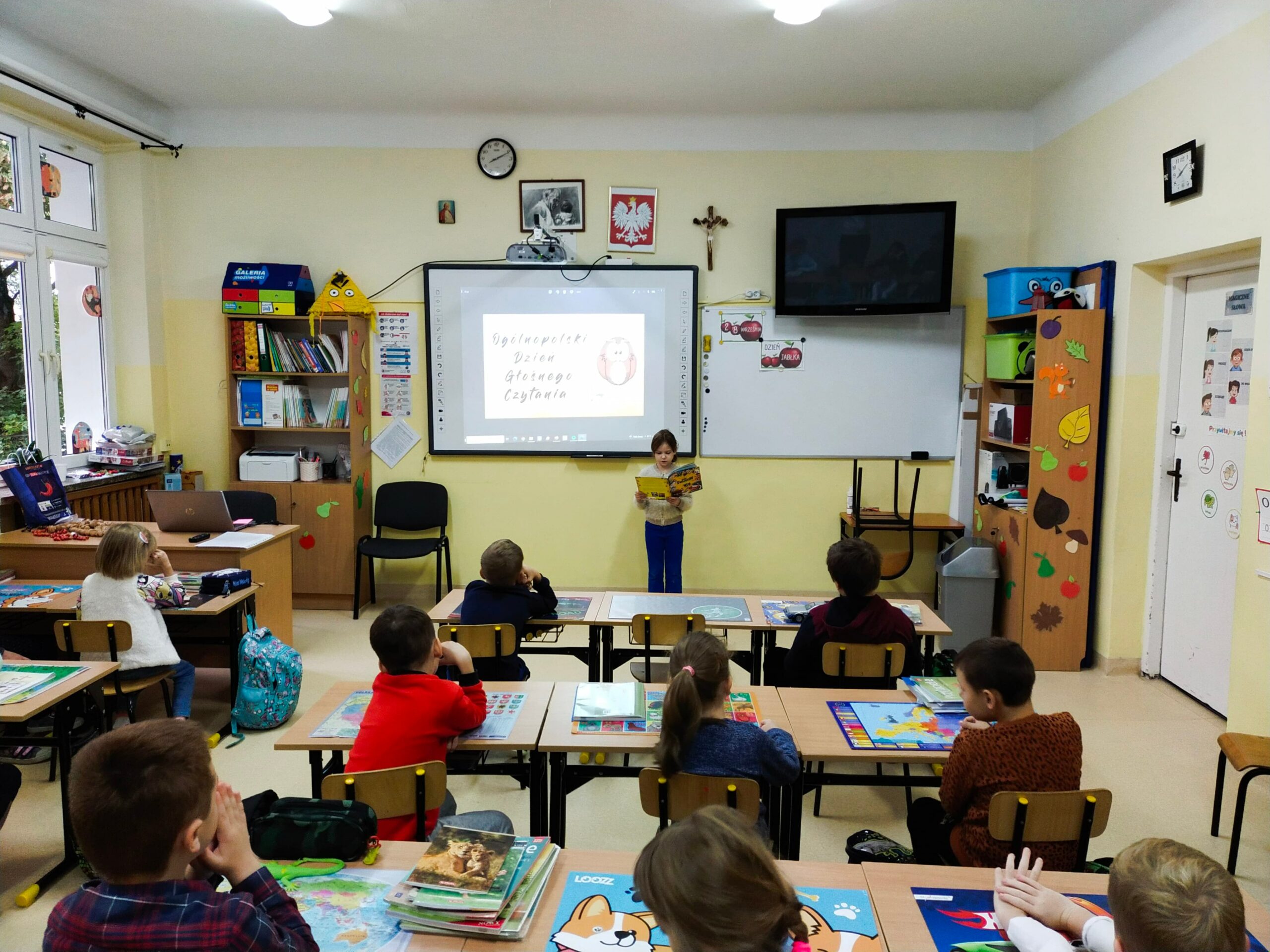 i wyobraźnia”. Celem obu tych wydarzeń jest propagowanie czytelnictwa, dlatego też uczniowie klas 2, 3 i 4, pod kierunkiem Pań ze szkolnej biblioteki przygotowali teksty, które odczytali swoim kolegom. Uczniowie z klas 1-3 wysłuchali wierszy Juliana Tuwima oraz fragmentów z „Małej księżniczki” autorstwa F.H. Burnett i „Mikołajka”, którego autorem jest R. Goscinny.