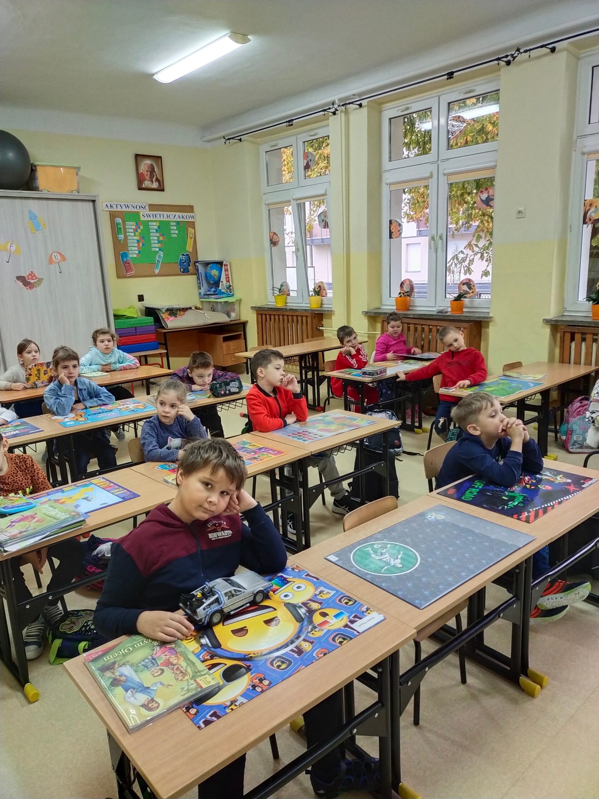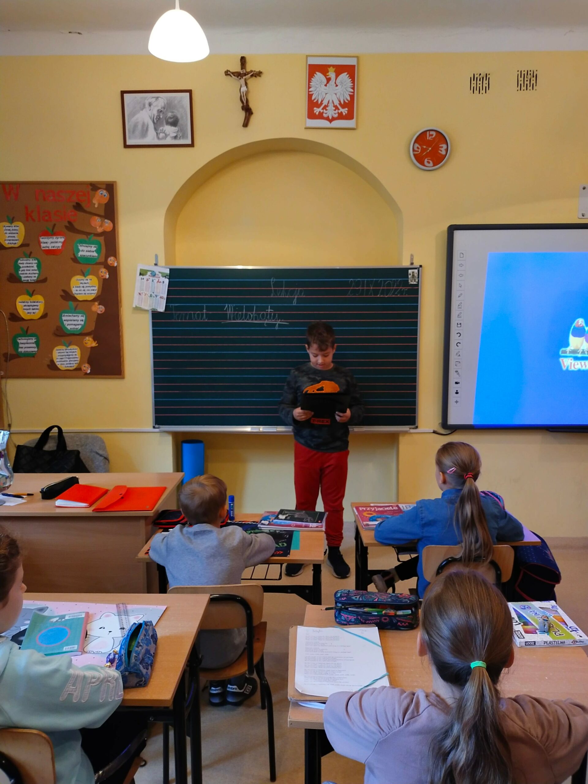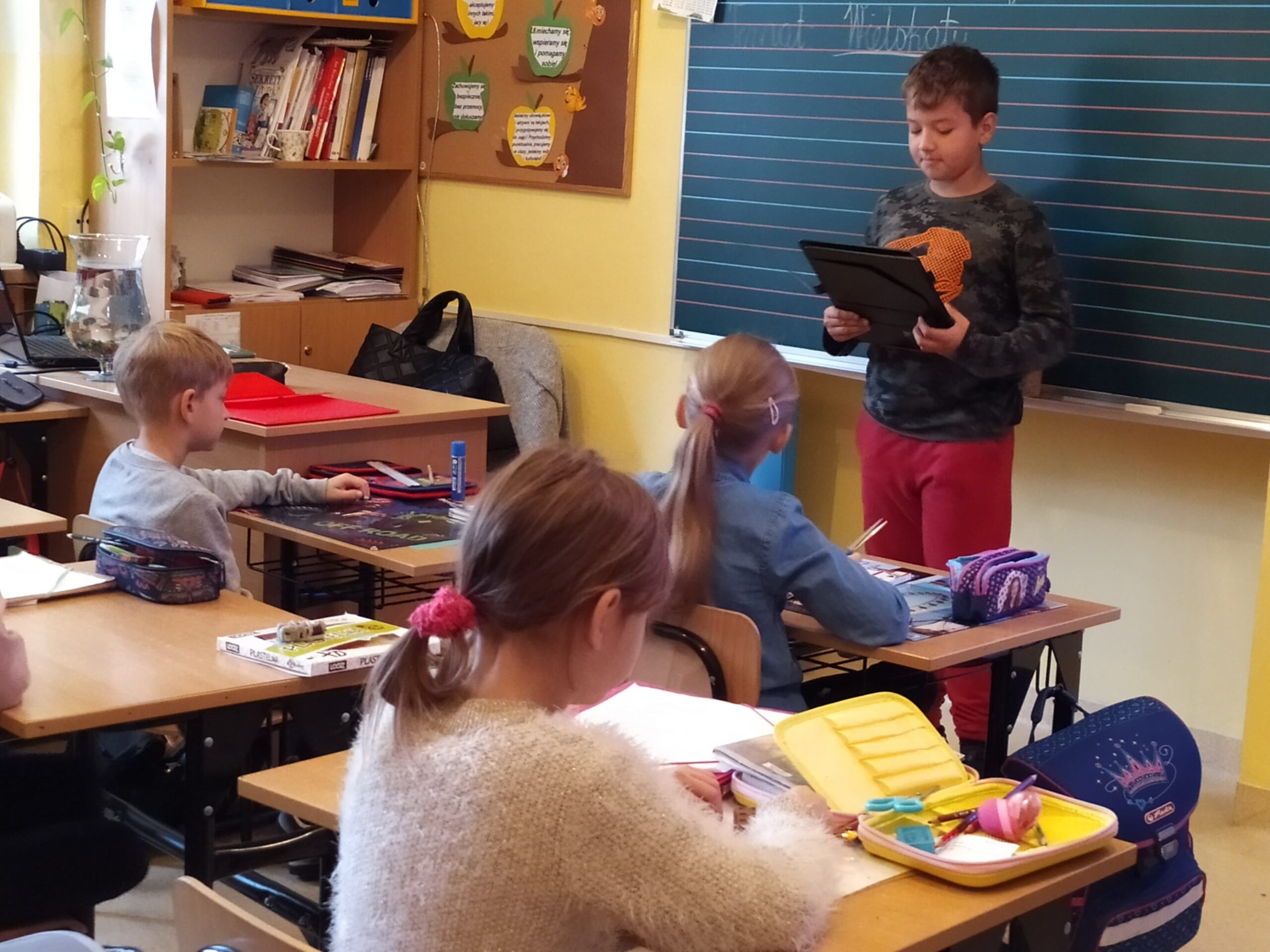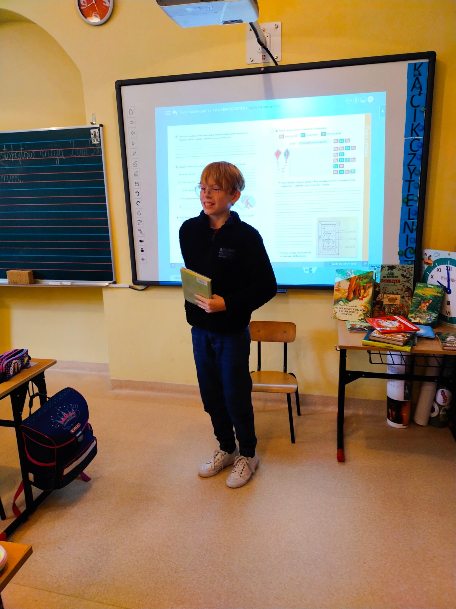 i wyobraźnia”. Celem obu tych wydarzeń jest propagowanie czytelnictwa, dlatego też uczniowie klas 2, 3 i 4, pod kierunkiem Pań ze szkolnej biblioteki przygotowali teksty, które odczytali swoim kolegom. Uczniowie z klas 1-3 wysłuchali wierszy Juliana Tuwima oraz fragmentów z „Małej księżniczki” autorstwa F.H. Burnett i „Mikołajka”, którego autorem jest R. Goscinny.